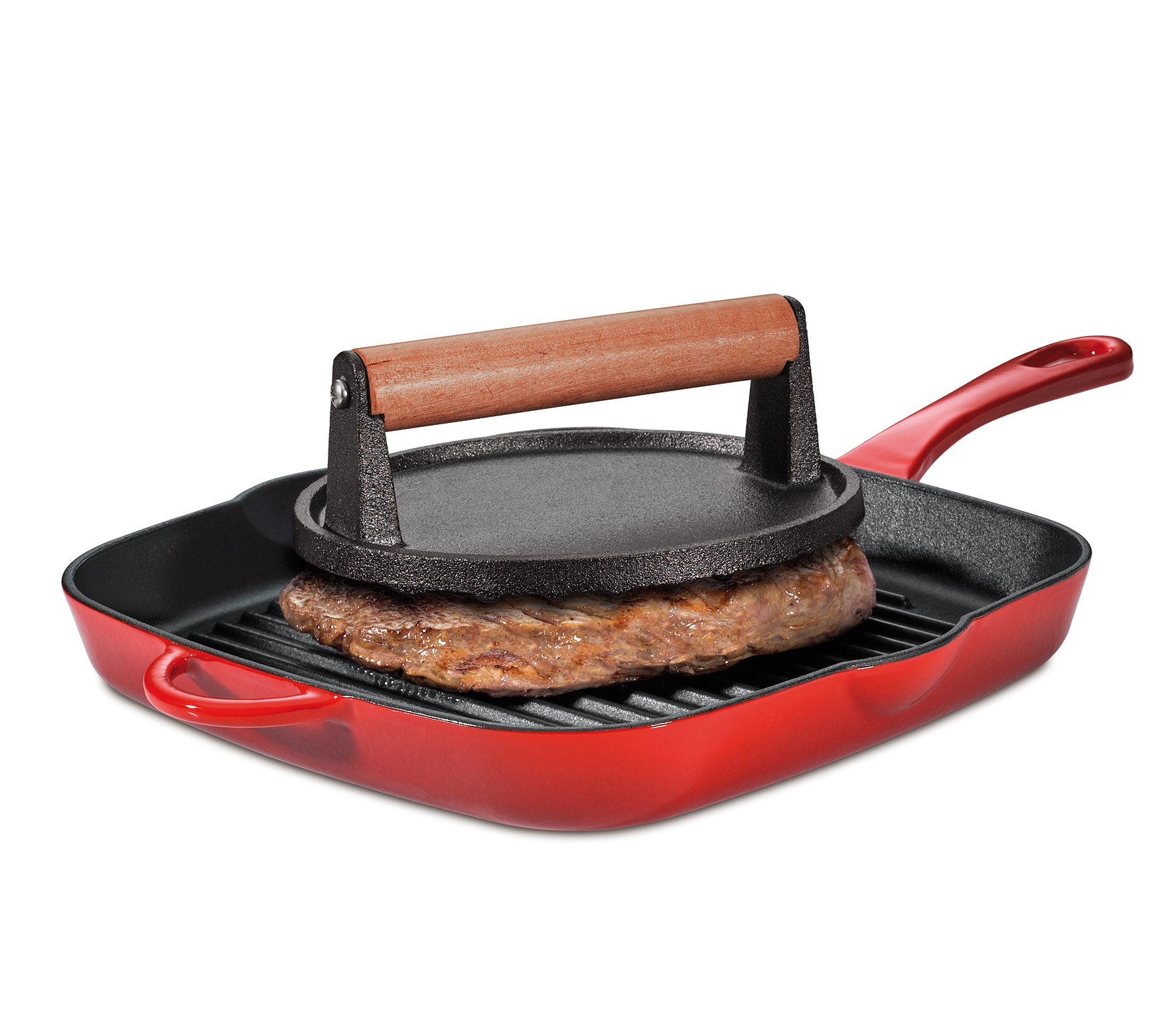 Seine leichteste Übung: Gleichmäßig und schnell gegarte Fleischstücke. Der Fleischbeschwerer von KÜCHENPROFI liefert perfekte Ergebnisse vom Grill oder aus der Pfanne. Nichts wölbt sich mehr, vorbei sind die Zeiten, in denen das Steak in der Mitte noch zu blutig und am Rand schon trocken war. Die Accessoires aus robustem Edelstahl oder Gusseisen liegen gut in der Hand und haben ein ordentliches Gewicht. Mit dem Modell, das 1 kg wiegt, bringen Sie selbst das XXL-Filet ganz geschmeidig in Form.