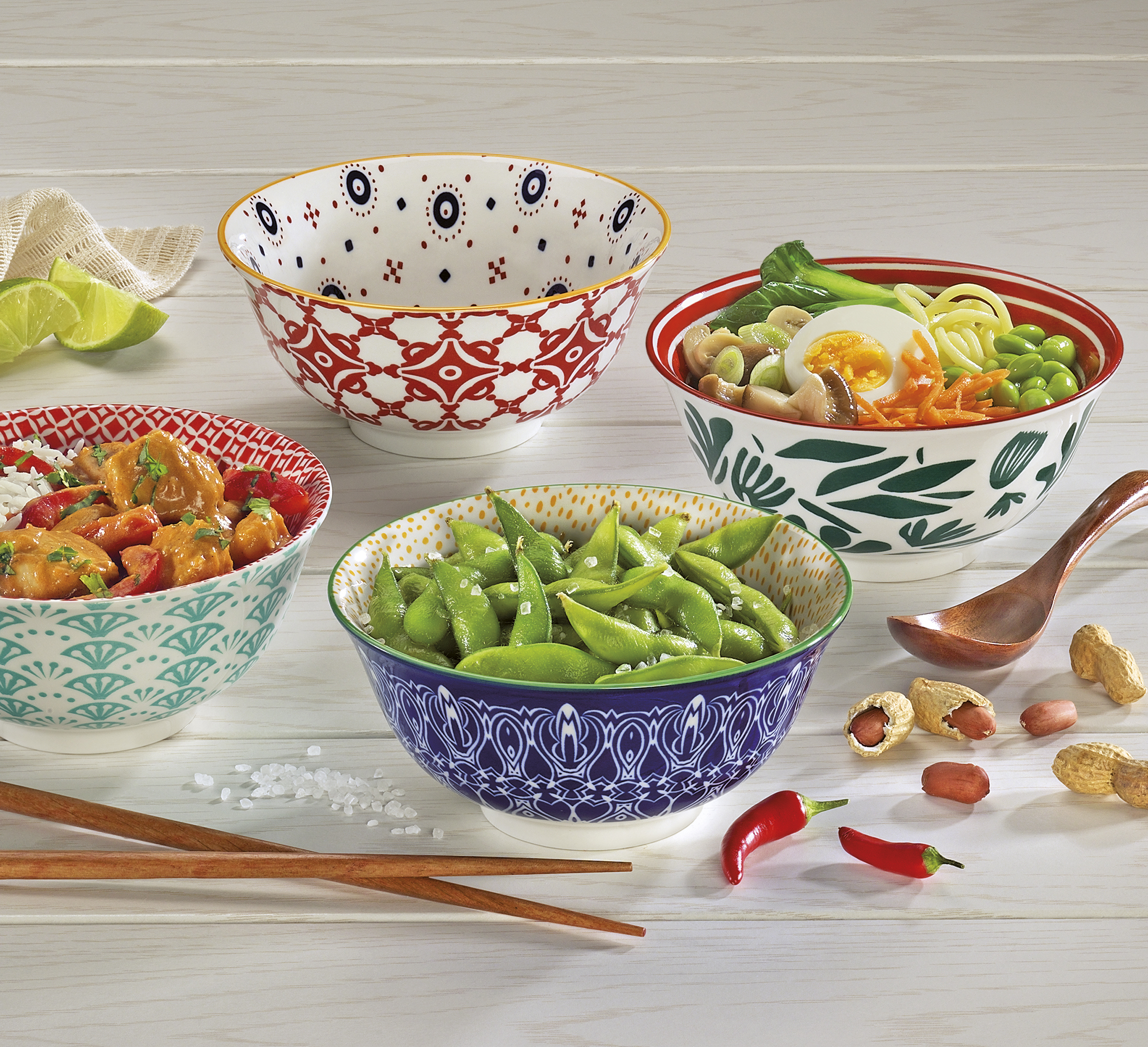Für Freunde frischer Dekore. Die Bowls AMICI von cilio verbreiten rund um die Uhr gute Laune. Mit Obst oder Cerealien gefüllt starten Sie mit den bunten Schalen perfekt in den Tag. Am Schreibtisch halten sie Nüsse für die schnelle Energie zwischendurch bereit. Beim italienischen Abend mit Freunden besinnen sie sich auf ihre Wurzeln und servieren mediterrane Köstlichkeiten von Aubergine bis Zucchini. Oder Sie füllen die fröhlichen Schalen mit Salat, Ramen, Pasta oder Knabbereien für den Fernsehabend. Wie auch immer der Anlass ist, von nun an haben Sie für jede Gelegenheit die richtigen Schalen im Schrank. Das bei circa 1.300 °C gebrannte Porzellan ist dank des glasierten Bodens leicht zur reinigen und geeignet für Spülmaschine und Mikrowelle. Und falls Sie mal ein Mitbringsel suchen - die Bowls eignen sich auch hervorragend als Geschenk zur Einweihung, zum Umzug, zum Geburtstag oder einfach so.