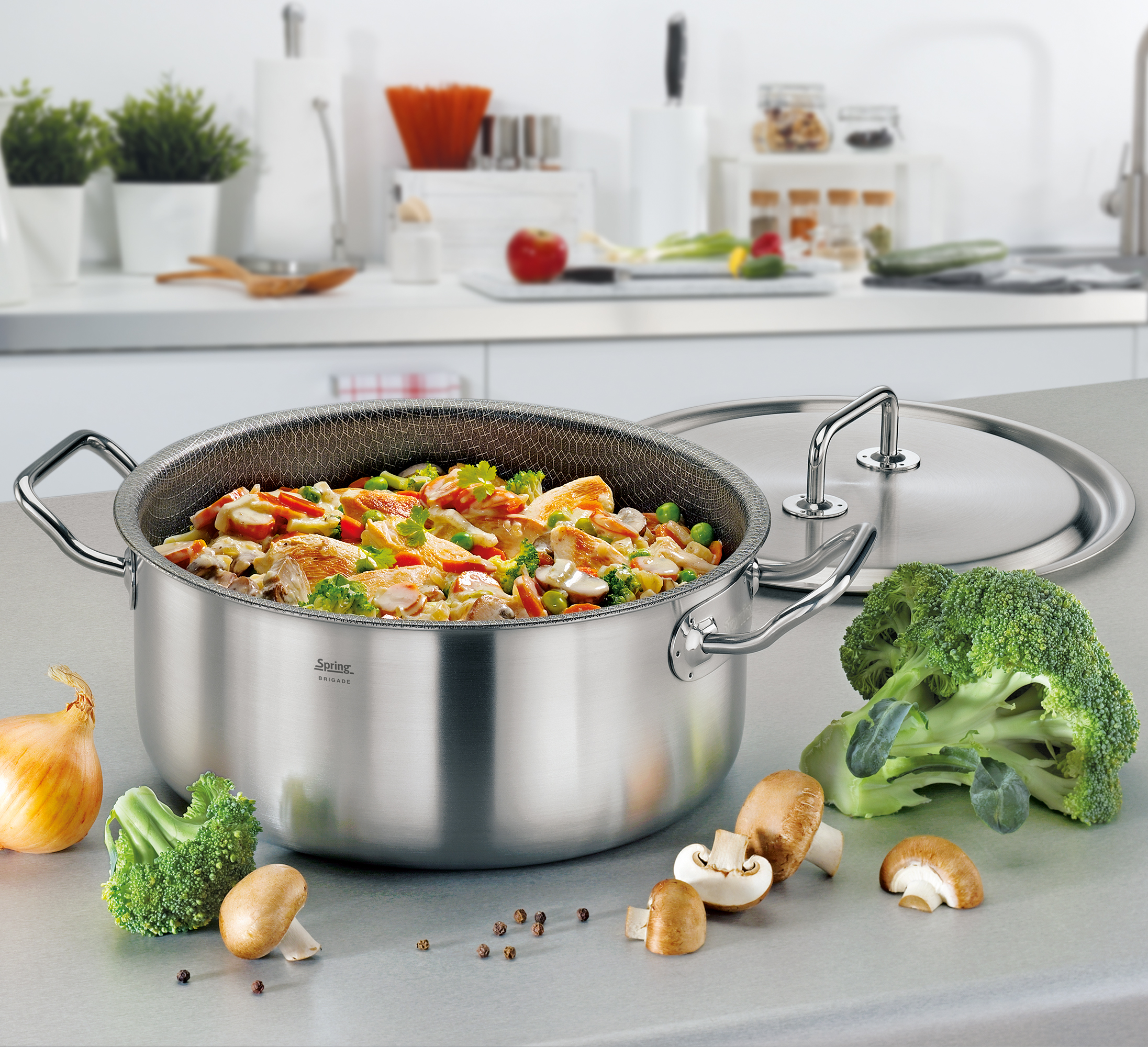 Innovative Ideen für Koch- und Tischkultur ziehen sich seitdem wie ein roter Faden durch die erfolgreiche Unternehmensgeschichte. Mit der Erfindung ihres Fondue Bourguignonne legen die Schweizer Brüder 1953 den Grundstein für den Siegeszug des „Kochen am Tisch“. 1977 bringt SPRING die ersten Gastronorm Chafing Dishes zum professionellen Kochen und Präsentieren auf den Markt. Und bereits seit 1994 verfügen unsere Kochgeschirrserien über induktionsfähiges Mehrschichtmaterial.