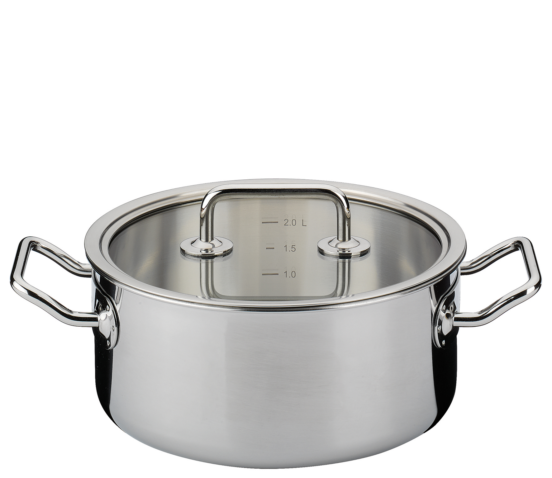 Eine perfekte Mahlzeit beginnt mit dem richtigen Equipment. Mit der cleveren Kombination von Funktion und Design bei der Serie BRIGADE BASIC von SPRING sind Profis und ambitionierte Hobbyköche gut aufgestellt. Das Mehrschichtmaterial leitet die Wärme extrem schnell und gleichmäßig bis zum Topfrand weiter. Sie sparen Zeit, Energie und Nerven – da Sie sich auf ein überzeugendes Ergebnis verlassen können. Der Glasdeckel mit dem stabilen Griff sitzt passgenau und ermöglicht energiesparendes Sichtgaren. Der geschlossene Topfrand und die stabilen, ergonomischen Griffe tragen zur Langlebigkeit der Topf-Serie bei. Auch innen ist BRIGADE BASIC gut durchdacht. Dank der Innenskala können Sie den Messbecher in der Schublade lassen. Die gesamte Kochbrigade ist für alle Herdarten inklusive Induktion geeignet und spülmaschinenfest.