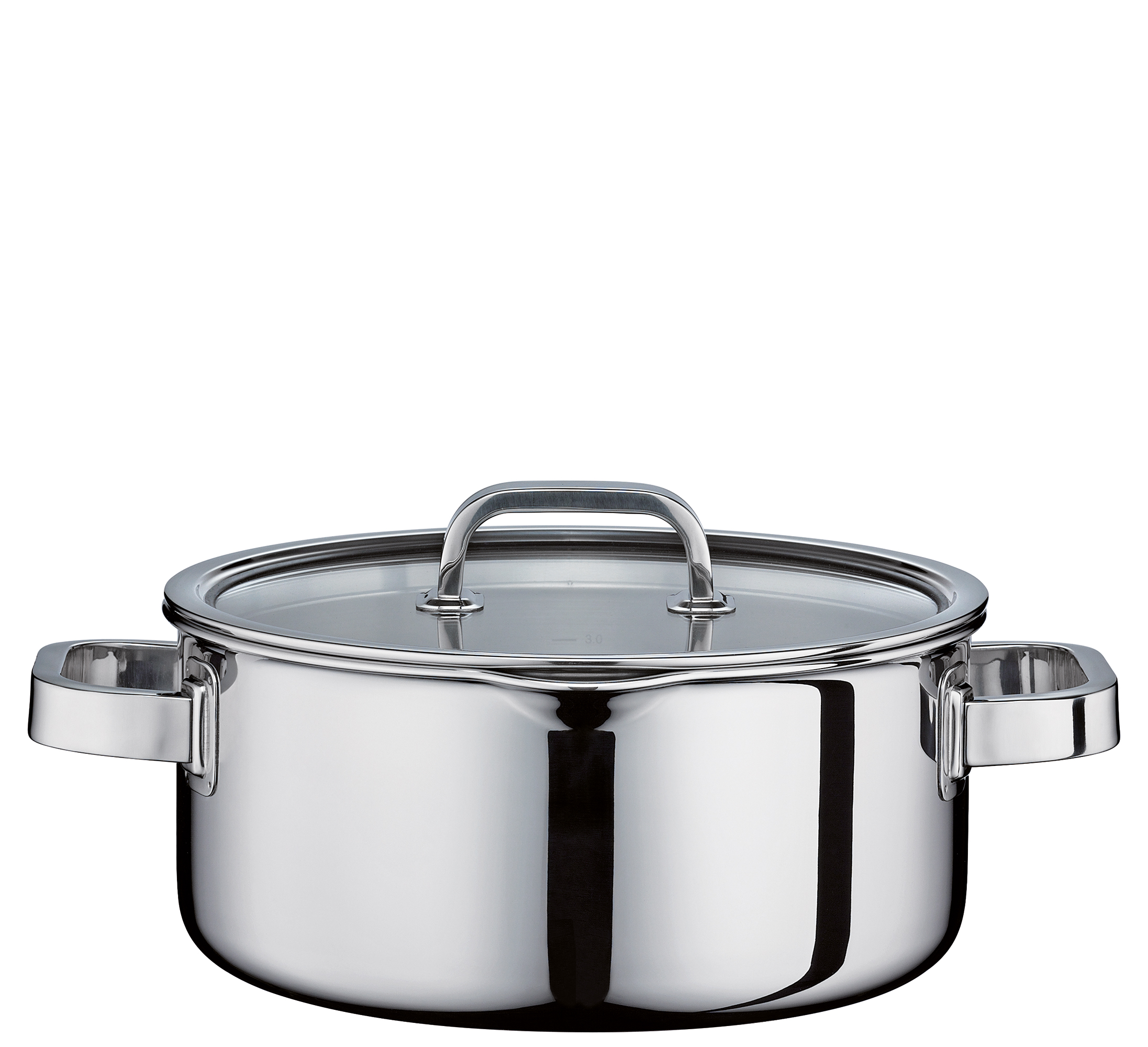 Eine feine Idee! SPRING serviert Ihnen mit der Topf-Serie FINESSE2+ die perfekte Mischung aus zeitlosem Design und hoher Funktionalität. Die vielseitigen Töpfe bewähren sich Tag für Tag, sowohl zu Hause als auch in der Sterneküche. Ihre köstlichen Kreationen garen gleichmäßig, zugleich sparen Sie Zeit und Energie. Das 5-Lagen Mehrschichtmaterial leitet die Wärme optimal vom Boden bis in die Topfwand. Der robuste Glasdeckel schließt dank Silikondichtung besonders dicht und ermöglicht ein schonendes Garen auf Sicht mit wenig Wasser, und die Topf-Innenskala macht den Messbecher überflüssig. Die ergonomisch geformten, wärmeisolierenden Griffe liegen gut in der Hand, und eine speziell geformte Schüttmulde sorgt dafür, dass beim Ausgießen nichts danebengeht. Die Töpfe sind für alle Herdarten inklusive Induktion geeignet und spülmaschinenfest. Das Anbraten und sanfte Schmoren größerer Fleischstücke ist die Spezialität des Bratentopfs. Genügend Platz für die Sauce hat er natürlich auch.