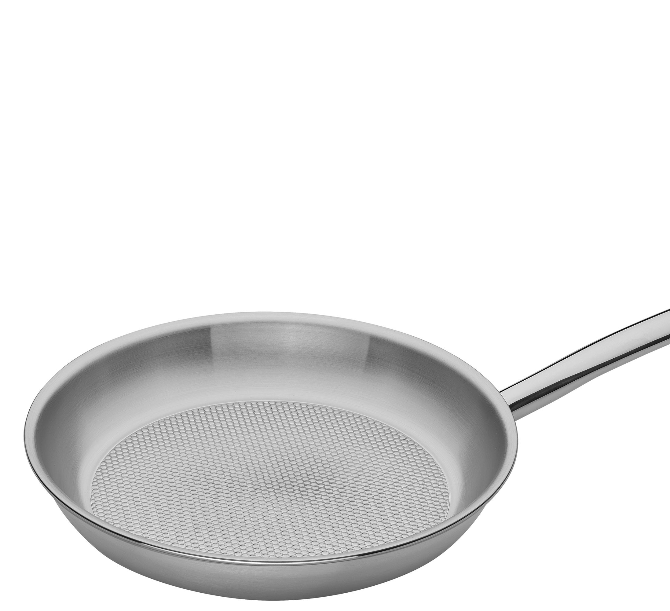 Verleiht Ihrer bewussten Ernährung Profil. Die Bratpfanne BRIGADE PROFILE von SPRING hat wabenförmige Erhöhungen. Diese vermindern den Kontakt des Garguts mit der Oberfläche der Bratpfanne und das Risiko des Anhaftens. Darüber hinaus benötigen Sie zum Braten nur wenig Fett. Auch das 5-Lagen-Mehrschichtmaterial mit einer Außenschicht aus induktionstauglichem Edelstahl trägt zum perfekten Ergebnis bei. Es leitet die Wärme optimal und gleichmäßig. Der geschlossene Pfannenrand schützt den Aluminiumkern, der Schüttrand ermöglicht ein punktgenaues Ausgießen und bewahrt Tischdecken und Oberflächen vor Flecken.