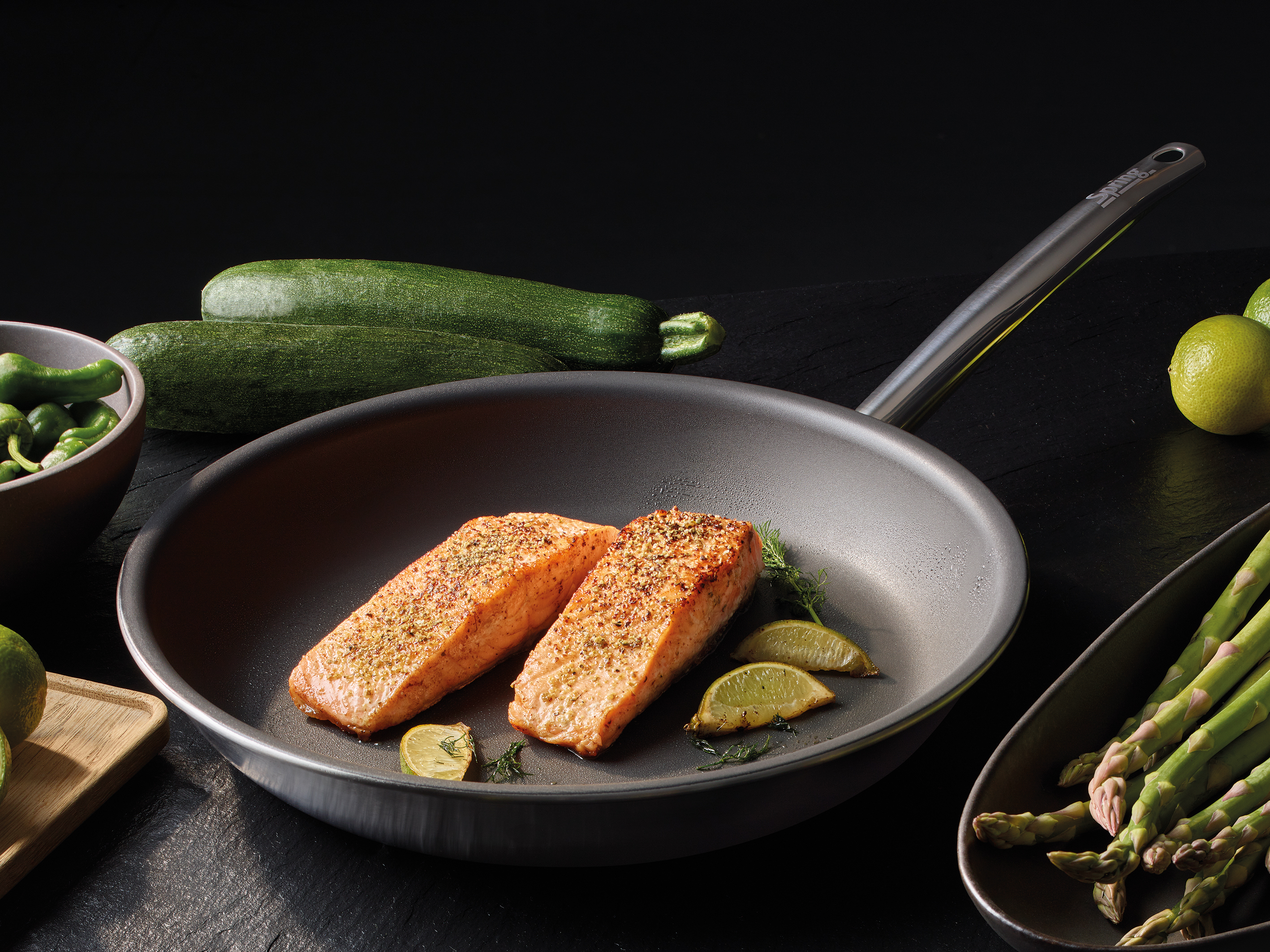 Innovative Ideen für Koch- und Tischkultur ziehen sich seitdem wie ein roter Faden durch die erfolgreiche Unternehmensgeschichte. Mit der Erfindung ihres Fondue Bourguignonne legen die Schweizer Brüder 1953 den Grundstein für den Siegeszug des „Kochen am Tisch“. 1977 bringt SPRING die ersten Gastronorm Chafing Dishes zum professionellen Kochen und Präsentieren auf den Markt. Und bereits seit 1994 verfügen unsere Kochgeschirrserien über induktionsfähiges Mehrschichtmaterial.
