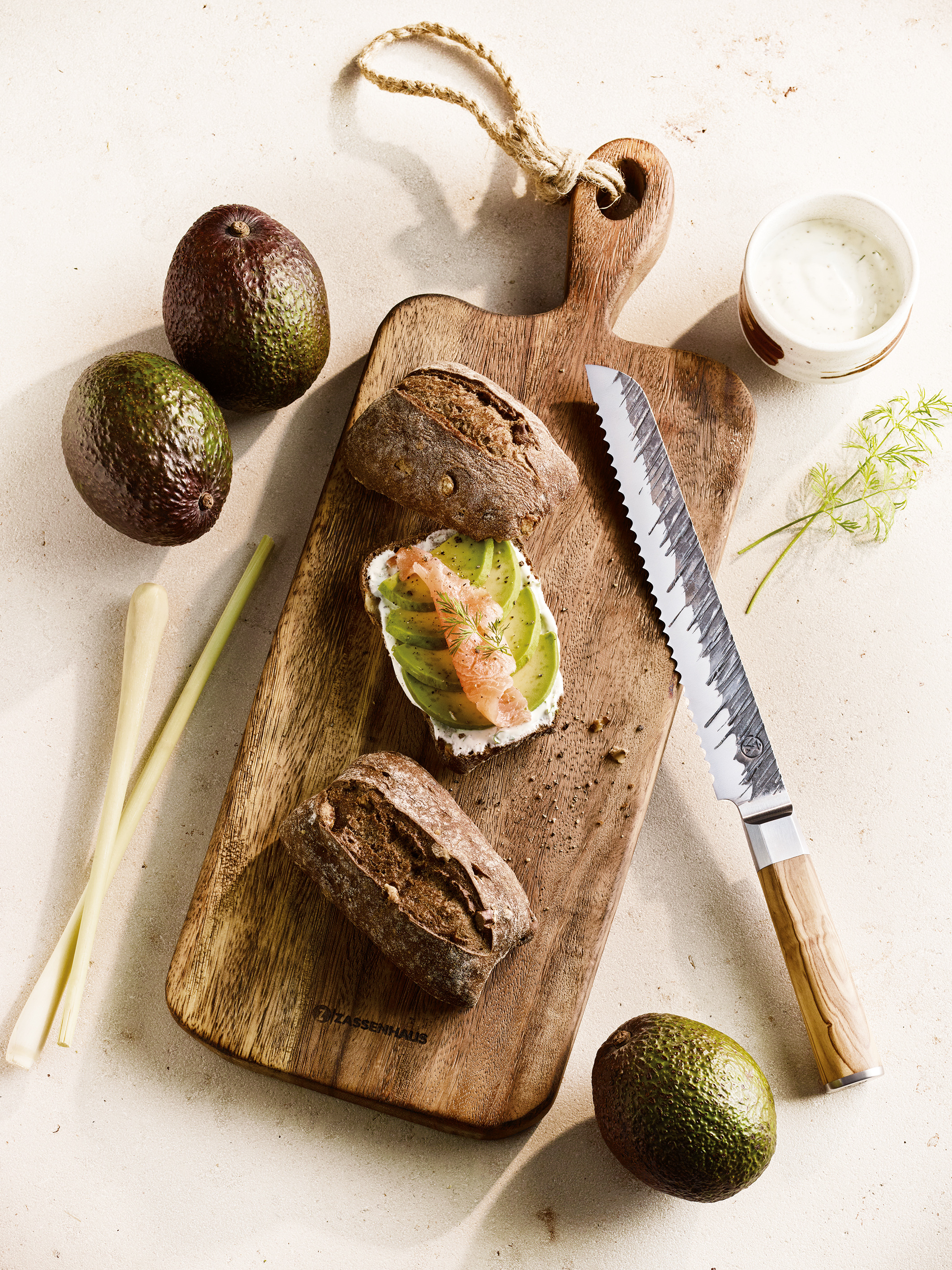 Brotkrusten auf, zerteilt aber auch Kürbis und Melone präzise.