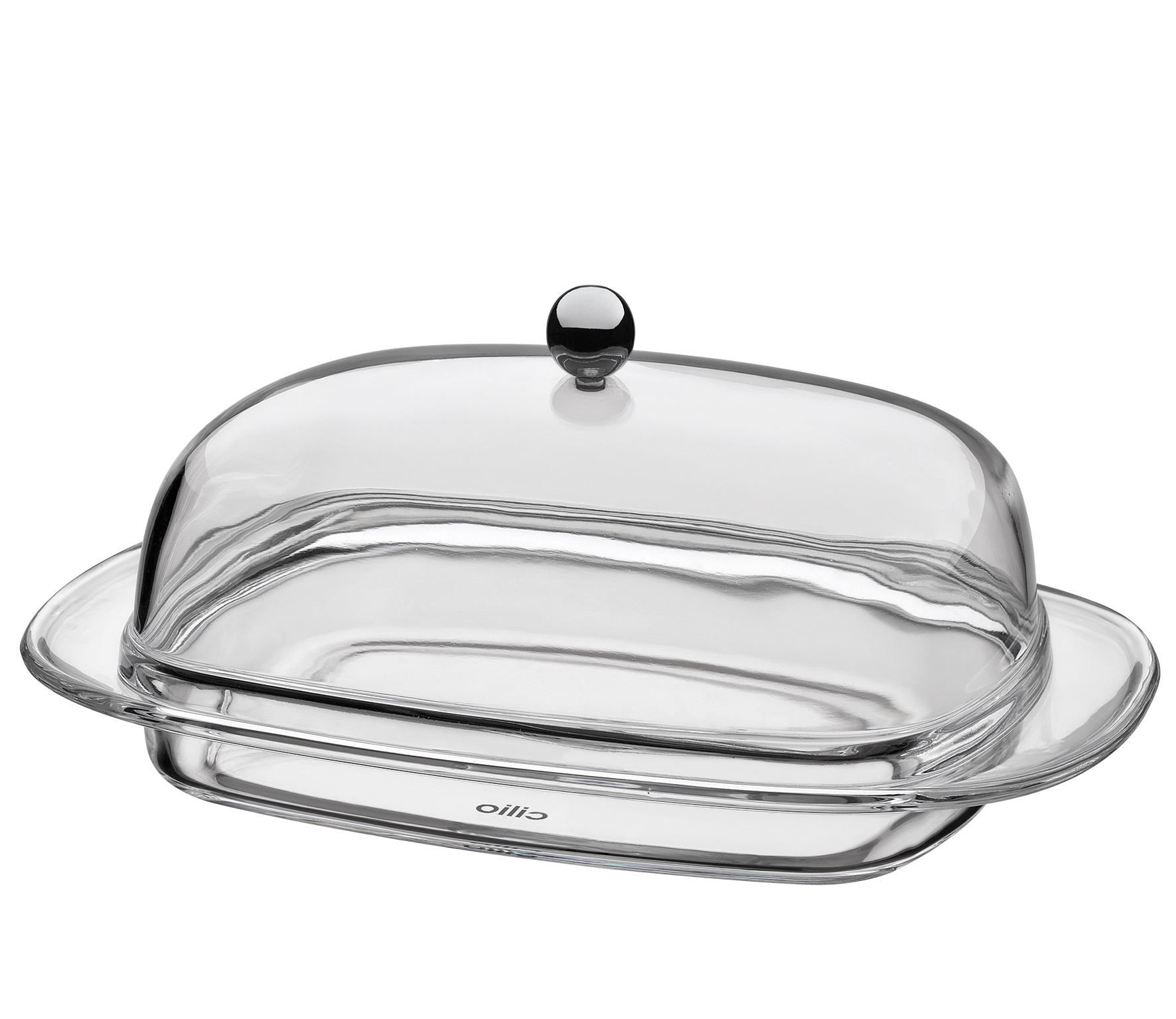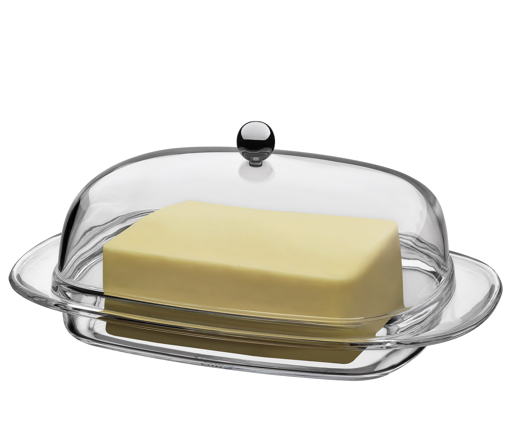 Wenn eine ansprechende Optik und eine gute Funktionalität sich perfekt ergänzen, ist alles in Butter. Wie bei der Butterdose von cilio, dem Solinger Spezialisten für hochwertige Tisch-Accessoires. Das schlichte Design harmoniert mit dem klaren Acryl. Das Material sorgt für den modernen Look, ist hygienisch und leicht zu reinigen – es darf sogar in die Spülmaschine. Die Aussparung im Butterteller fixiert das goldgelbe Stück, die Haube schließt dicht und verhindert, dass die Butter im Kühlschrank fremde Gerüche annimmt. Dank des transparenten Acryls sehen Sie auf einen Blick, wann es Zeit ist, neue Butter zu kaufen. In das Behältnis passen 250 Gramm.