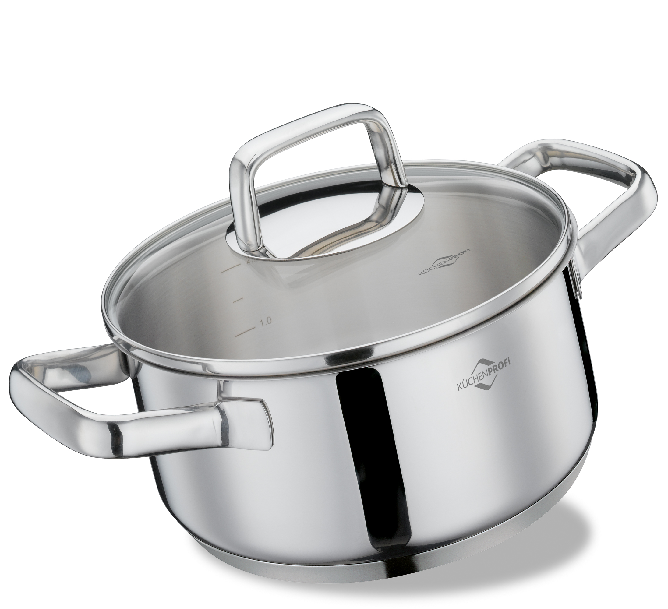 Material: rostfreier Edelstahl/Deckel aus Sicherheitsglas. Extrastarker Mehrschicht-boden. Wärmeisolierende Griffe. Mit praktischer Innenskala. Geeignet für sämtliche Herdarten.