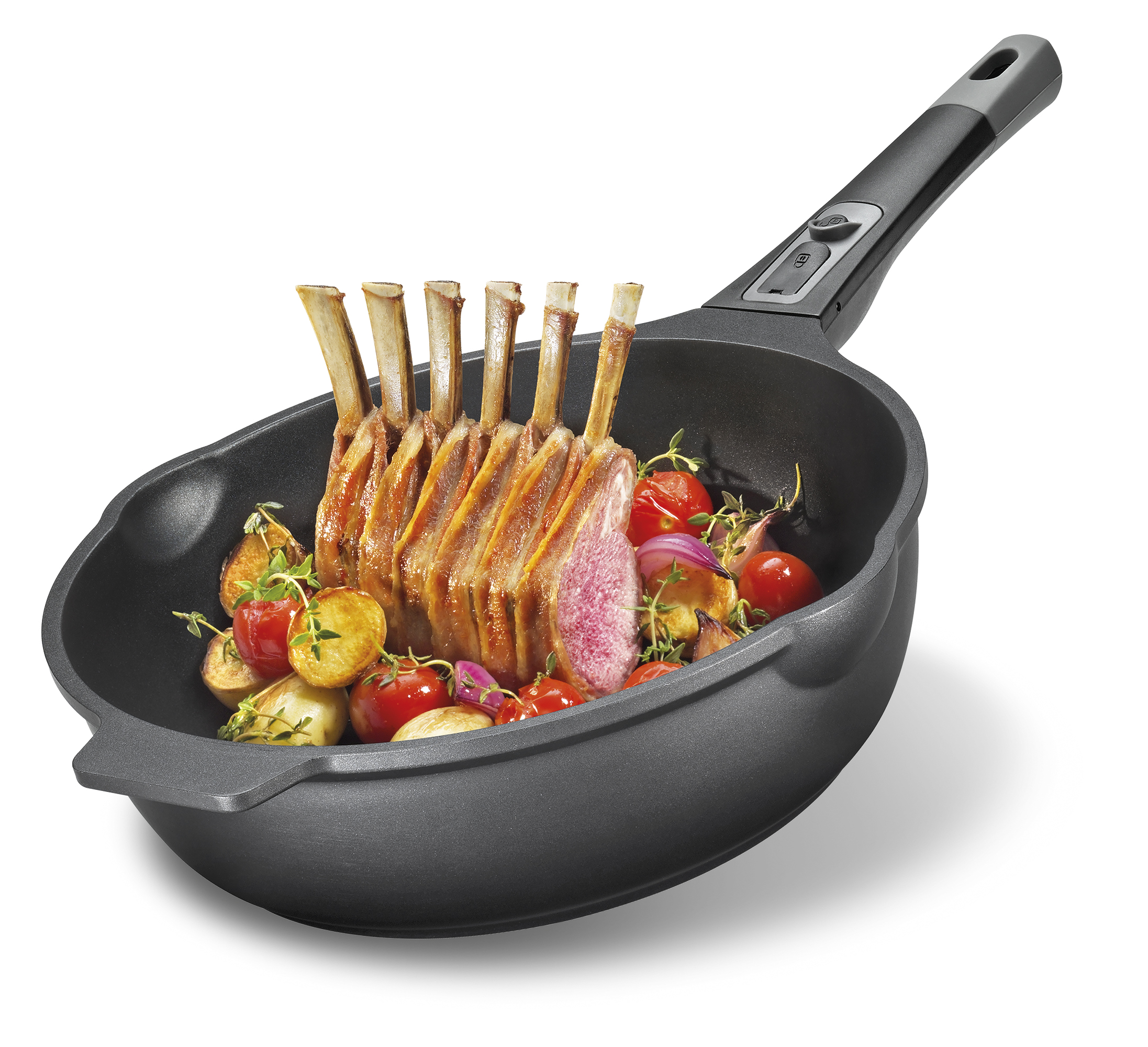 Für alle, die Lust auf viel Sauce oder einen guten Appetit haben. KÜCHENPROFI hat die Bratpfanne MILANO mit einem extra hohen Rand und zwei Ausgießern ausgestattet. Sie ist ideal, wenn Spaghetti Bolognese oder Geschnetzeltes auf den Tisch kommen. Dank des guten Fassungsvermögens wird auch eine größere Runde satt. Und zwar ohne langes Warten. Der vollflächige Boden verteilt die Wärme schnell und gleichmäßig, die Antihaftbeschichtung sorgt ebenfalls für ein perfektes Ergebnis. Den Pfannengriff können Sie auf Knopfdruck abnehmen und Ihre zuvor scharf angebratenen Filets mit Tomate und Mozzarella überbacken. Klingt gut? Schmeckt noch besser!