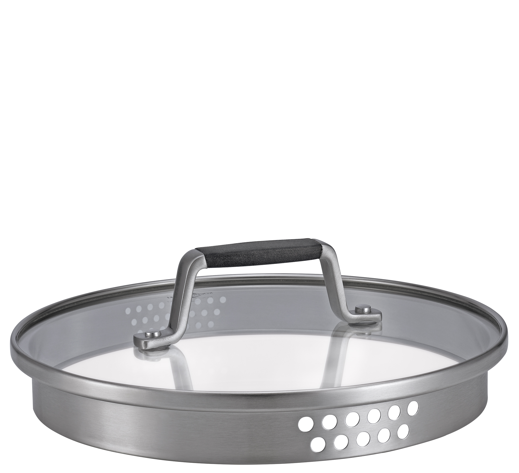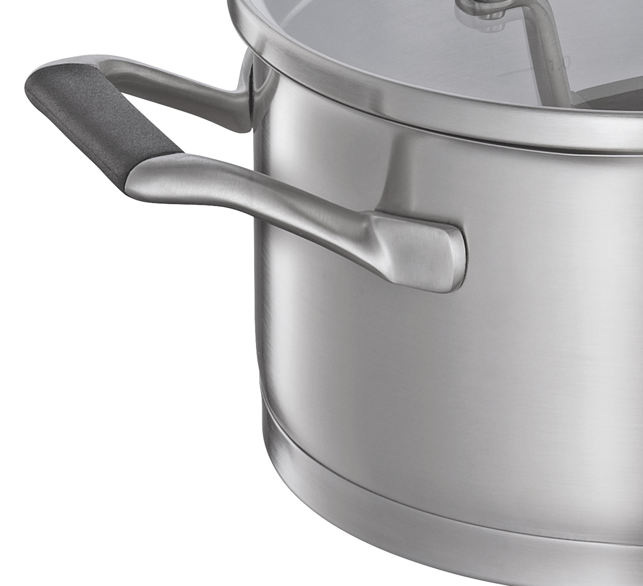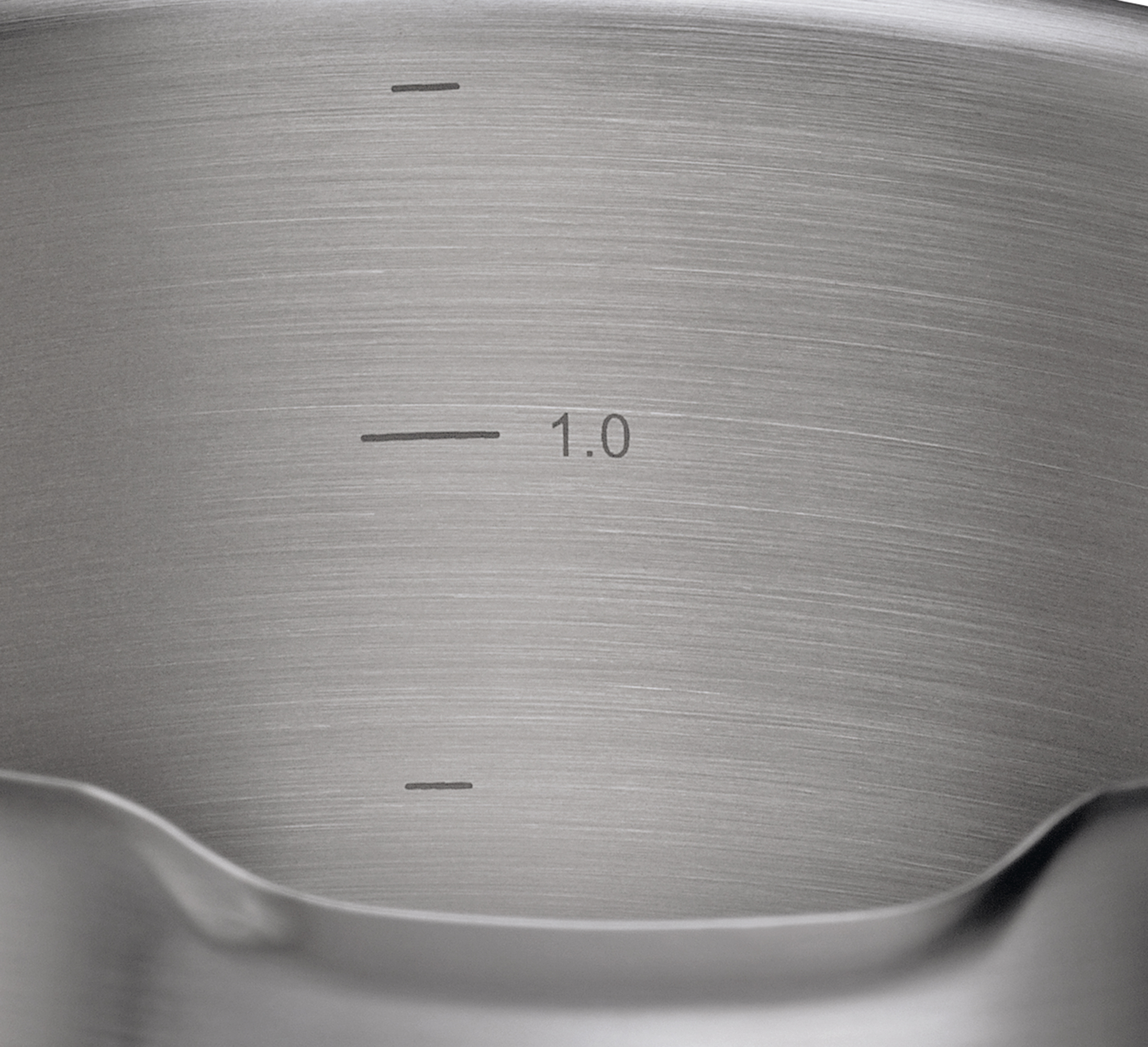 Mehrschichtboden, Deckel aus Sicherheitsglas inklusive feinem und grobem Sieb zum Ausgießen. Mit praktischer Innenskala und Ausgießer. Geeignet für alle Herdarten inklusive Induktion.
