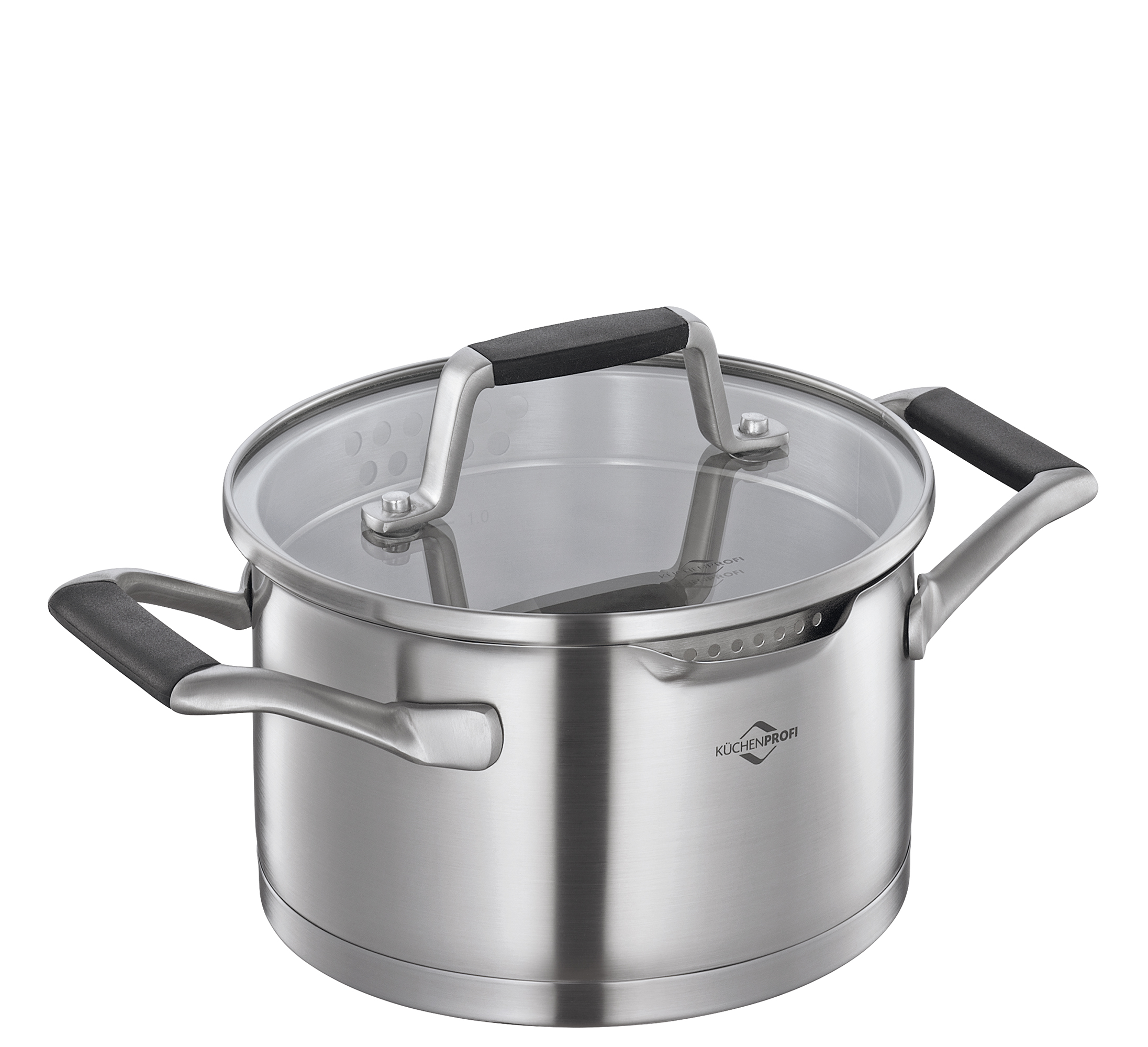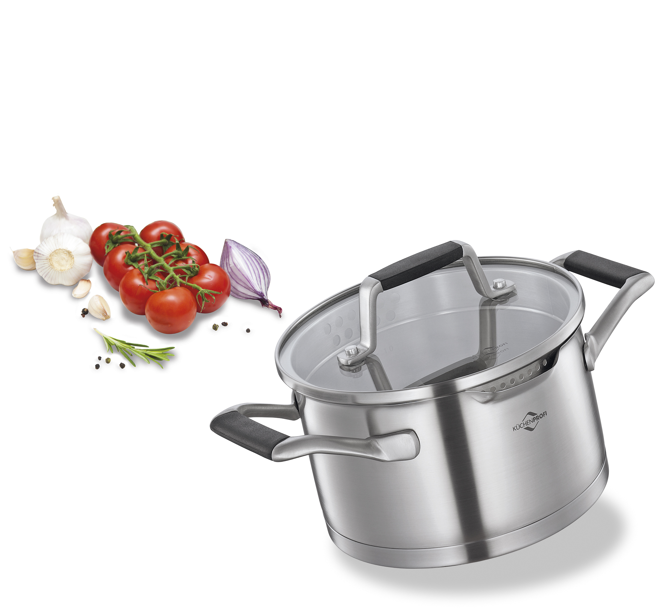 Wer regelmäßig Mahlzeiten für die Familie oder Gäste zubereitet, muss sich auf sein Kochgeschirr verlassen können. Mit dem Kochtopf BOLOGNA von KÜCHENPROFI sind Sie auf der sicheren Seite. Der extra starke Mehrschichtboden leistet ganze Arbeit beim gleichmäßigen Garen von Fleisch, Fisch und Gemüse. Er verteilt die Hitze rasch im ganzen Topf. Der Deckel aus Sicherheitsglas mit feinem und grobem Sieb trägt zur energiesparenden Zubereitung Ihrer Speisen bei. Die wärmeisolierenden Griffe liegen gut in der Hand. So bringt der Kochtopf alles mit, was Sie für den täglichen Gebrauch benötigen, und Sie können sich voll und ganz auf Ihre kreativen Kreationen konzentrieren.