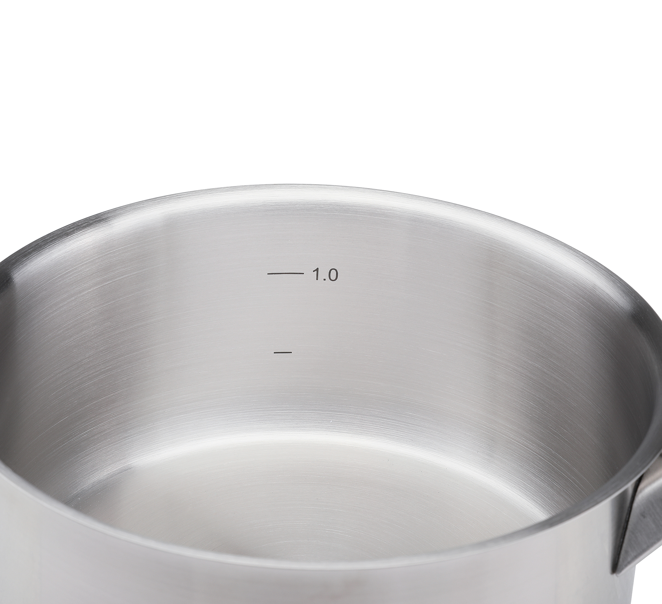 Material: rostfreier Edelstahl, Deckel aus Sicherheitsglas mit Silikonrand. Extrastarker Mehrschichtboden. Wärmeisolierender, silikonummantelter Griff. Mit praktischer Innenskala. Geeignet für sämtliche Herdarten.