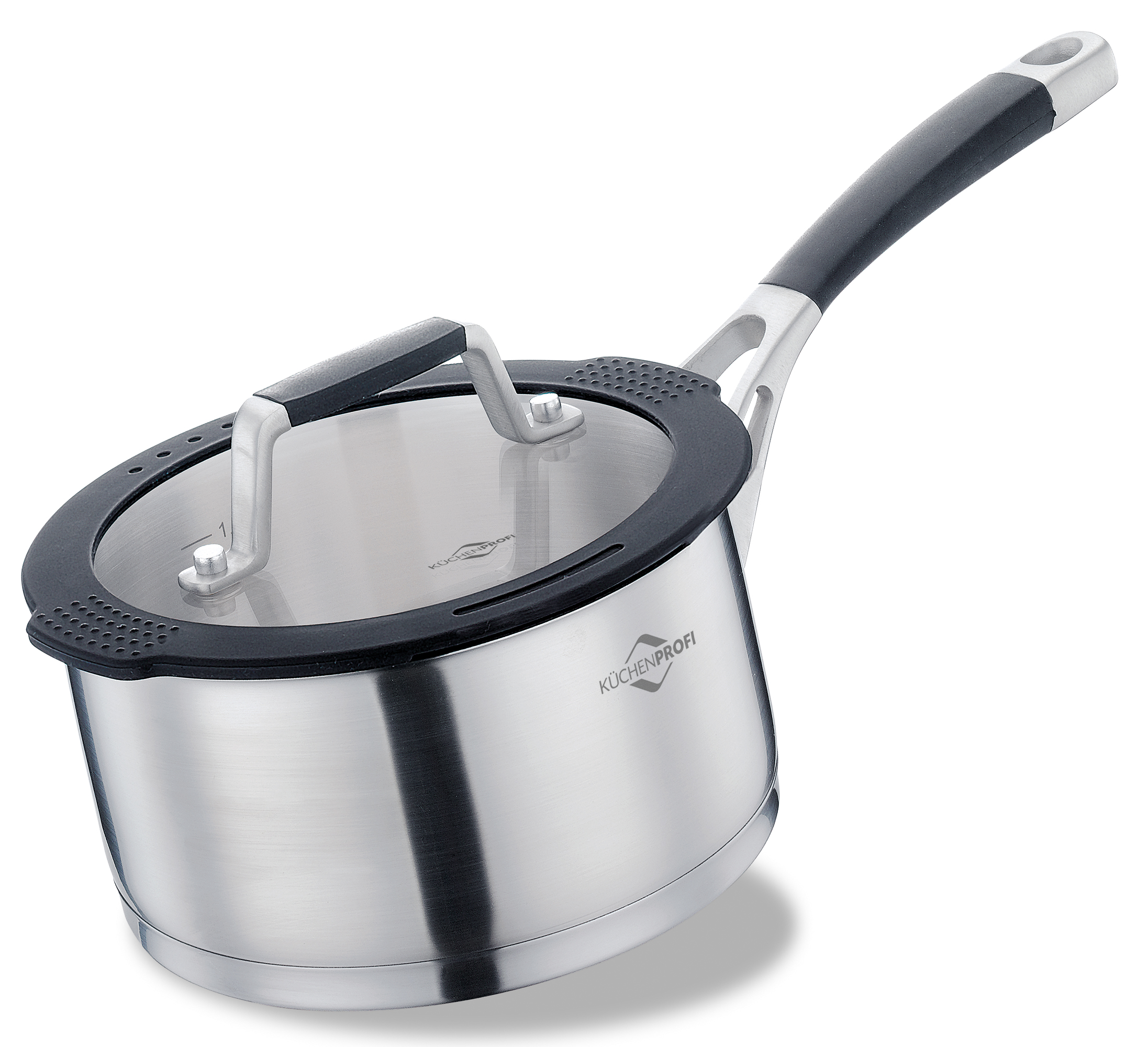 Alles im Griff. Die Stielkasserolle COMO von KÜCHENPROFI halten Sie ganz bequem in einer Hand, während die andere frei ist zum Anrühren von Saucen. Dank des hohen Rands schwappt nichts über. Schleckermäulchen kochen ihren Pudding in der Stielkasserolle. Die praktische Innenskala zeigt an, wie viel Flüssigkeit Sie benötigen, der extrastarke Mehrschichtboden verteilt die Hitze schnell und gleichmäßig. Hat die Milch den Siedepunkt erreicht, bugsieren Sie den Topf mit Hilfe des wärmeisolierenden Griffs schnell vom Herd. Der Deckel aus Sicherheitsglas mit integrierter Abgieß- und Siebfunktion liegt dank seiner Silikonumrandung sanft auf dem Topf aus. Störende Klappergeräusche beim Kochen gehören damit der Vergangenheit an.