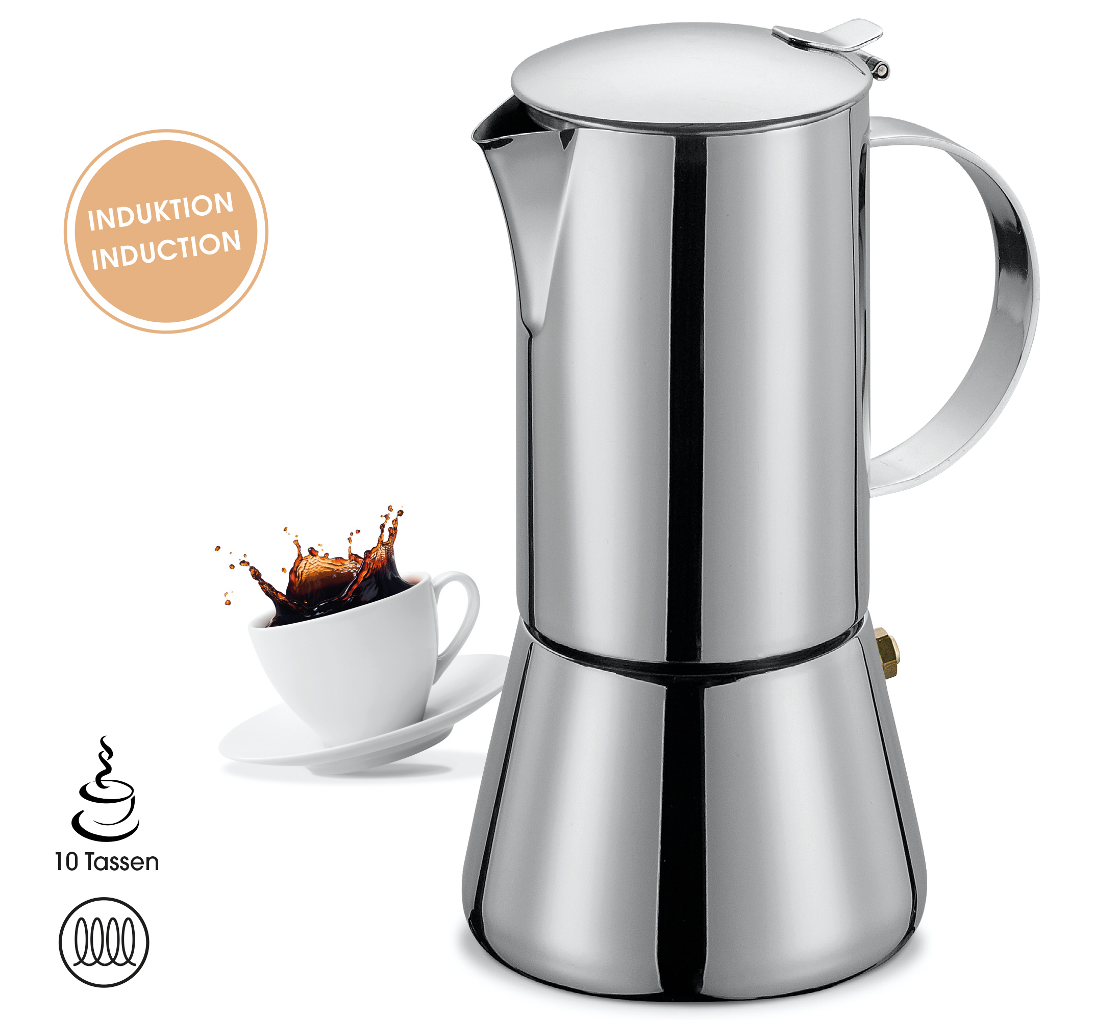 Klassiker unter sich. Nicht umsonst hat cilio den Espressokocher AIDA nach Verdis Oper benannt. Er hat den klassischen Look und gehört für Italien-Fans fest zum Kaffee-Repertoire. Er glänzt nicht nur optisch - das leicht gängige Gewinde verschließt das Unterteil und die Kanne dicht. Dank des Planbodes steht er fest und sicher auf dem Herd. Schon nach wenigen Minuten steigt das Wasser in den mit Espressopulver gefüllten Trichtereinsatz. Bis bei der Oper der Vorgang fällt, könnten Sie so einige Tassen trinken – diese dauert nämlich rund drei Stunden.