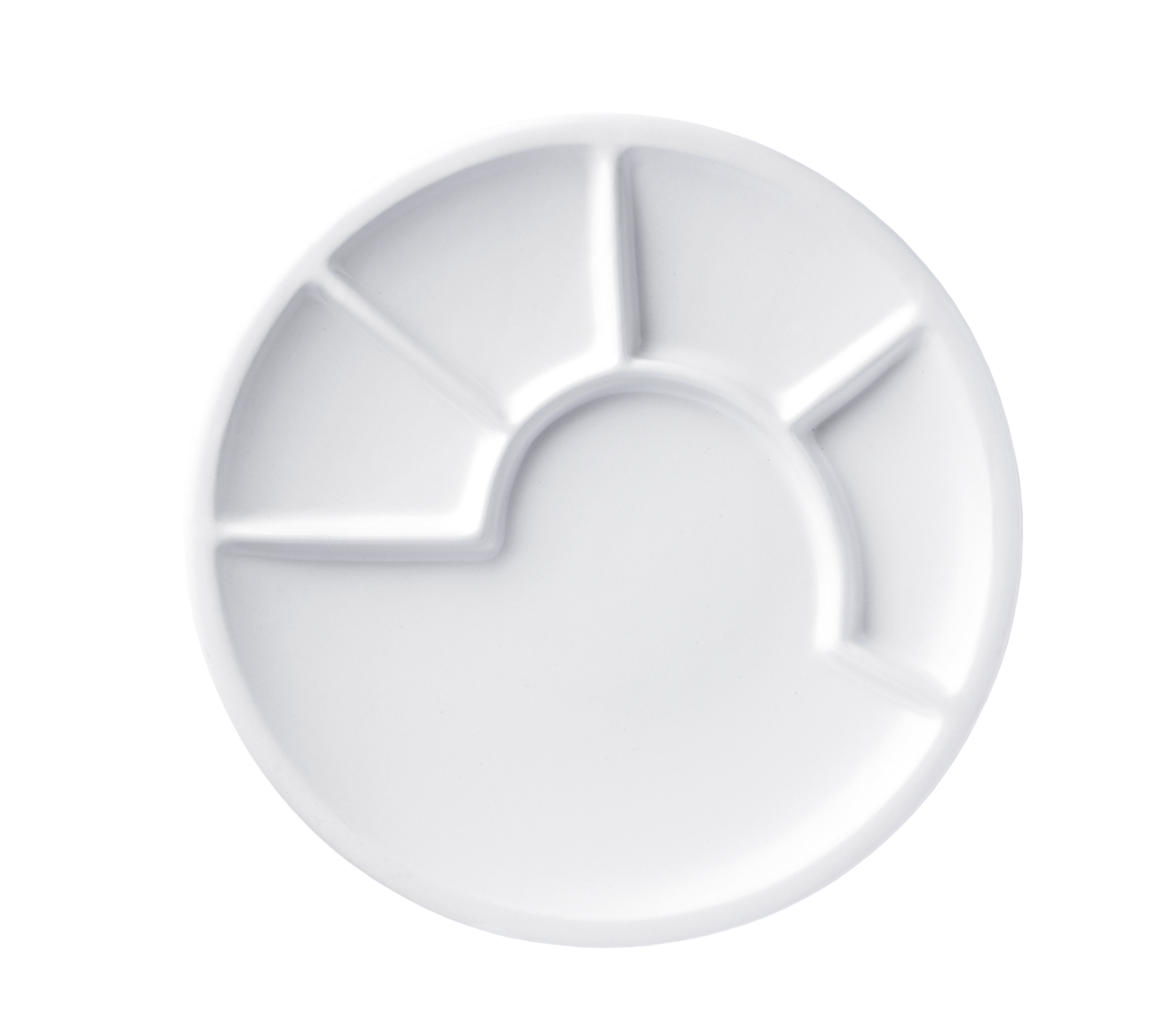 Mit Unterteilungen für verschieden Saucen und Zutaten