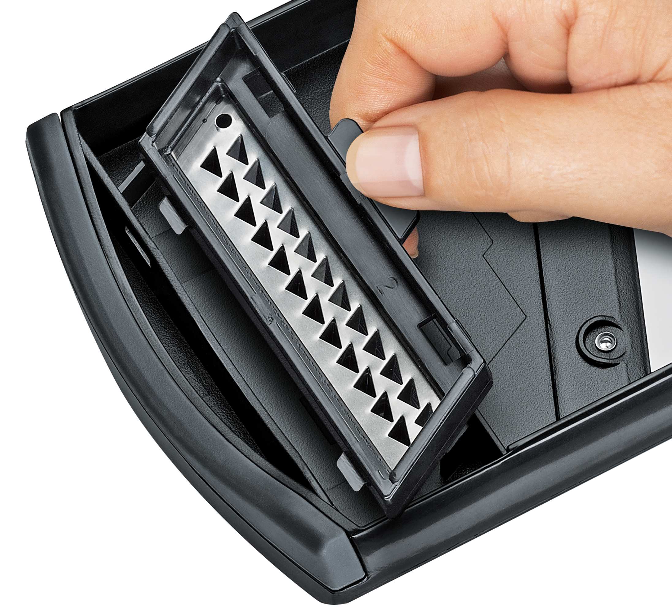 die Schneideinsätze lassen sich gut unter fließendem Wasser reinigen. Der