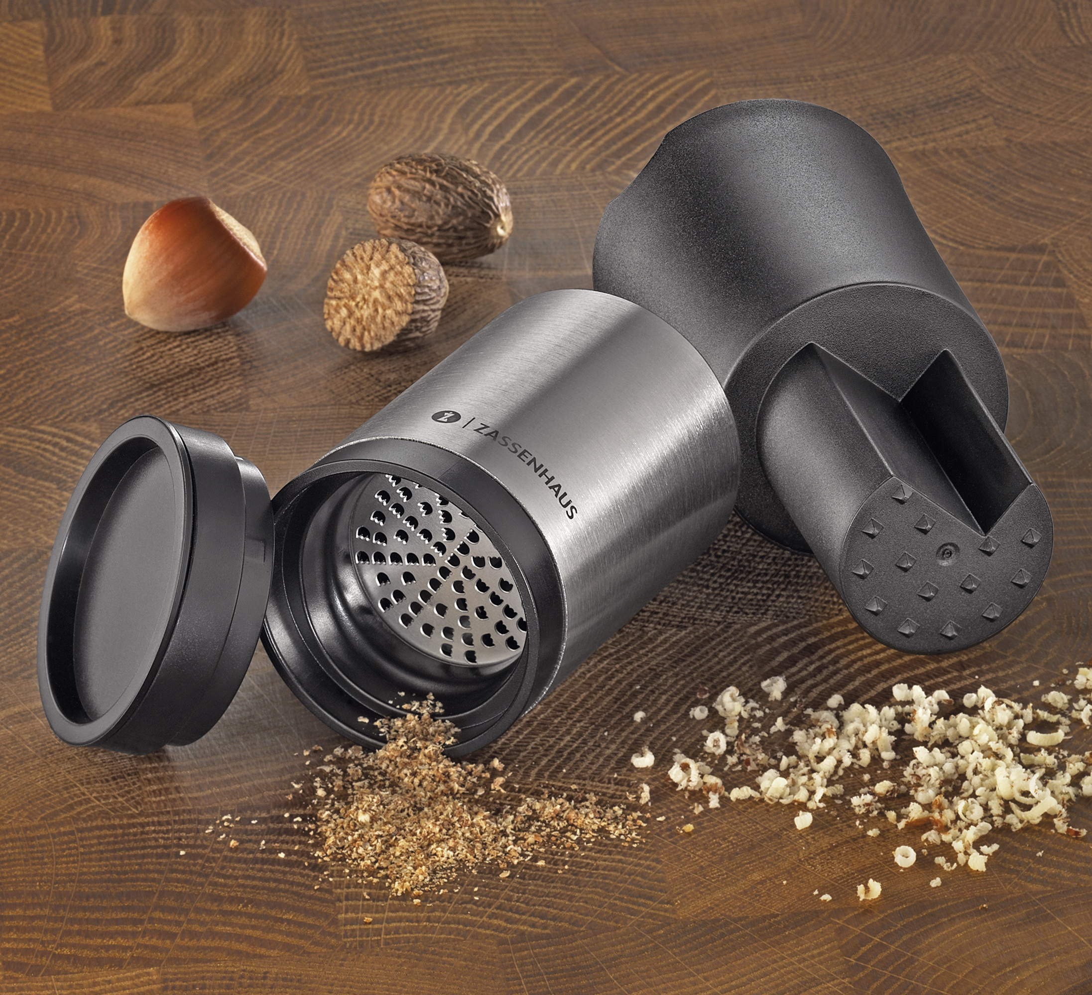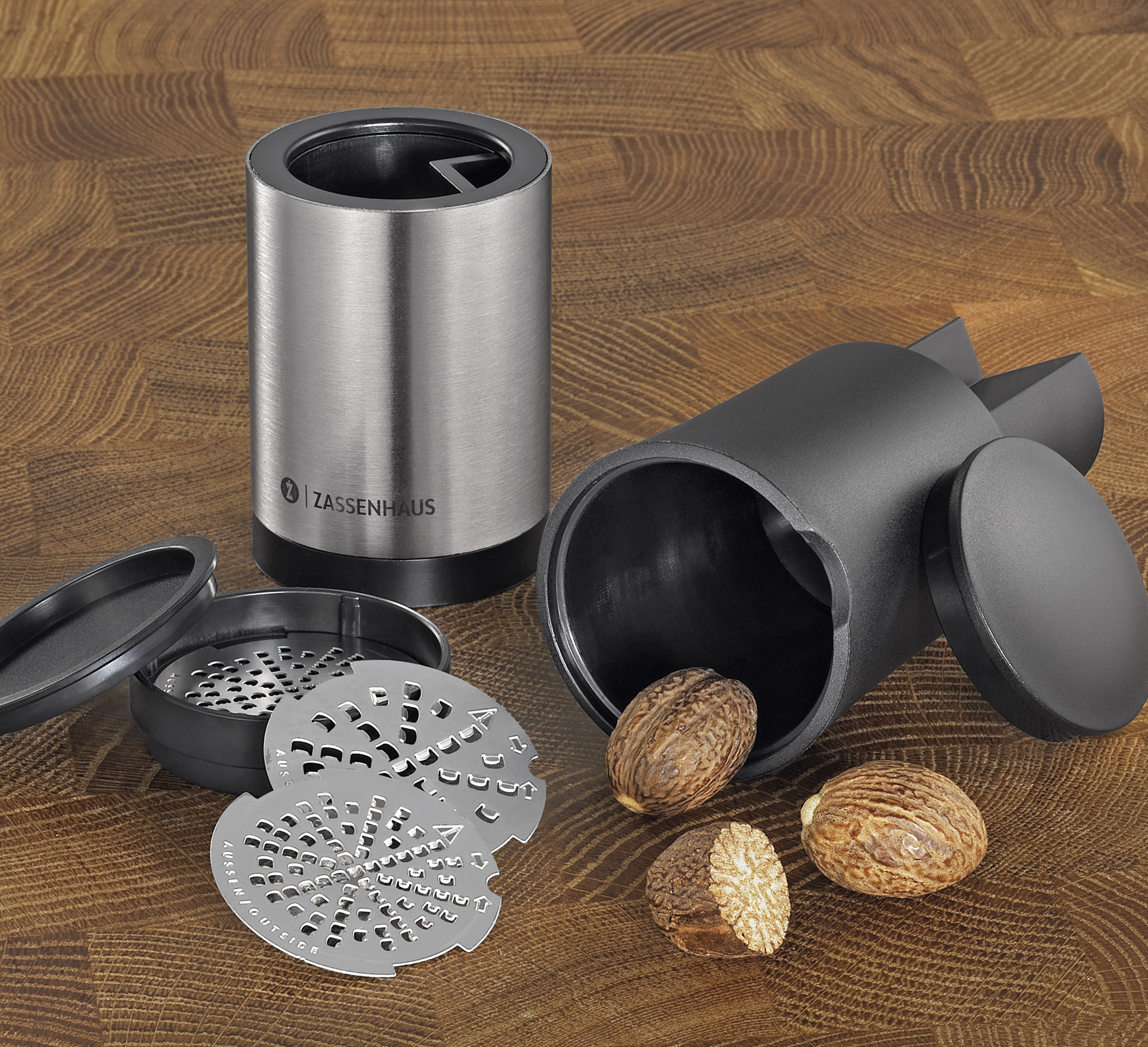 Scharf wie Ihr Rasiermesser. Bei den Reibscheiben der Gewürzmühle DUO CONCEPT setzt ZASSENHAUS auf Laser-Cut-Technologie. Mühsames Reiben von besonders harten Gewürzen gehört der Vergangenheit an, denn die Mühle zerlegt Muskatnüsse, langen Pfeffer, Zimt, Nüsse, Samen und Kräuter schnell und präzise. Die drei schnell austauschbaren Reibscheiben ermöglichen für jedes Gewürz und Gericht den gewünschten Mahlgrad von groben Flocken bis zu feinem Pulver. Praktisch: Für angebrochene Gewürze gibt es einen Vorratsbehälter mit Deckel. Ein echtes Must-have für jeden Gewürz-Gourmet!