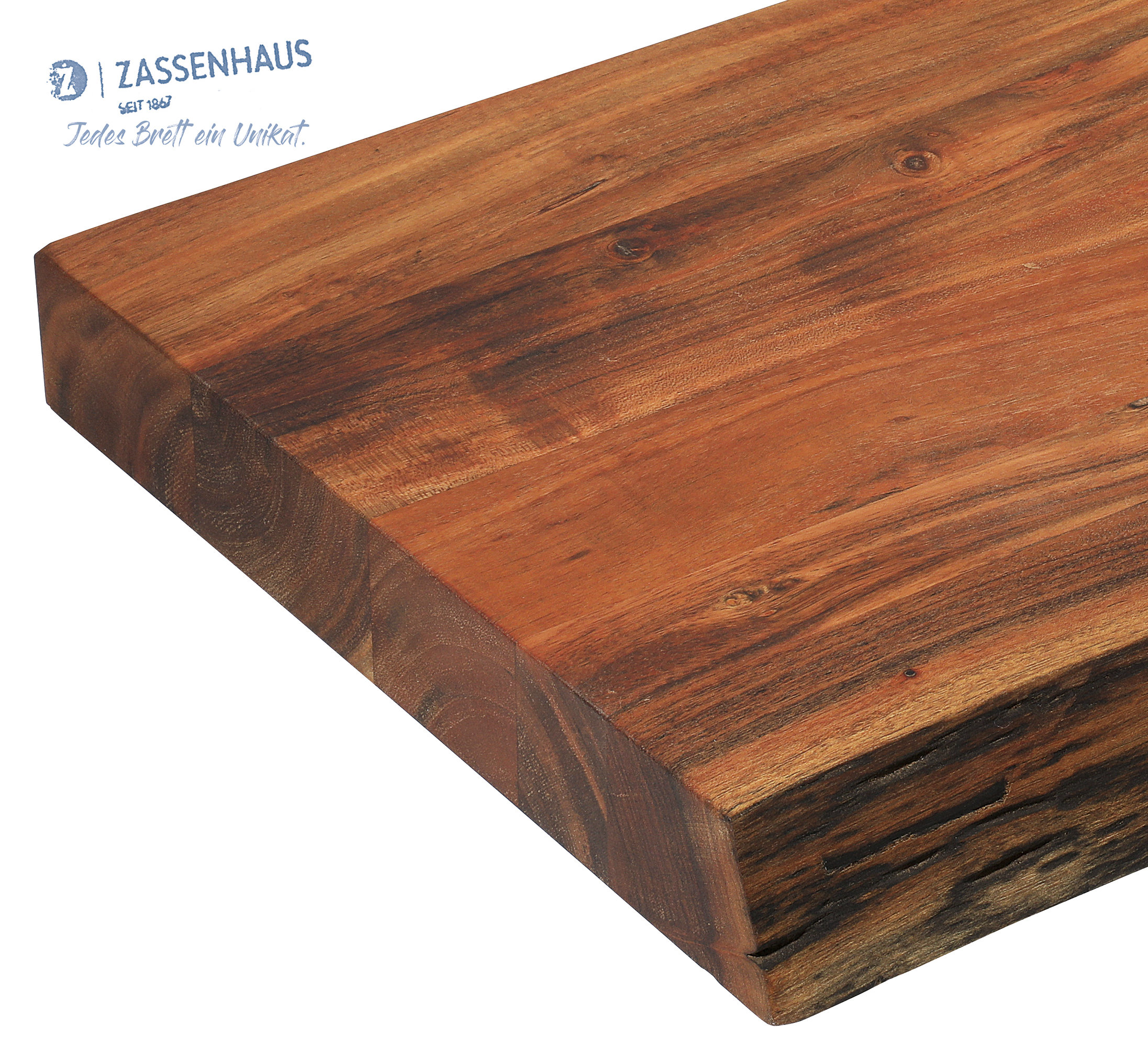Er wird auch Butcher Board genannt. Aus gutem Grund. Der Hackblock von ZASSENHAUS ist ideal zum Zerhacken und Zerteilen von Fleisch, gerne in großen Mengen. Er hat ein ordentliches Gewicht und rutscht nicht weg, wenn Sie kraftvoll aus dem Rinderfilet die Steaks für das nächste BBQ schneiden oder die Rippchenstränge durchtrennen. Das Akazienholz mit dem natürlich gewachsenen Rand ist besonders fest und steckt einiges weg. Auch zum Schneiden von Obst oder Gemüse und Zerkleinern von Nüssen oder frischen Kräutern ist der kernige Helfer bestens geeignet. Das edle Küchenaccessoire ist ein Hingucker in jeder Küche und zeigt, dass Sie Ihr Handwerk verstehen.