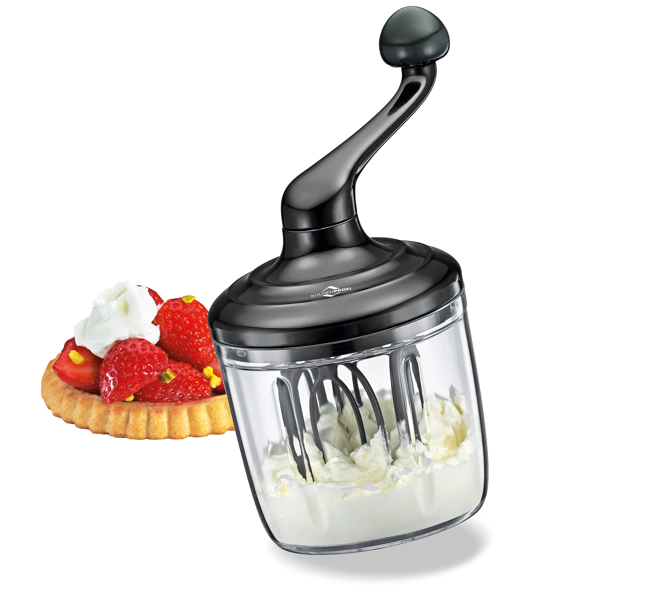 Manchmal braucht es nicht mehr als eine Kurbel und ein gutes Gefühl für die Zutaten. Eischnee luftig aufschlagen, Dressings fein verrühren oder flüssige Teige anmischen – mit dem Handrührgerät RÜHRPROFI von KÜCHENPROFI gelingt das mühelos und ganz ohne Strom. Die große, ergonomisch geformte Handkurbel setzt die vier integrierten Quirle gleichmäßig in Bewegung und sorgt für ein kontrolliertes, schnelles Vermischen der Zutaten. Der transparente Mixbehälter erlaubt jederzeit den Blick auf den Inhalt und liegt dank praktischer Griffmulden sicher in der Hand. Der 1 Liter fassende Behälter wird per Bajonettverschluss arretiert – für einen sicheren Halt beim Rühren. Die abnehmbare Handkurbel erleichtert die Reinigung und ermöglicht eine platzsparende Aufbewahrung.