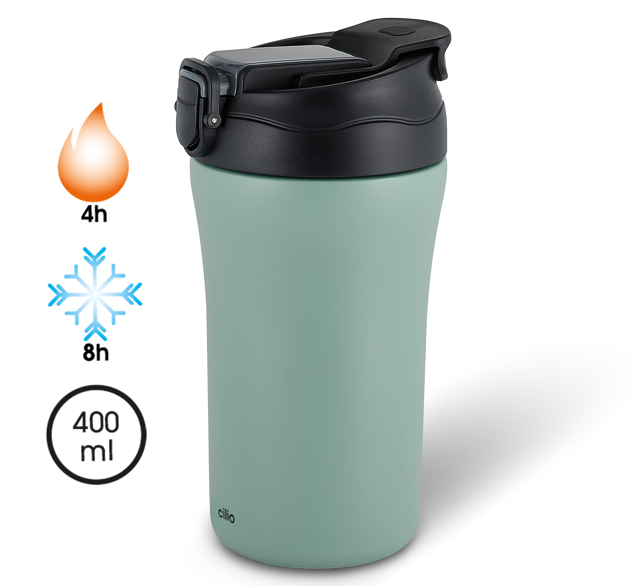 Doppelt isoliert, weil‘s einfach entspannter ist. cilio hat den Isoliertrinkbecher DOPPIO mit einem Doppelwandsystem ausgestattet. So bleiben Kaffee oder Tee bis zu vier Stunden heiß, Wasser und Fruchtsäfte acht Stunden kalt. Die bessere Alternative zu Einwegbechern ist leicht zu reinigen, auslauf- und bruchsicher. Er hat zwei Trinkauslässe und bringt seinen eignen Trinkhalm mit. Der vielseitige Alltagsbegleiter passt in alle gängigen Becherhalter, den Wanderrucksack, die Sporttasche und auf den Schreibtisch. Er steht sicher auf seinem rutschfesten Boden und ist leicht zu reinigen.
