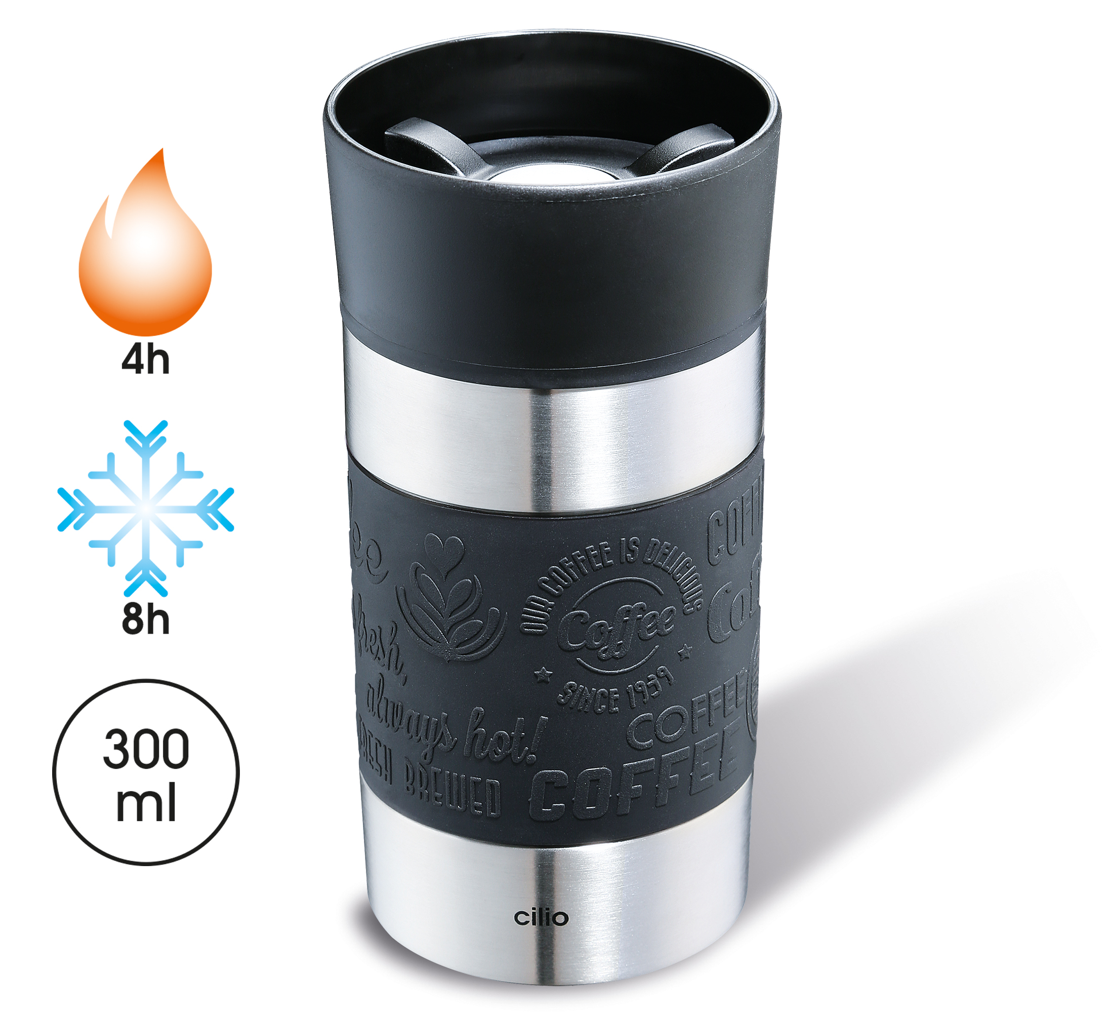 Wohin geht die Reise? Der Isolierbecher VIAGGIO von cilio tankt Kaffee oder Tee, dann geht es los. Mit Ihrem Reisebuddy aus Edelstahl und hochwertigem Kunststoff sind Sie in jedem Fall mit gutem Gewissen unterwegs, da Sie auf Plastikflaschen und Einwegbecher getrost verzichten können. Er ist leicht zu reinigen und begleitet Sie auf vielen Touren. Das Doppelwandsystem hält Ihr Getränk wahlweise vier Stunden heiß oder acht Stunden kühl. Der praktische Becher mit dem schönen Design hat einen 360° Trinkverschluss, ist auslauf- und bruchsicher. Und der Clou – der Becher passt perfekt unter alle gängigen Kaffeevollautomaten und Padmaschinen. So starten Sie besonders bequem in den Tag.
