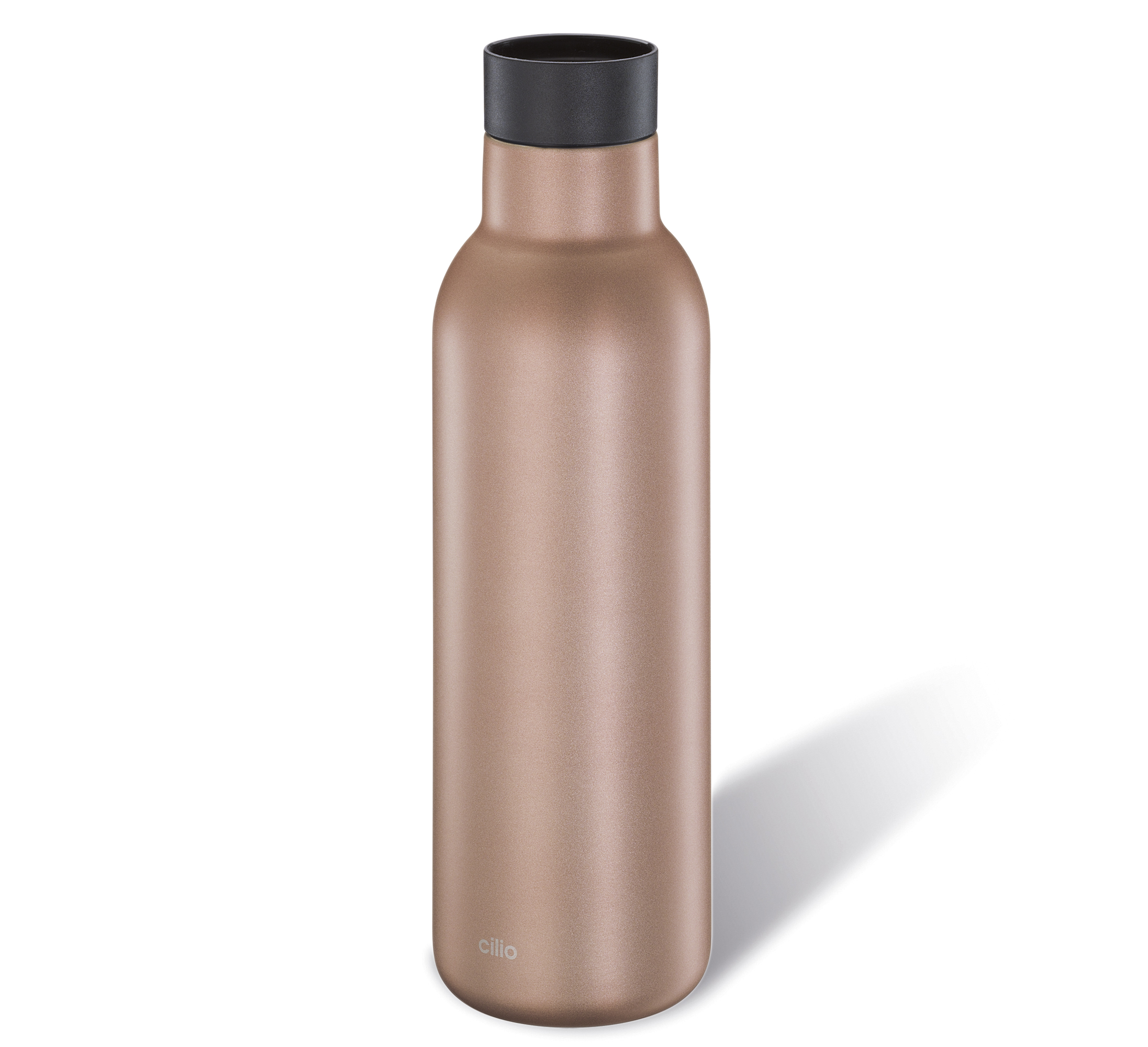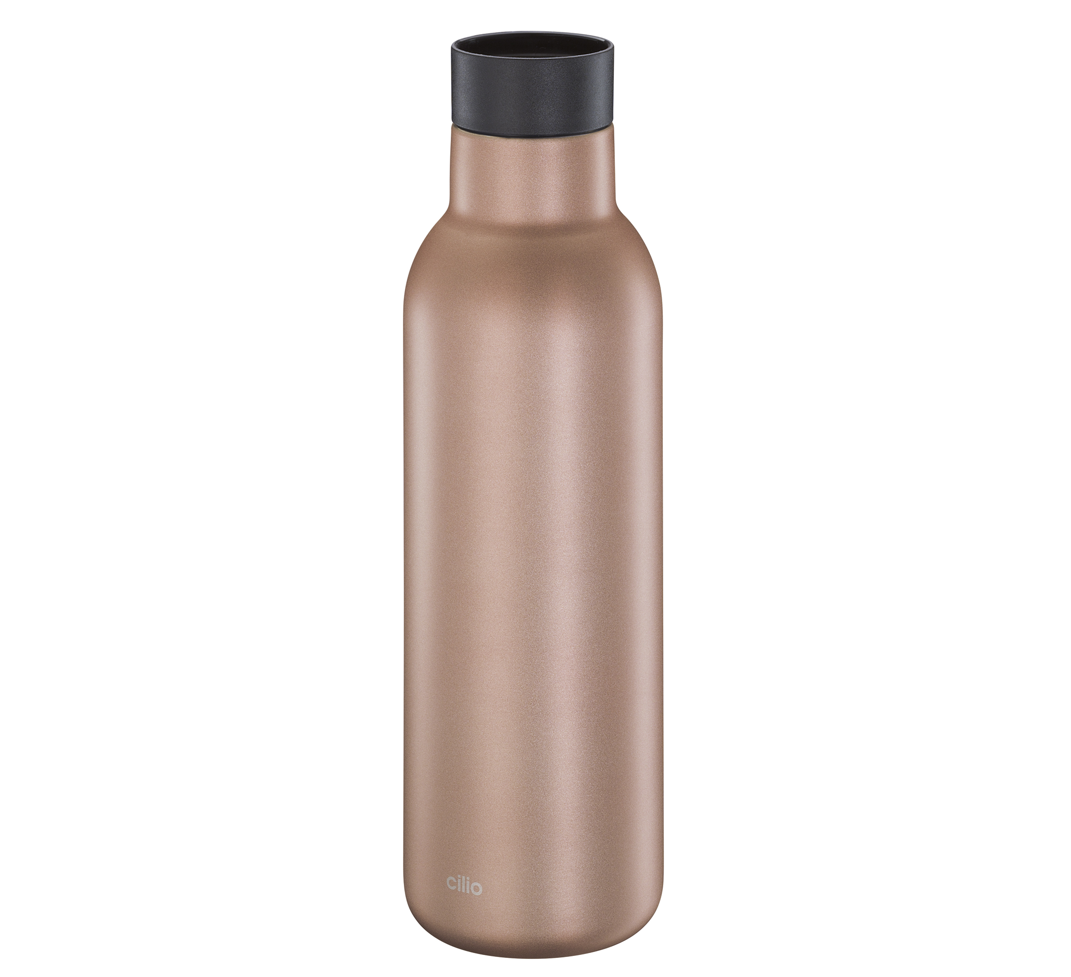 Ein echter Luxus: Jederzeit und an jedem Ort das Lieblingsgetränk genießen zu können. Das gelingt mit der Isoliertrinkflasche DELUXE von cilio. Sie ist aus robustem, rostfreiem Edelstahl gefertigt und hat ein Doppelwandsystem mit Kupferbeschichtung. Die bruch- und auslaufsichere Isoliertrinkflasche hält Getränke bei Outdoor-Aktivitäten, auf der Arbeit, während der Reise oder beim Sport wahlweise 12 h heiß oder 24 h kalt. Gute Nachricht für Fans von Schorle & Co.: Die smarte Trinkflasche ist auch für kohlensäurehaltige Getränke geeignet. Den praktischen 360° Trinkverschluss können Sie zur gründlichen Reinigung zerlegen.