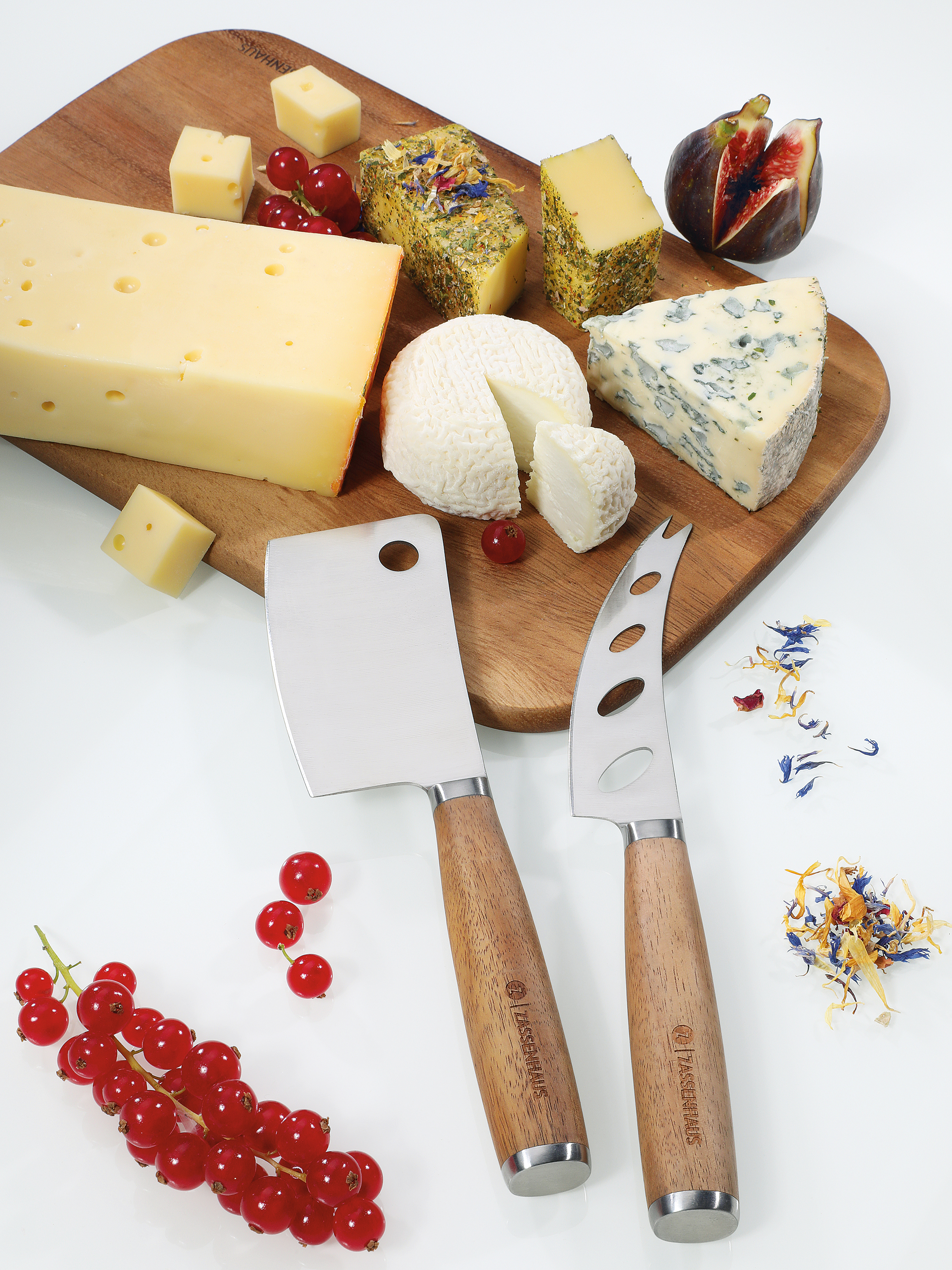 Die üppige Käseplatte steht bereit, doch wie rückt man den verschiedenen Käsesorten am besten „zu Laibe“? Mit dem Käsemesser-Set von ZASSENHAUS haben Sie genau die passenden Werkzeuge zur Hand. Das Weichkäsemesser hat Löcher in der Klinge, damit Camembert und Brie nicht kleben bleiben, das Hartkäsemesser mit der breiten Klinge ist auf Gouda, Emmentaler & Co. spezialisiert. Die Griffe aus Akazienholz liegen gut in der Hand und machen die Messer zur echten Augenweide auf dem Käsebrett.