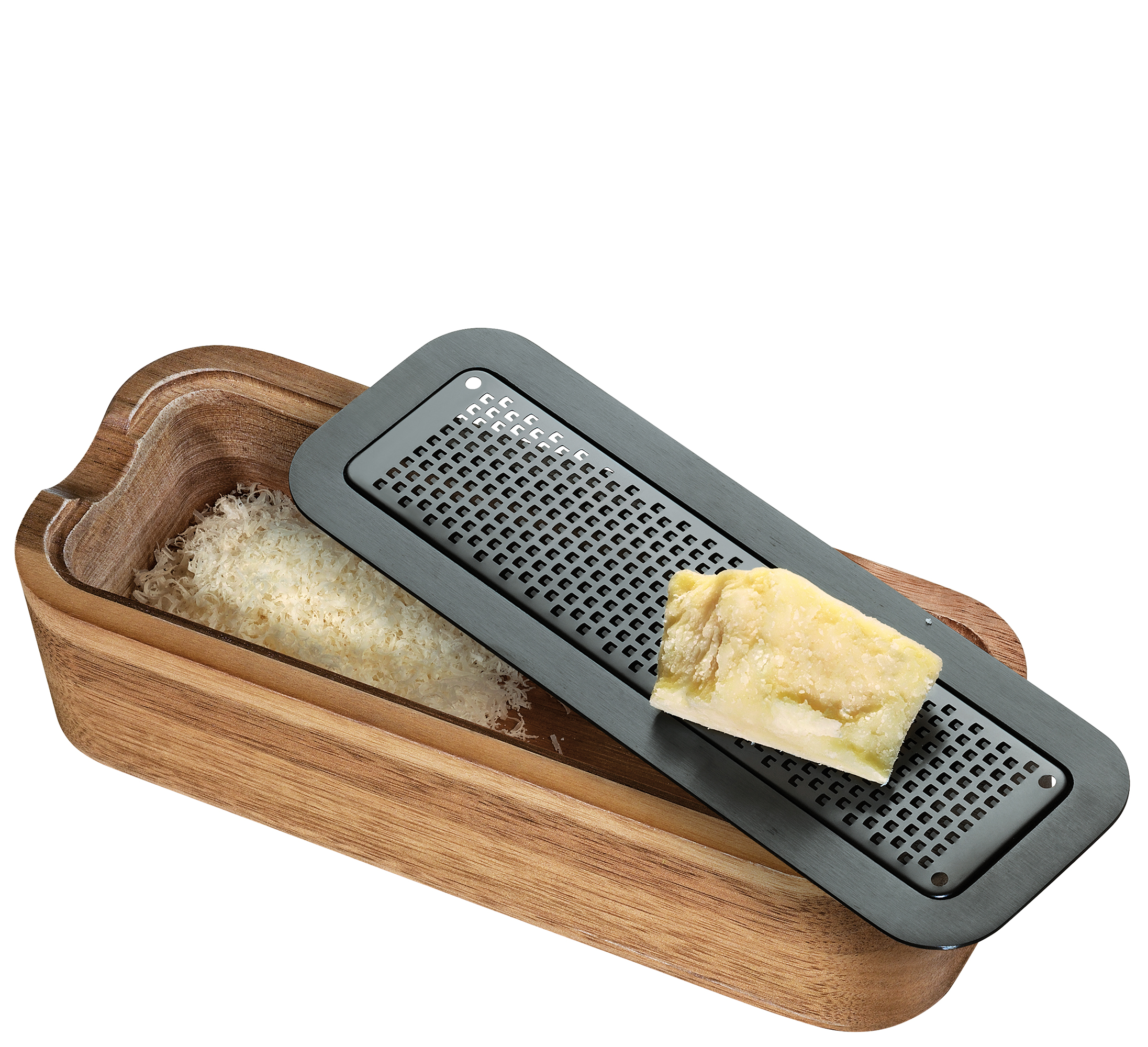 Wenn frisch geriebener Parmesan sein köstliches Aroma verbreitet, dann schmeckt die Pasta gleich noch einmal so lecker. Mit der Käsereibe von ZASSENHAUS haben Sie dafür das passende Werkzeug zur Hand. Die scharfe Reibefläche sorgt für optimale Ergebnisse, auch beim Reiben von Nüssen und Schokolade. In der natürlich-schönen Auffangschale aus Akazien-Holz können die Lebensmittel direkt stilvoll serviert werden.