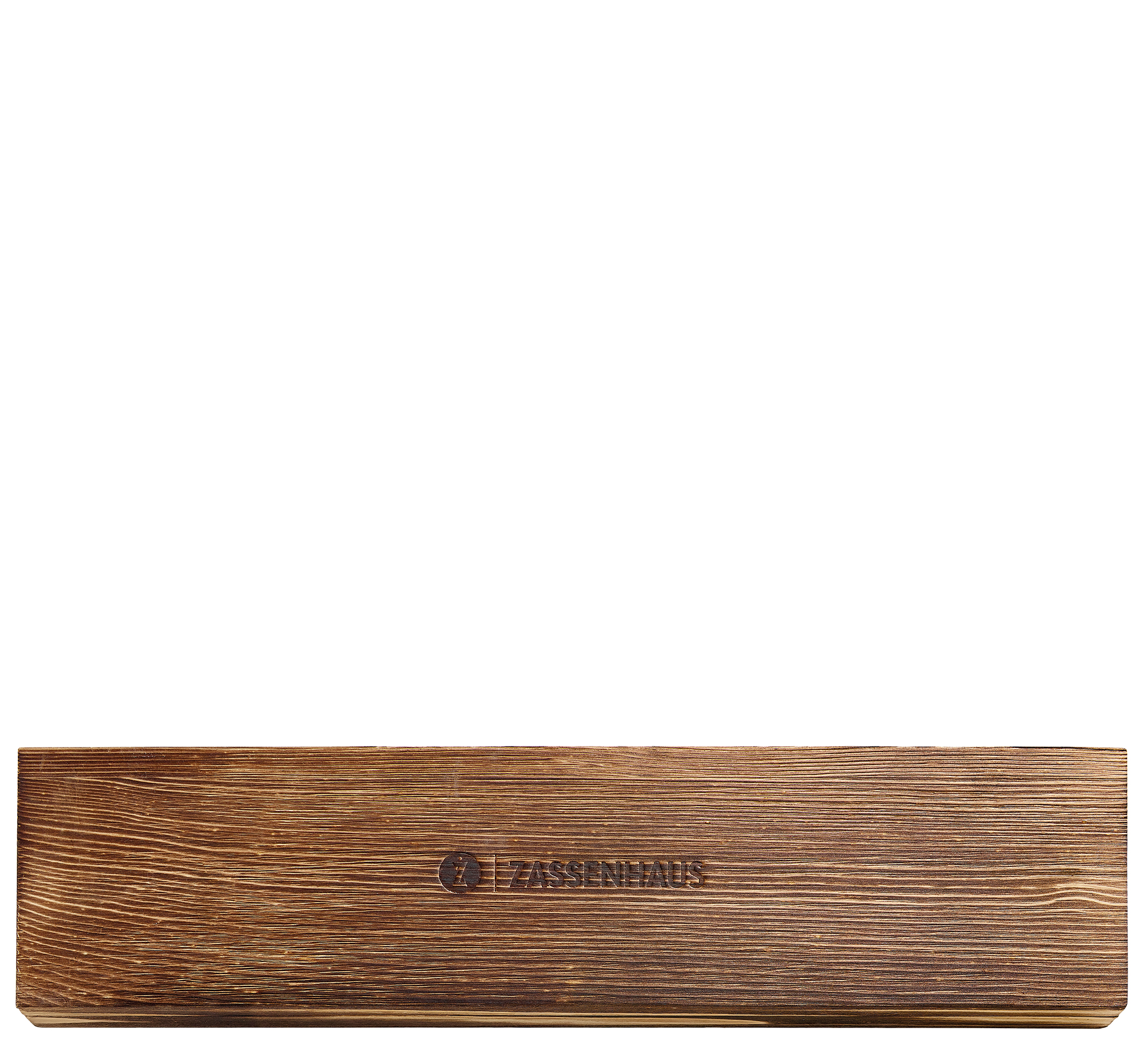 einfach wieder von der Klinge löst. Der Griff aus Oliven-Holz weist eine
