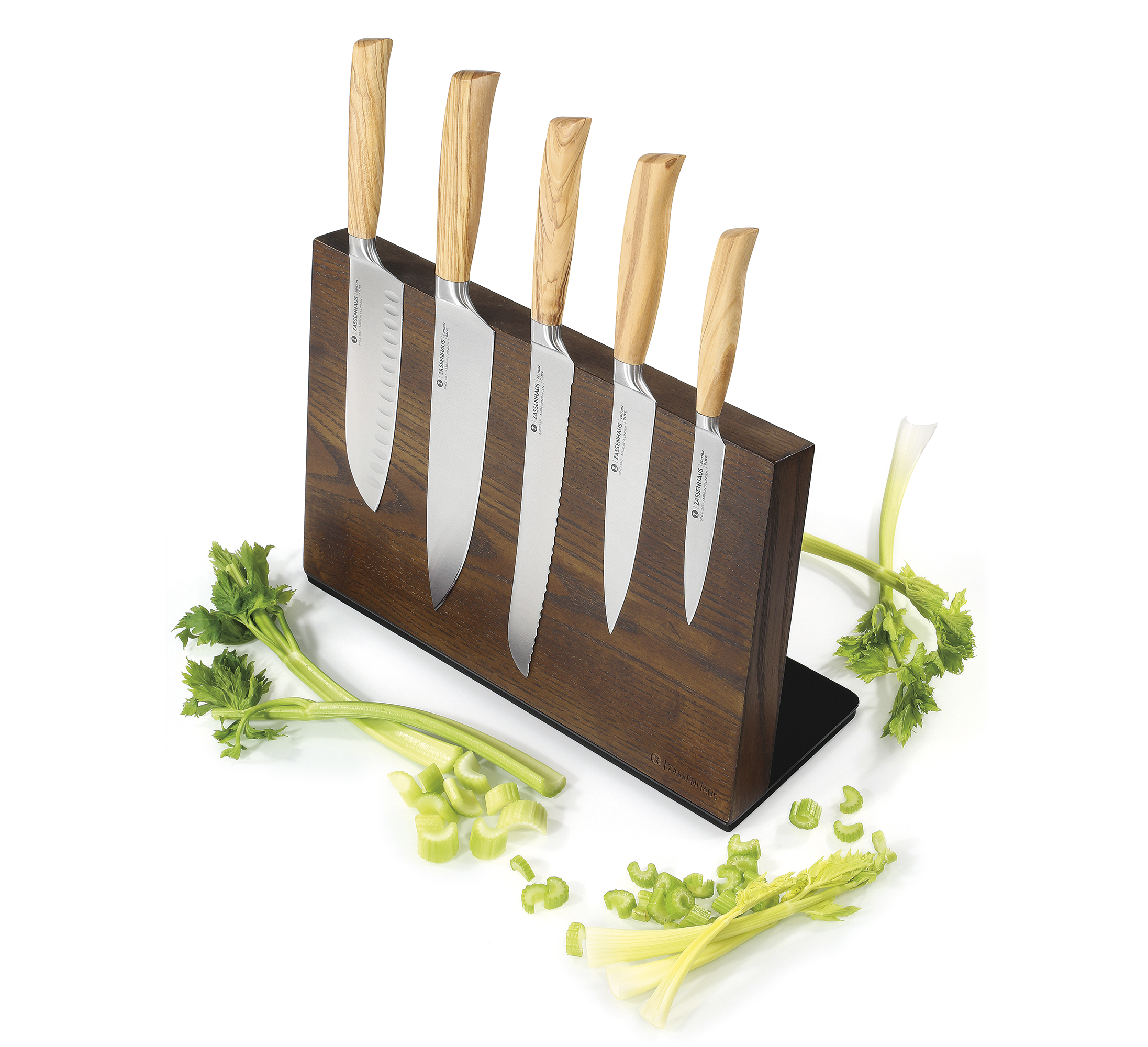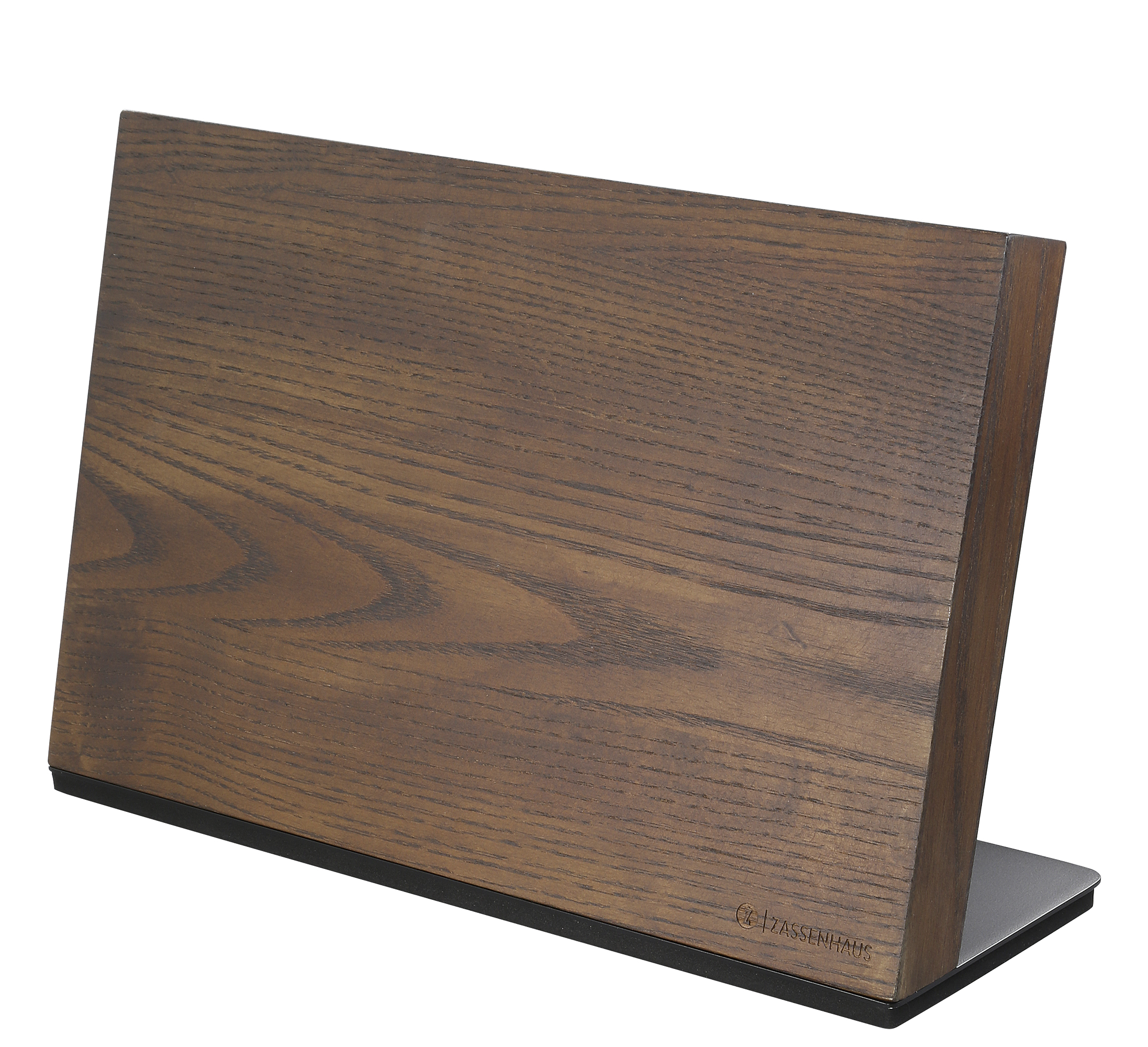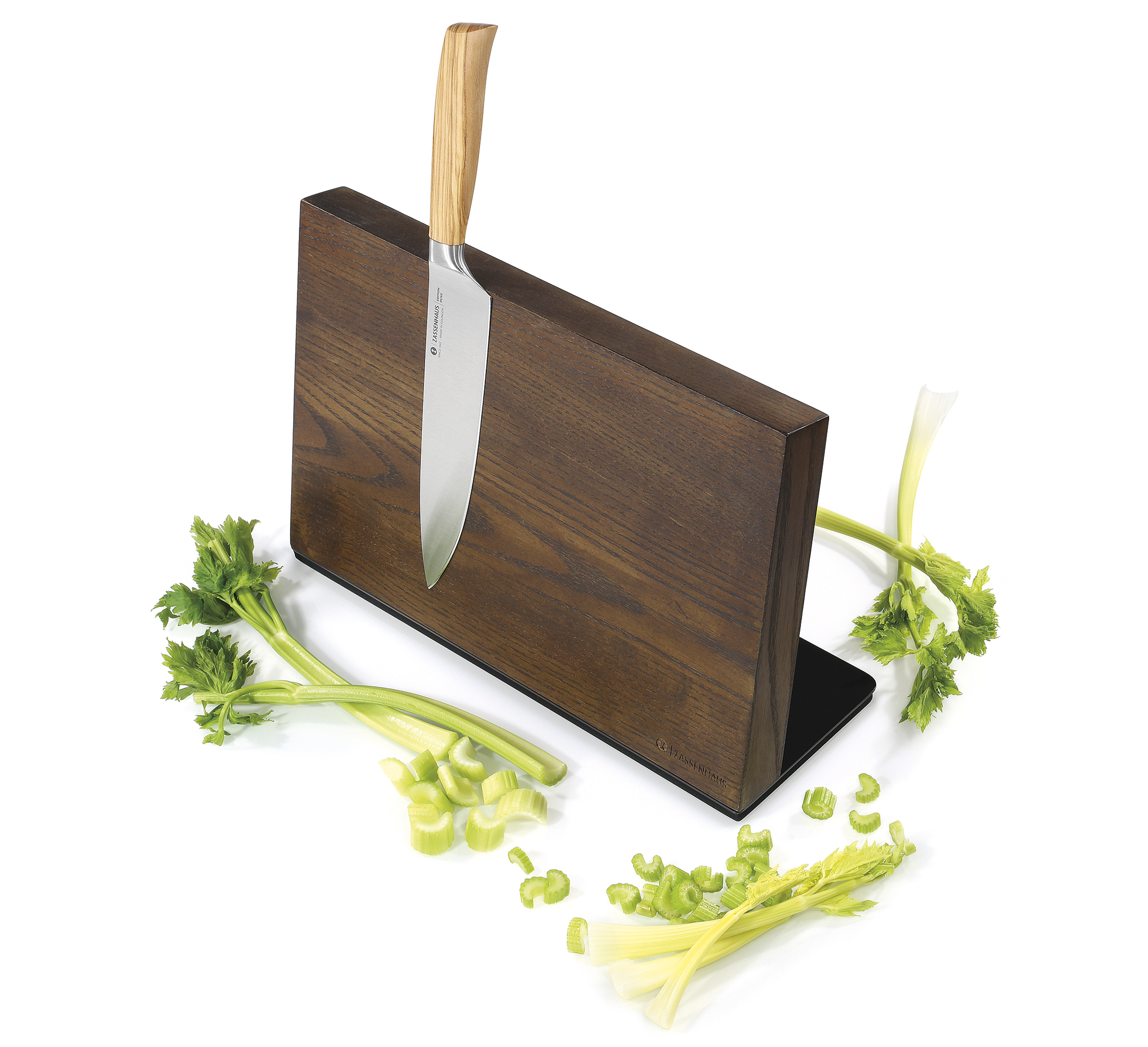 Funktional und repräsentativ wie ein gut durchdachter Wohnraum. Der Magnet-Messerblock STUDIO von ZASSENHAUS macht Ihre Küche zum Showroom. Das hochwertige Holz zieht die Blicke auf sich und die stattliche Messersammlung. Bis zu acht Exemplare mit einer Klingenlänge bis 23 cm können Sie auf dem praktischen Accessoire stilvoll und sicher aufbewahren. Die von außen nicht sichtbaren Magnetstreifen leisten ganze Arbeit. Auch die standfeste, oberflächenschonende Basisplatte aus robustem Edelstahl sorgt für ein sicheres Handling. So macht das Schneiden von Karotten, Zwiebeln, Champignons und Speck für das Coq au Vin doppelt Spaß.