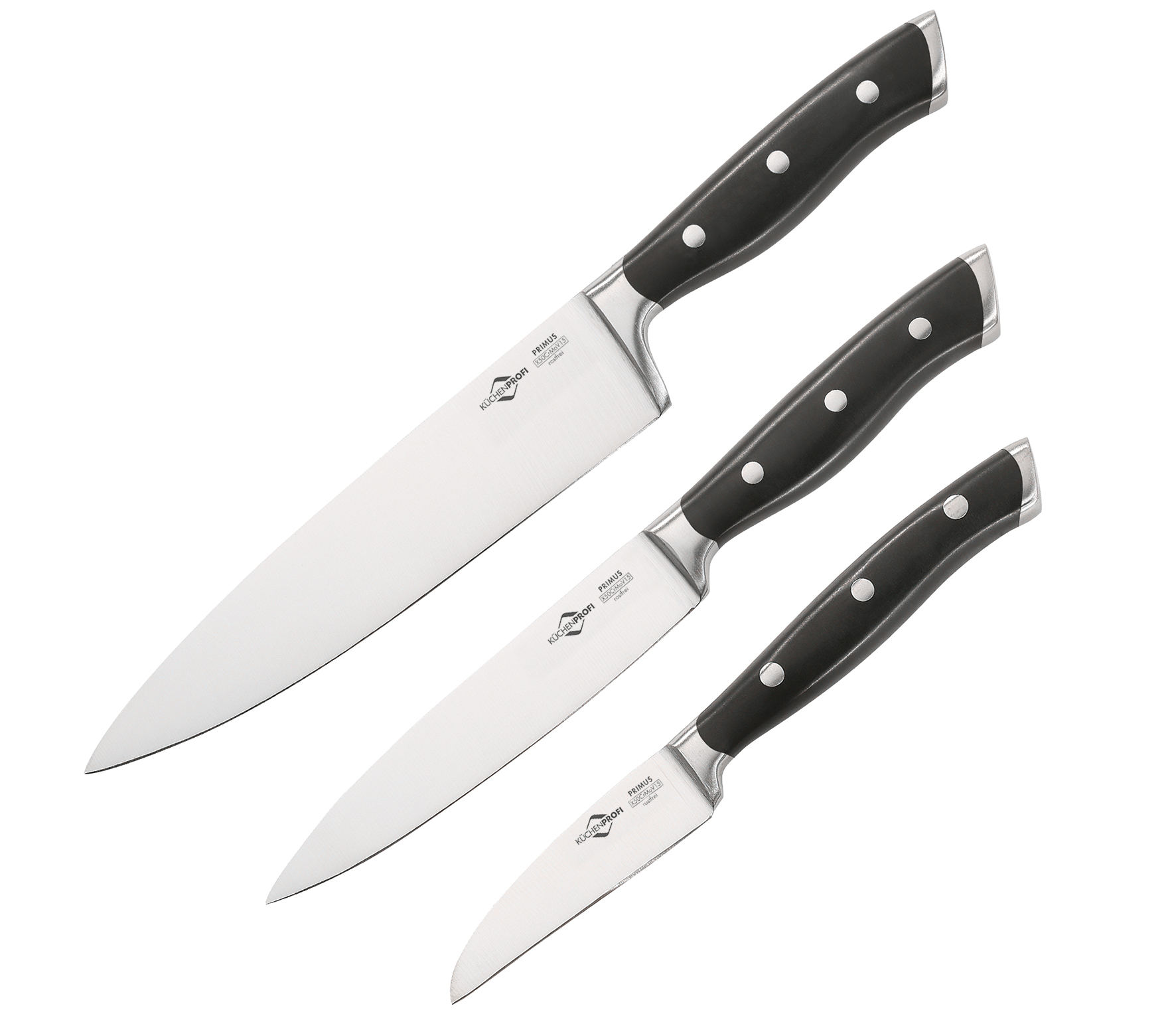 Kochmesser 20 cm, Fleischmesser 16 cm und Gemüsemesser 8 cm
