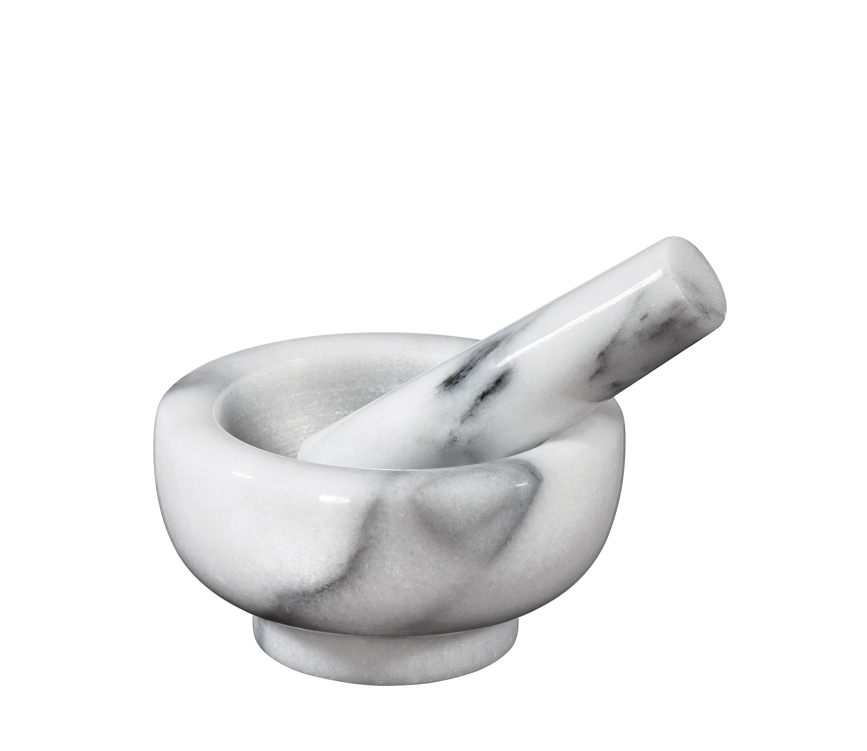 Mörser haben in der Küche Tradition. Aus gutem Grund. Mit ihrer Hilfe lassen sich Kräuter und Gewürze ganz bequem zerkleinern und entfalten ihr volles Aroma. Der Mörser von KÜCHENPROFI ist formschön und funktional. Er eignet sich perfekt für die Zubereitung von Gewürzmischungen, Marinaden, Krusten für Fleisch und Pesto. Wer es lieber süß mag, mahlt feinsten Puderzucker. Das Material Marmor hat keinen Abrieb, ist geschmacksneutral und leicht zu reinigen. Der Stößel liegt gut in der Hand, sein Ende ist angeraut, um das Zerkleinern von Gewürzen, Kräutern, Pfefferkörnern oder Nüssen zu erleichtern. Apropos Nüsse: Krönen Sie Ihr Filet doch einmal mit einer Kruste aus entsteinten Oliven, Kapern, Oregano, Paprika und Macadamia-Nüssen. Die Zutaten kommen erst in den Mörser und dann auf das Fleisch, das zuvor angebraten und mit Senf bestrichen wurde. Anschließend im Backofen weiterschmoren und genießen.