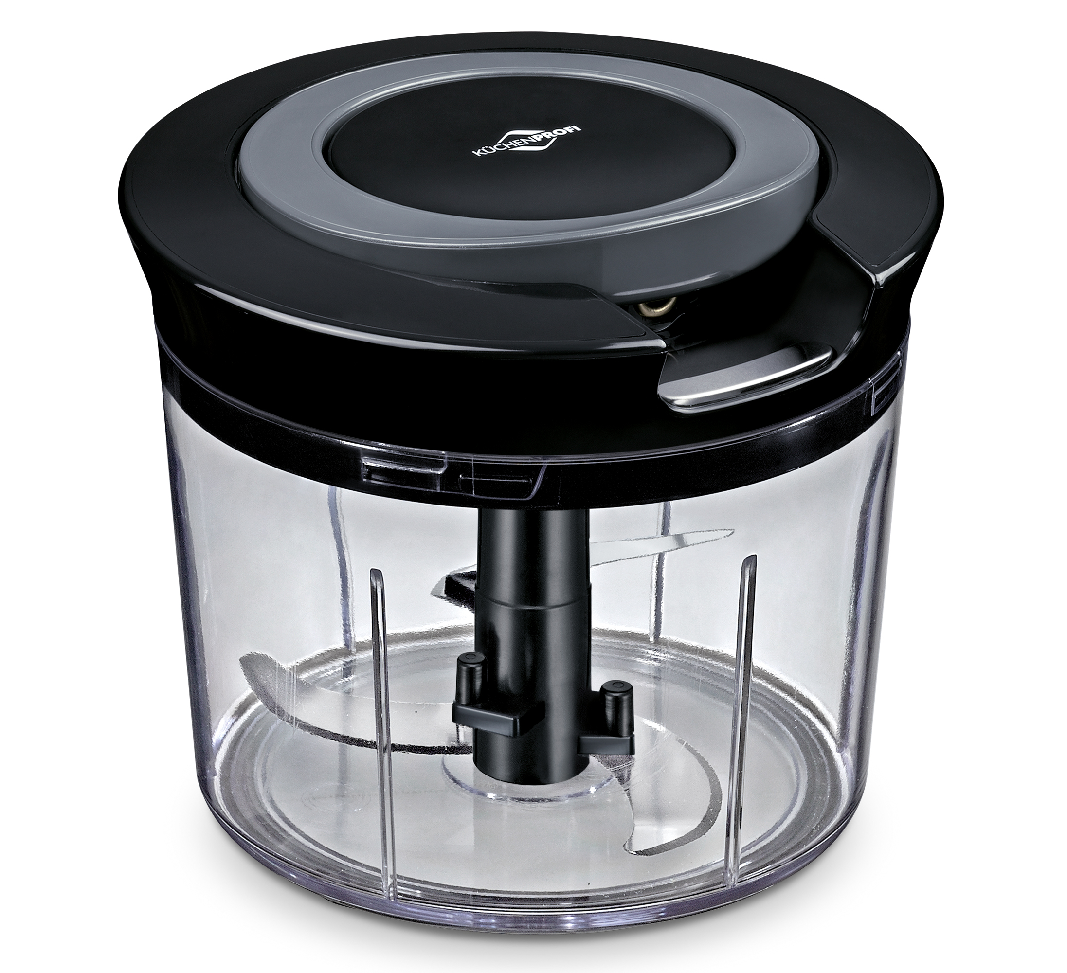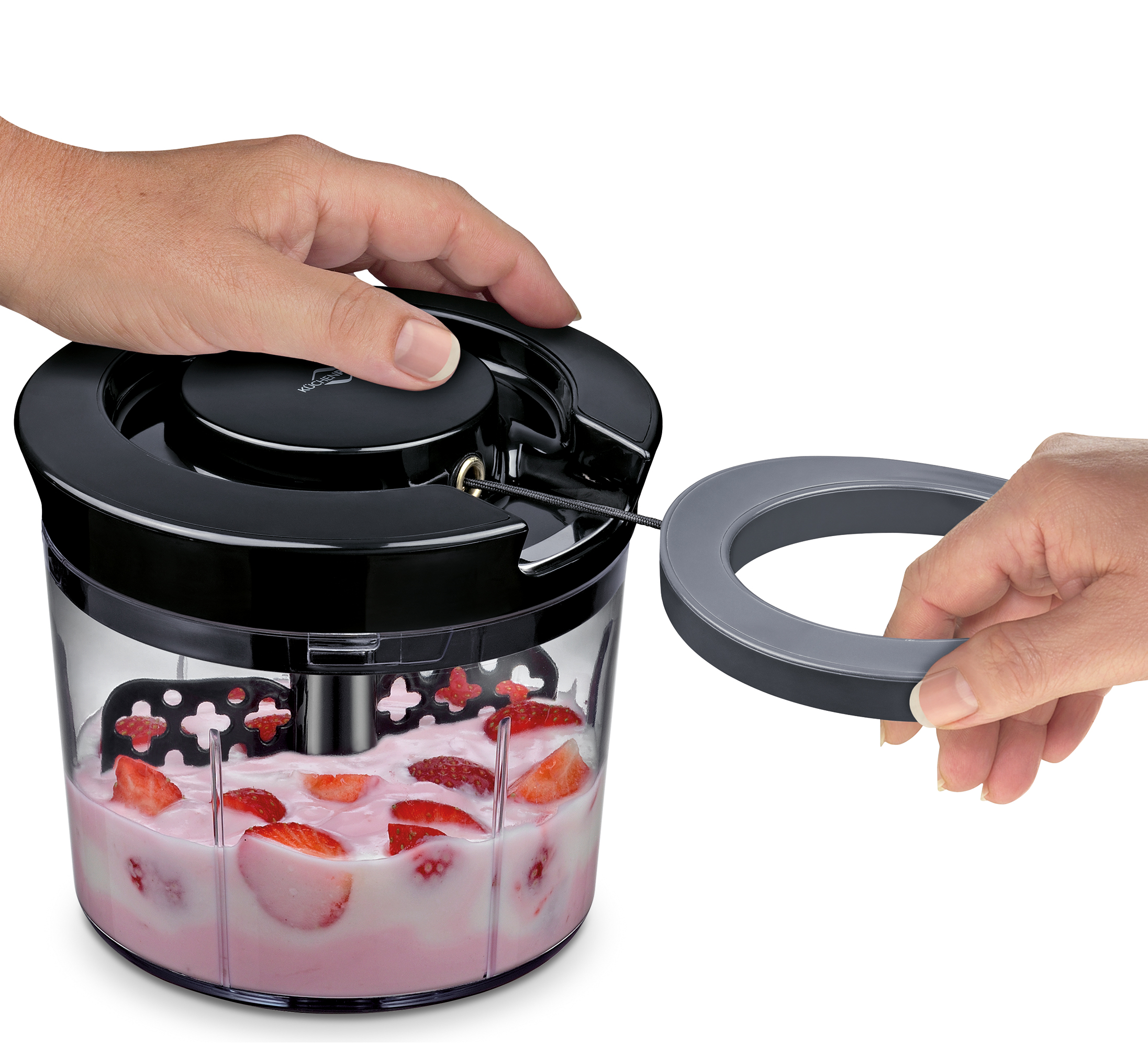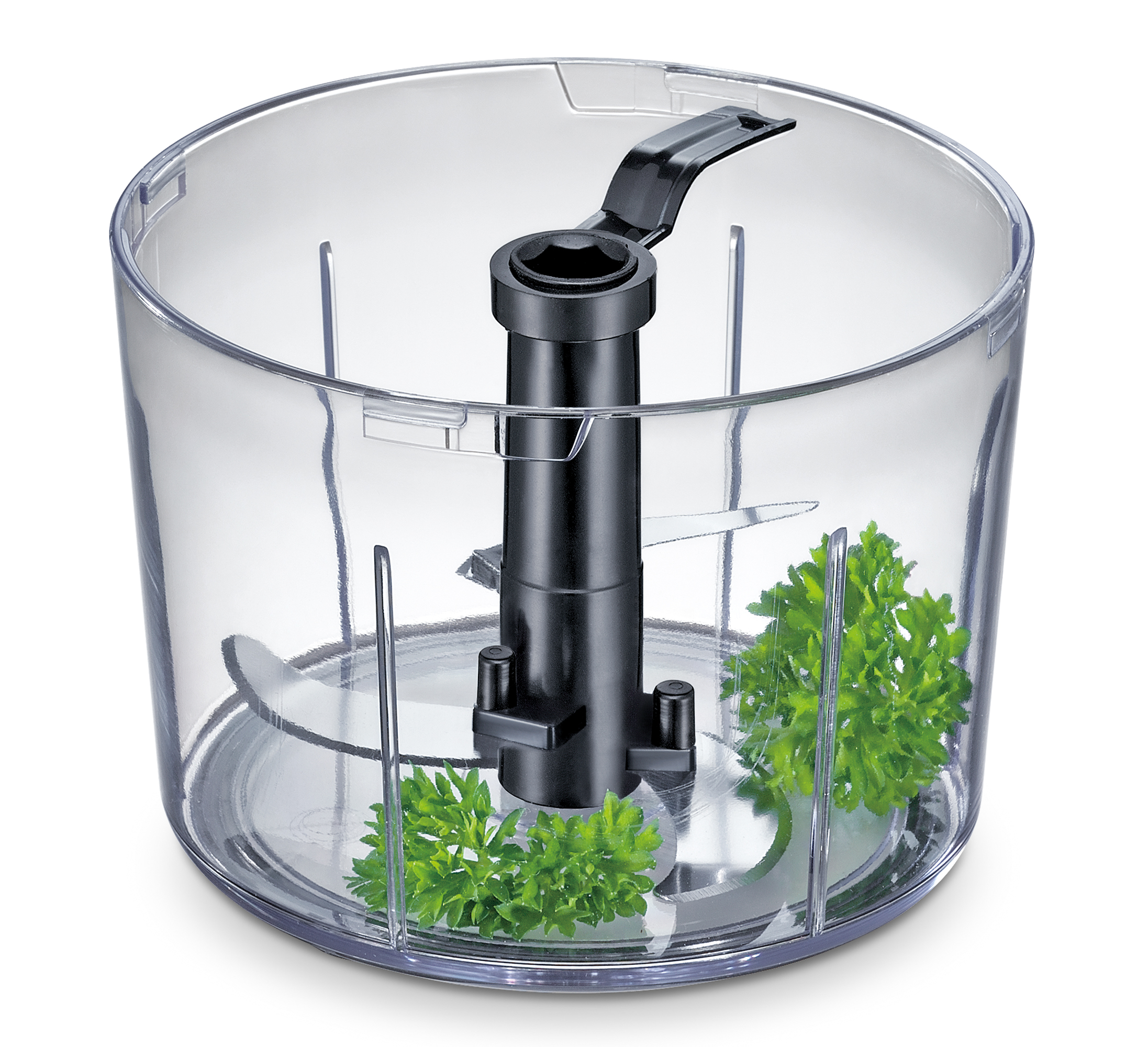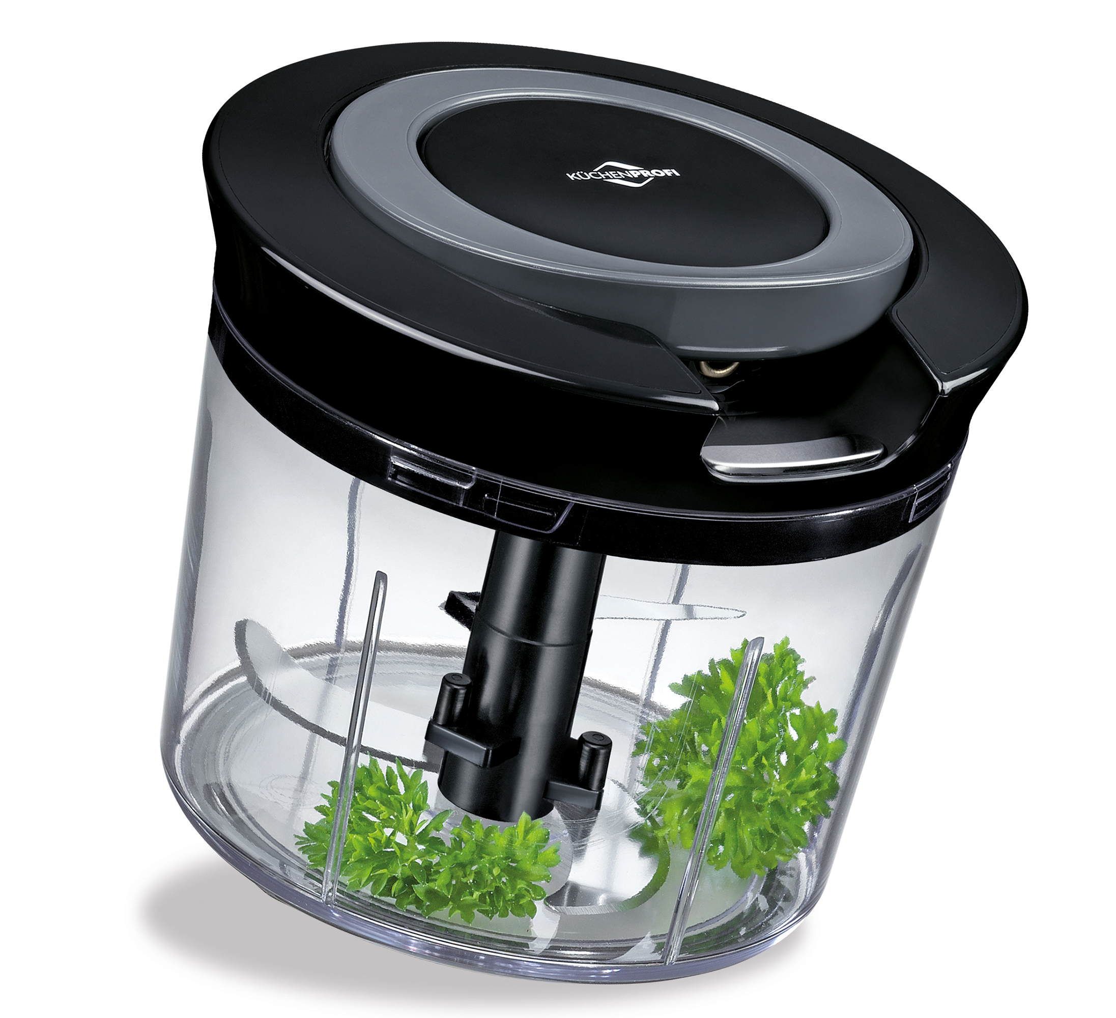 Der Multischneider TURBO von KÜCHENPROFI gibt Gas! Er schneidet Obst, Gemüse, Zwiebeln, frische Kräuter und Gewürze im Nu. Auch mit gegartem Fleisch oder Fisch, Käse und Nüssen kommen die scharfen Klingen bestens klar. Der mitgelieferte Rühreinsatz ist perfekt zum Mischen von Saucen und Suppen, Dressings, Dips oder Desserts. Die Handhabung ist dank der Seilzug-Technik denkbar einfach. Damit Sie lange Freude an dem Multischneider haben, empfehlen wir die schonende Reinigung per Hand mit warmem Wasser und etwas Spülmittel.