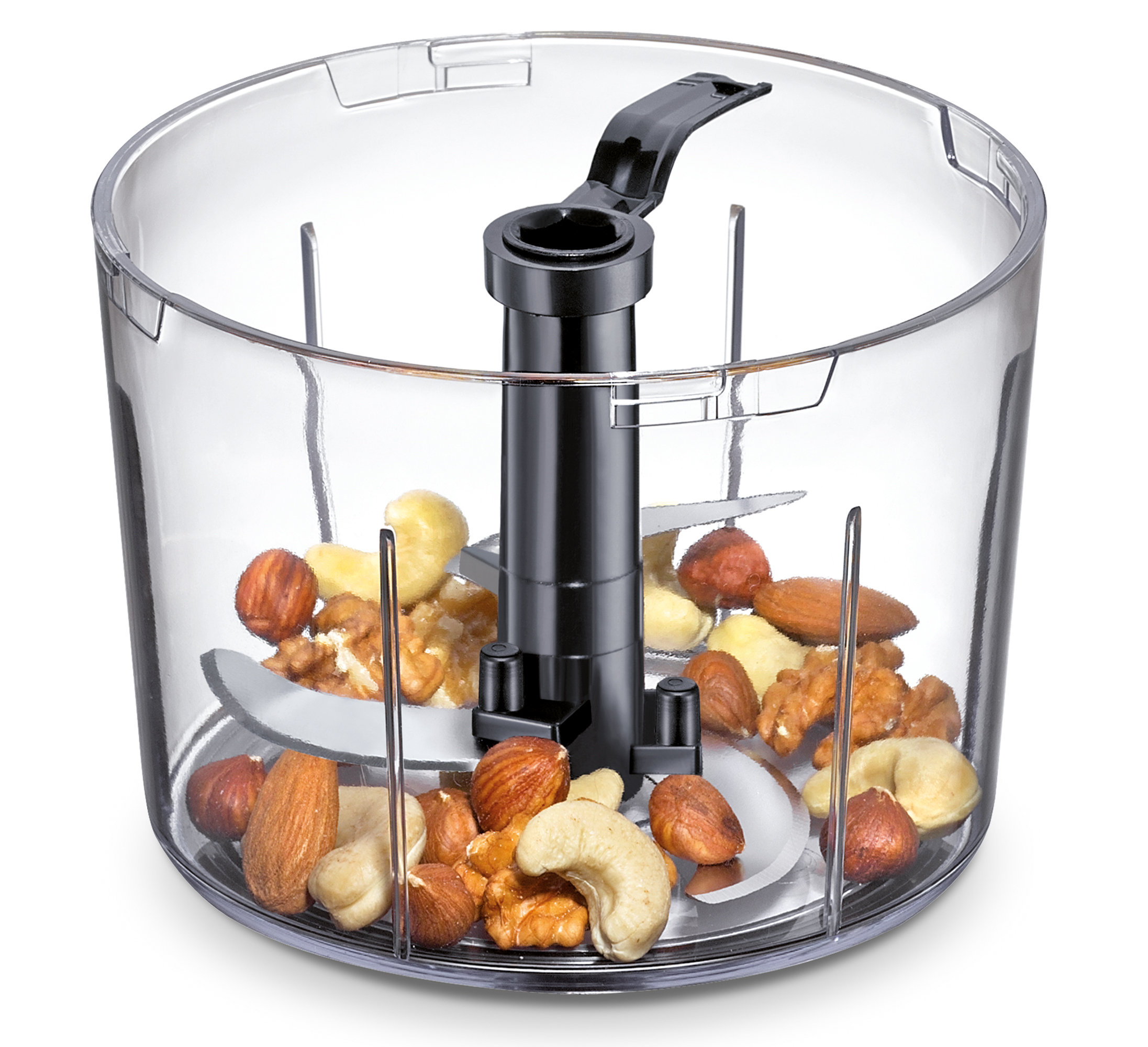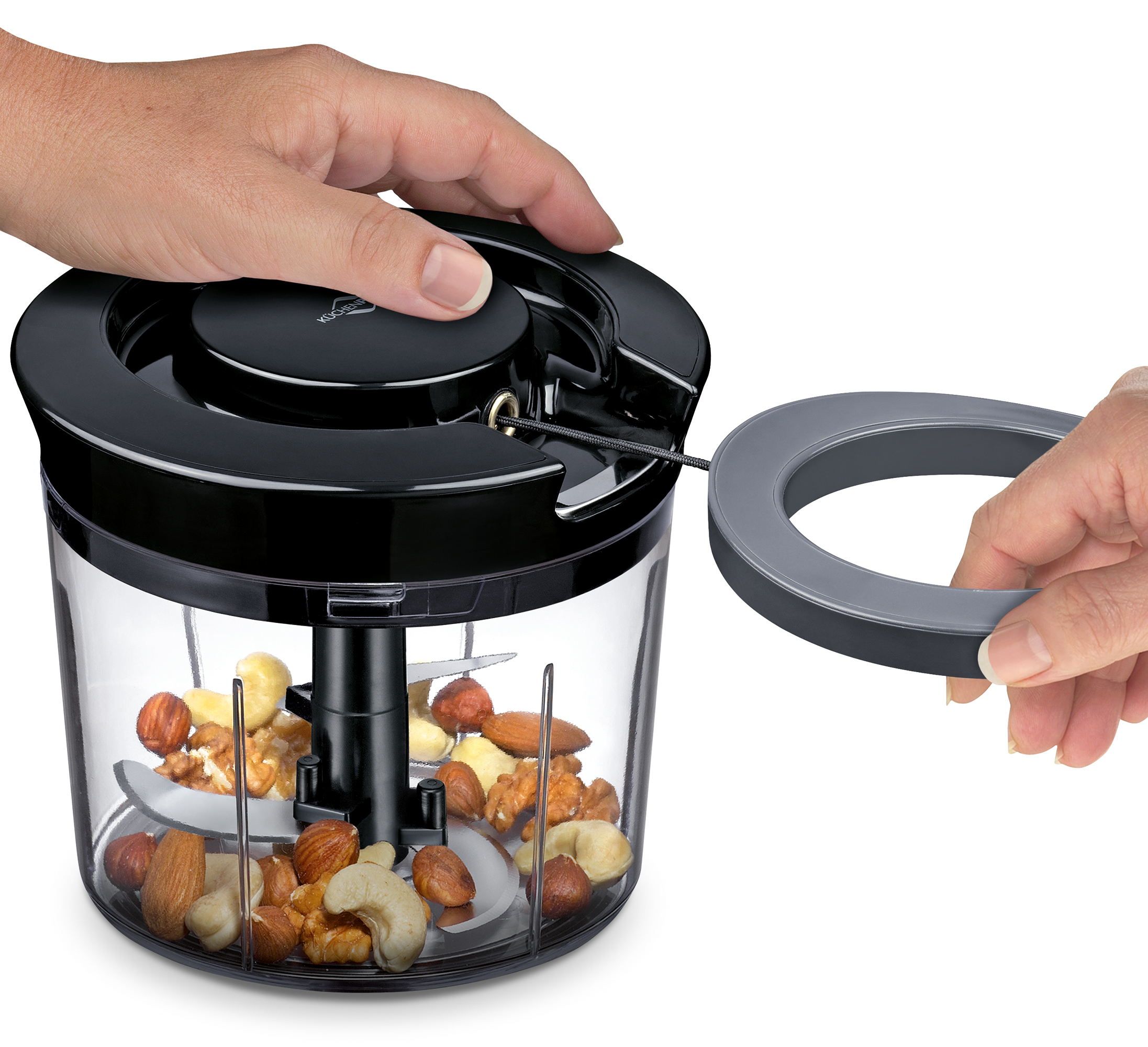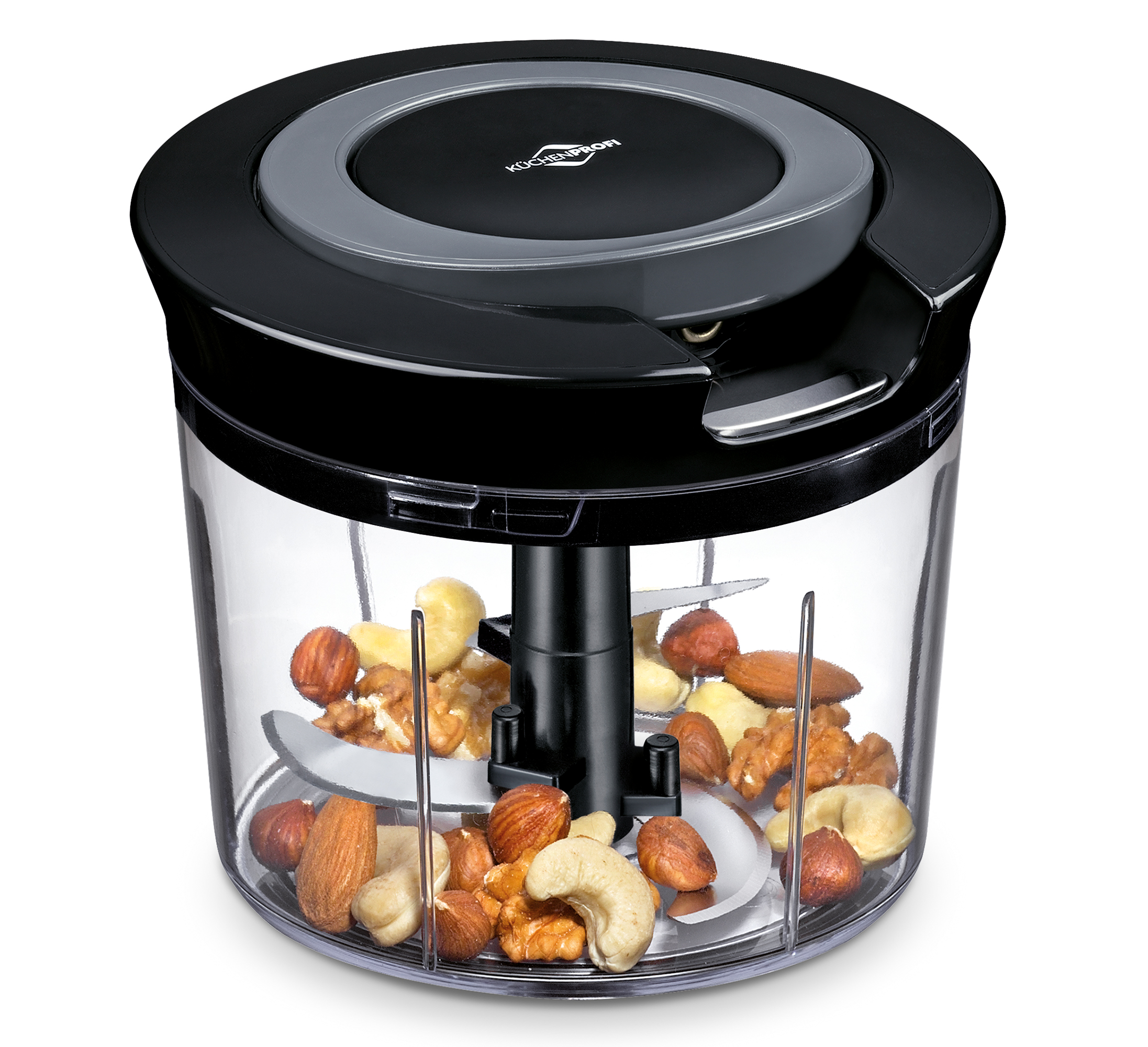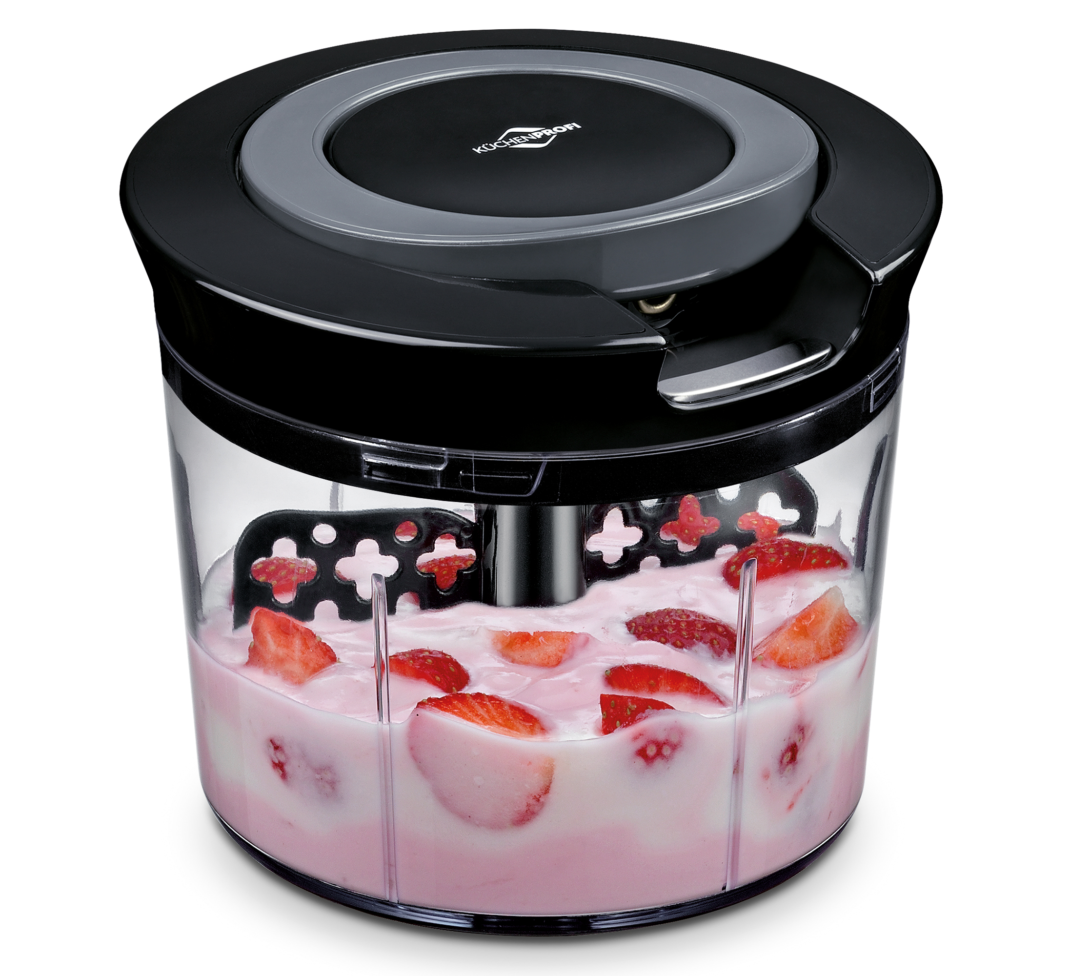 Der Multischneider TURBO von KÜCHENPROFI gibt Gas! Er schneidet Obst, Gemüse, Zwiebeln, frische Kräuter und Gewürze im Nu. Auch mit gegartem Fleisch oder Fisch, Käse und Nüssen kommen die scharfen Klingen bestens klar. Der mitgelieferte Rühreinsatz ist perfekt zum Mischen von Saucen und Suppen, Dressings, Dips oder Desserts. Die Handhabung ist dank der Seilzug-Technik denkbar einfach. Damit Sie lange Freude an dem Multischneider haben, empfehlen wir die schonende Reinigung per Hand mit warmem Wasser und etwas Spülmittel.