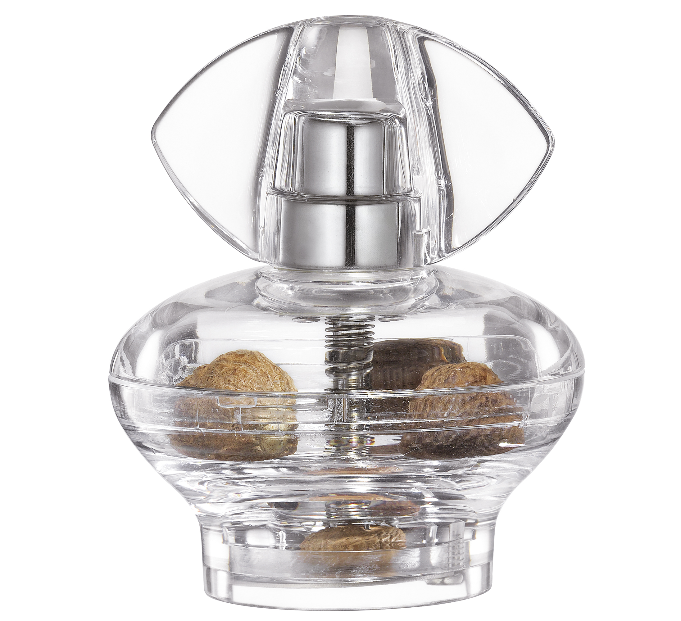 Dieser Duft! Muskatnüsse stecken voller Aroma und Geschmack. Beides entfaltet sich am besten, wenn sie frisch gemahlen werden. Die Muskatmühle VICENZA von cilio übernimmt diese Aufgabe. Dabei brilliert sie nicht nur mit bester Funktionalität, sondern auch mit ihrem modernen Design. Wie ein edler Parfum-Flakon sieht die Mühle aus hochwertigem Kunststoff aus. In dem praktischen Aufbewahrungsfach warten die Muskatnüsse auf ihren großen Auftritt. Die Reibscheibe aus Edelstahl mahlt schnell und sicher bis zum letzten Rest – Ihre Hände bleiben außen vor. Und das Dosieren des intensiven Gewürzes ist ein Kinderspiel.