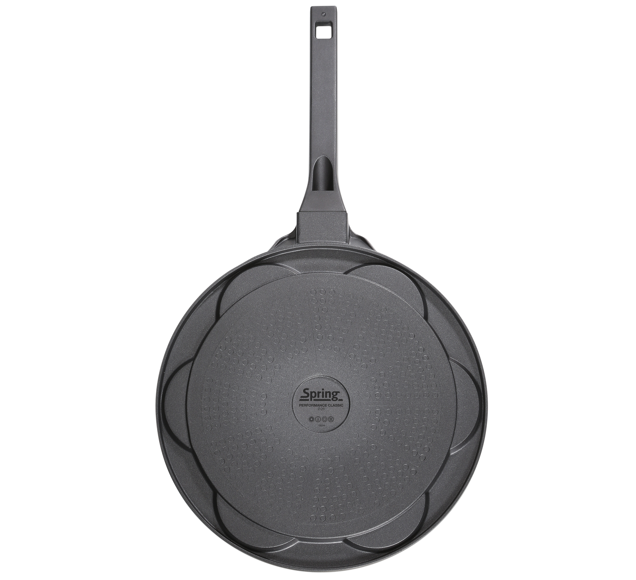Goldgelbe Pancakes sind die Stars beim Sonntagsfrühstück und auf dem Brunchbuffet. Die Pancake-Pfanne PERFORMANCE CLASSIC von SPRING steht bereit. Der Vollflächen-Induktionsboden heizt sich schnell und energiesparend auf, der Pfannenkörper aus Aluminium leitet die Hitze optimal bis in den letzten Winkel. In den sieben passgenauen Vertiefungen gelingen Pancakes, Spiegeleier oder andere Eierspeisen perfekt. Dank der Antihaftbeschichtung gleiten die Speisen mühelos auf den Teller. An dem ergonomisch geformten Kunststoffgriff mit Wärmeisolierung tragen Sie die Pfanne wieder zum Herd und bereiten Nachschub für Ihre begeisterten Gäste zu.