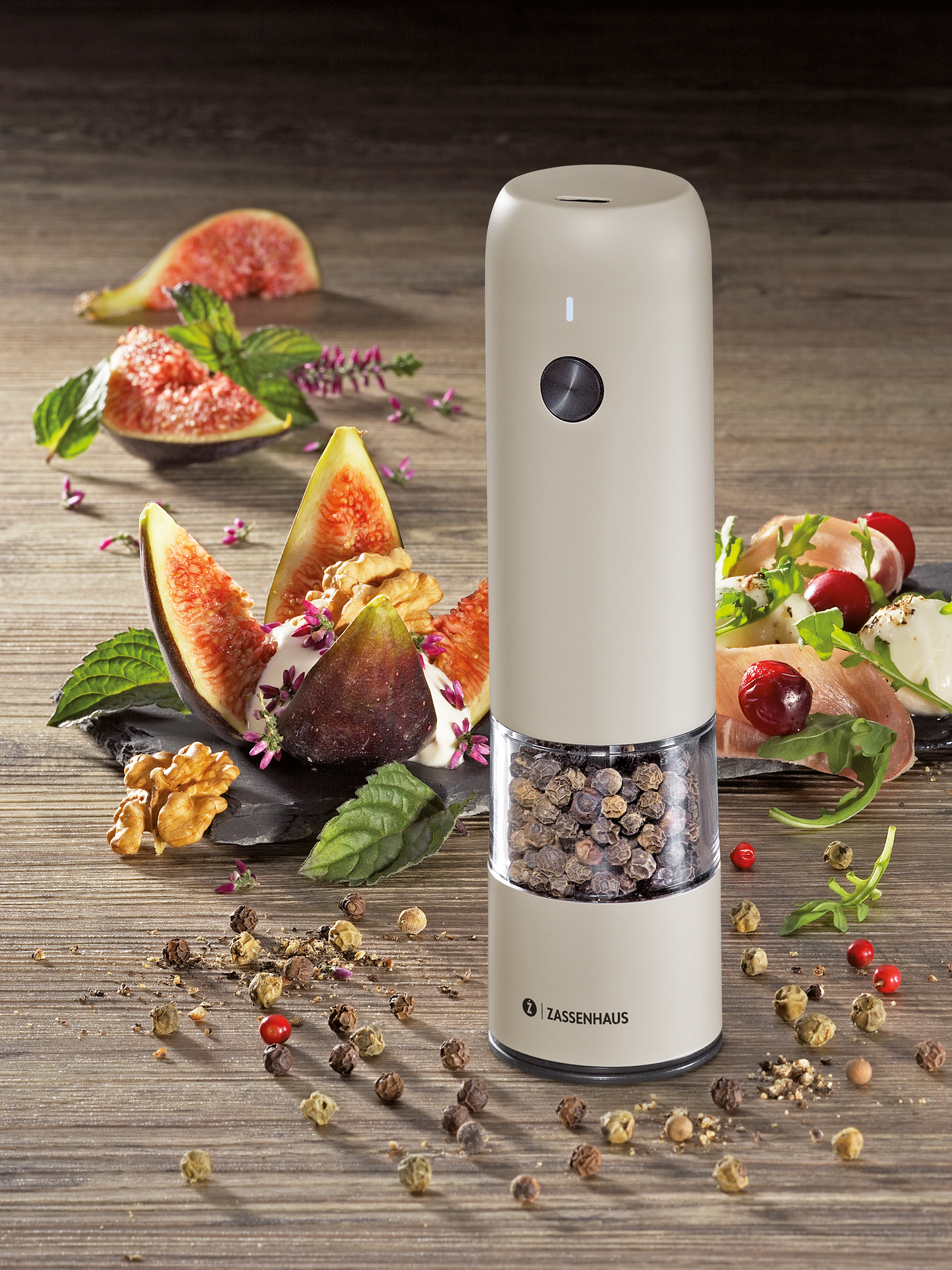 Camping erhalten Sie mit der kompakten, elektrischen Pfeffermühle KÖLN exakt