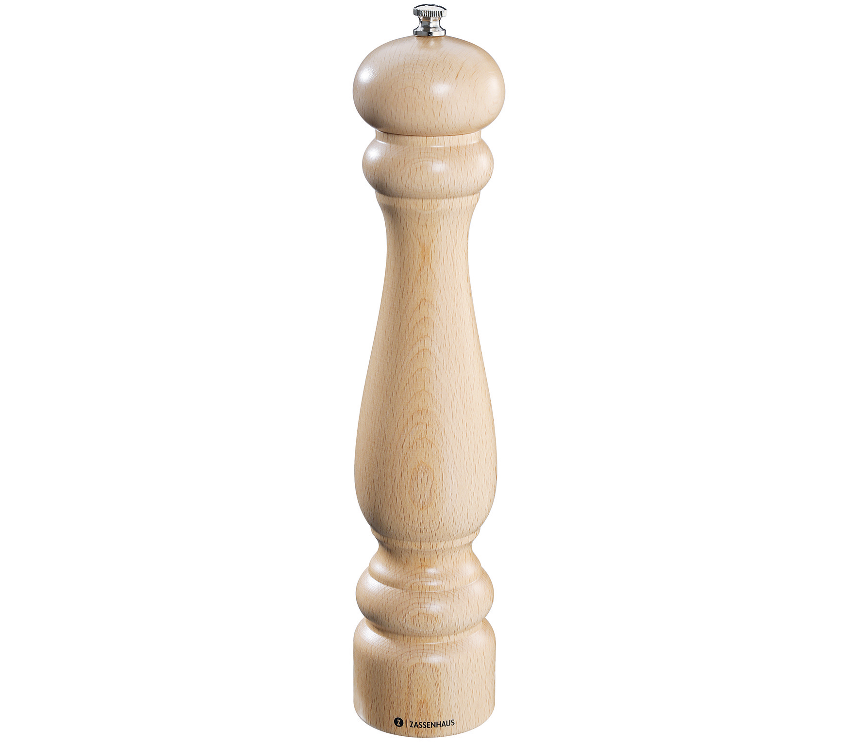 Die Mühlen der Serie POTSDAM von ZASSENHAUS sind ein echter Hingucker. Mit dem runden Knauf, dem gedrechselten Sockel und der taillierten Form erinnert besonders die 40 cm Varianten an die XXL-Modelle in italienischen Trattorien. Das Keramik-Mahlwerk hingegen ist Made in Germany. Es wird bei 1.700 °C gebrannt, ist immun gegen Korrosion und Verschleiß und härter als Stahl. Schwarzer, bunter oder weißer Pfeffer wird präzise gemahlen. Und zwar in sechs Einstellungen – von pulverfein (1) bis grob gemörsert (6). Den Mahlgrad stellen Sie auf der Skala am Mühlenboden ein, es sind übrigens auch Zwischenstufen möglich. Ihre Einstellung bleibt in jedem Fall exakt erhalten, auch wenn Sie die Mühle befüllen.