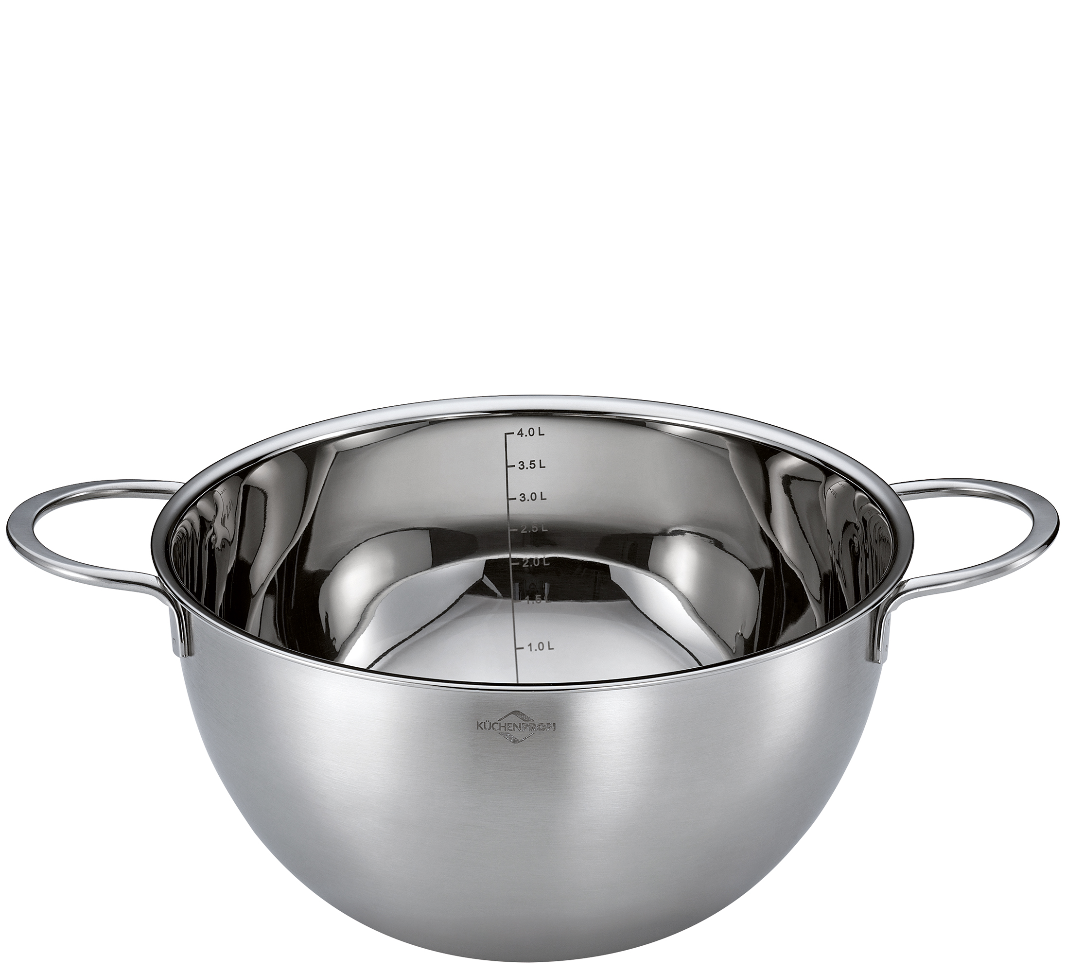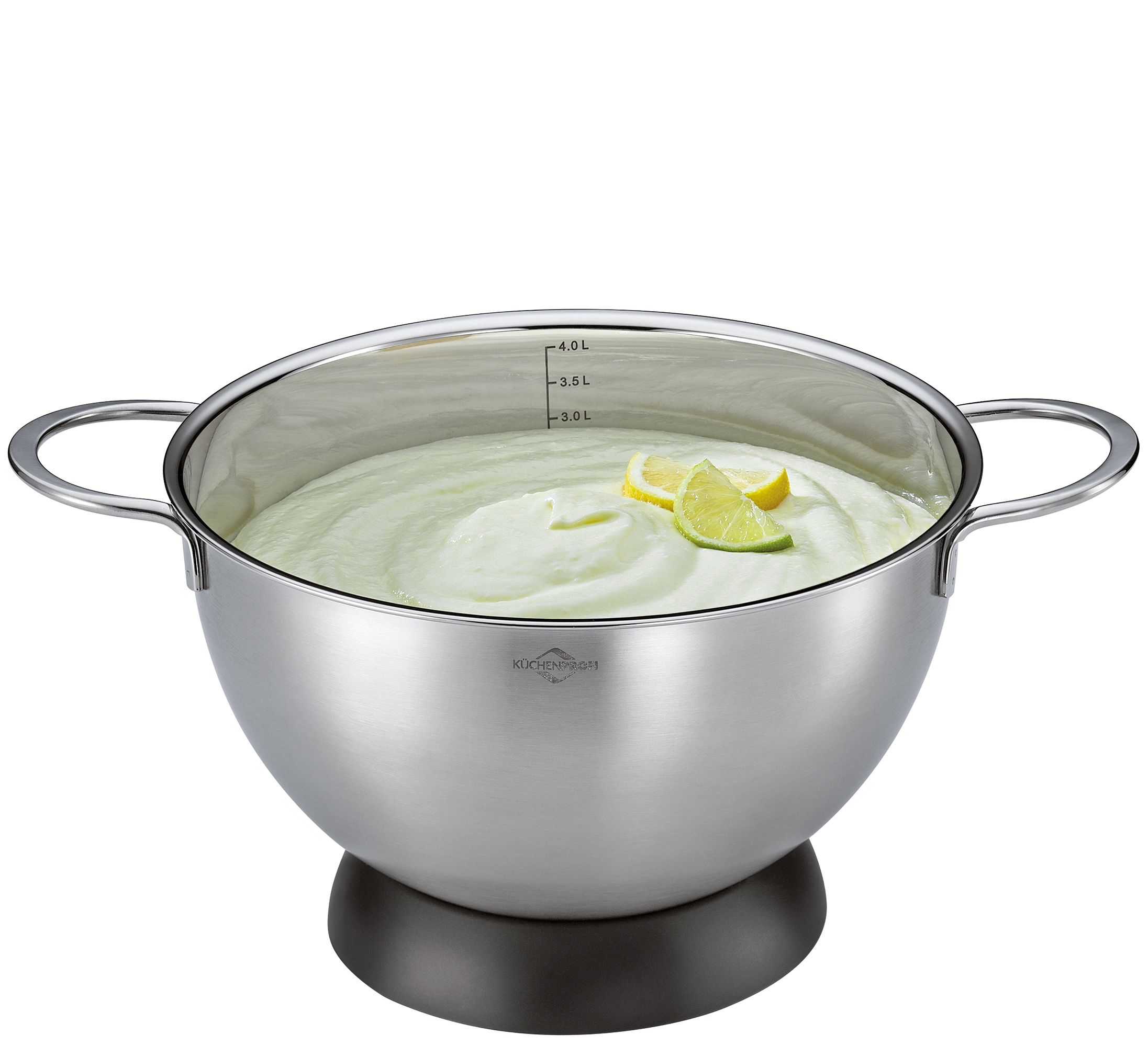 Ob Brotteig, feiner Rührteig oder luftiger Eischnee – die Rührschüssel mit Standring DELUXE von KÜCHENPROFI begleitet Sie zuverlässig bei allen Vorbereitungen in der Küche. Mit ihren 4 Litern Fassungsvermögen bietet die Edelstahl-Schüssel ausreichend Volumen zum Aufschlagen von Sahne, zum Vermengen frischer Salate oder zum Anrühren größerer Teigmengen. Die integrierte Innenskala ermöglicht es, die Zutaten direkt in der Schüssel präzise abzumessen. Der rutschfeste Standring sorgt für Stabilität auf der Arbeitsfläche und ermöglicht ein entspanntes, kontrolliertes Arbeiten. Die seitlichen Griffe erleichtern das Handling und Transportieren der Schüssel. Auch im Wasserbad ist sie vielseitig einsetzbar, etwa zum schonenden Schmelzen von Schokolade oder für die klassische Zubereitung von Desserts wie Zabaione. Nach dem Gebrauch lässt sich die Schüssel bequem in der Spülmaschine reinigen.