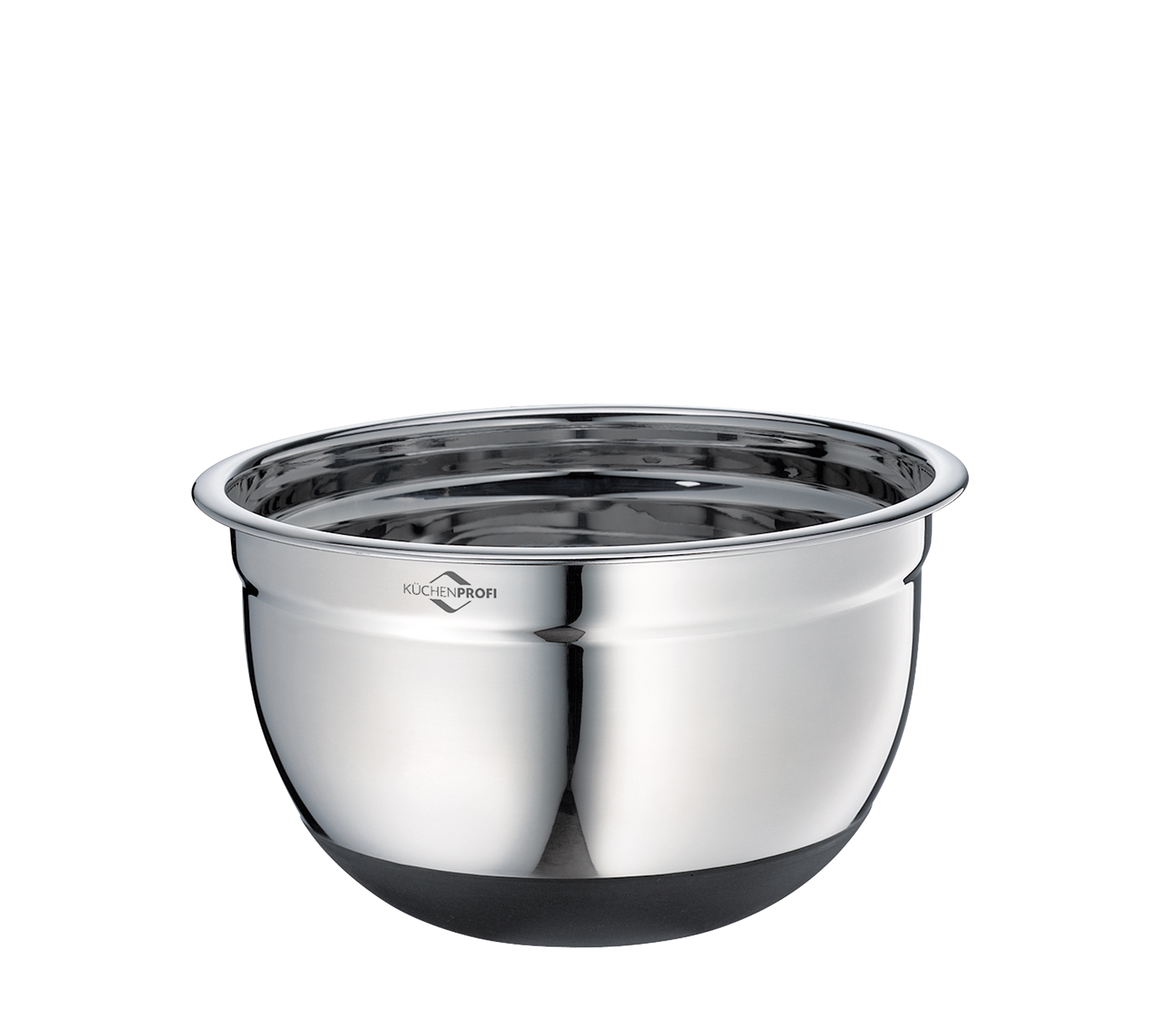 Echt rührig! Die Rührschüssel von KÜCHENPROFI kommt häufig zum Einsatz, zum Beispiel bei der Zubereitung von Kuchen und Desserts, beim Vermischen von Gehacktem mit Ei, Brot und Gewürzen für Frikadellen, wenn Sie Fleisch, Fisch oder Tofu für den Wok marinieren. Die Schüssel ist aus robustem Edelstahl gefertigt, hat ein gutes Gewicht und steht auf einem rutschfesten Silikonboden. So hat sie sichere Bodenhaftung, auch wenn der Mixer auf höchster Stufe rotiert. Der rostfreie Edelstahl nimmt keine Gerüche an und verfärbt sich nicht. Wenn Sie Sahne schlagen oder eine Creme zaubern, können Sie die Schüssel vorher kurz ins Eisfach legen. Pizza- oder Flammkuchenteig wird besonders fluffig, wenn Sie ihn in der Schüssel bei 50 °C in den Backofen stellen und gehen lassen. Das praktische Küchen-Basic ist in verschiedenen Größen erhältlich.