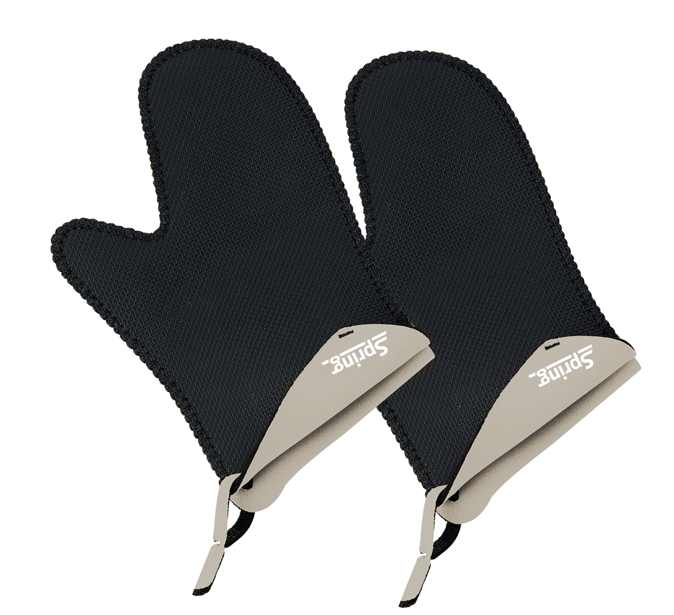 Der Auflauf duftet, die Käsekruste ist goldgelb – höchste Zeit, die Form aus dem Backofen zu nehmen. Die Küchenhandschuhe SPRING GRIPS schützen Ihre Hände vor heißen Auflauf- und Kuchenformen, Backblechen oder Ofenrosten. Das thermoresistente Hightech-Material hält Temperaturen bis 250 °C stand und ist fleckabweisend und rutschsicher. Die Handschuhe fühlen sich angenehm weich an, die strukturierte Oberfläche ist besonders griffig.
