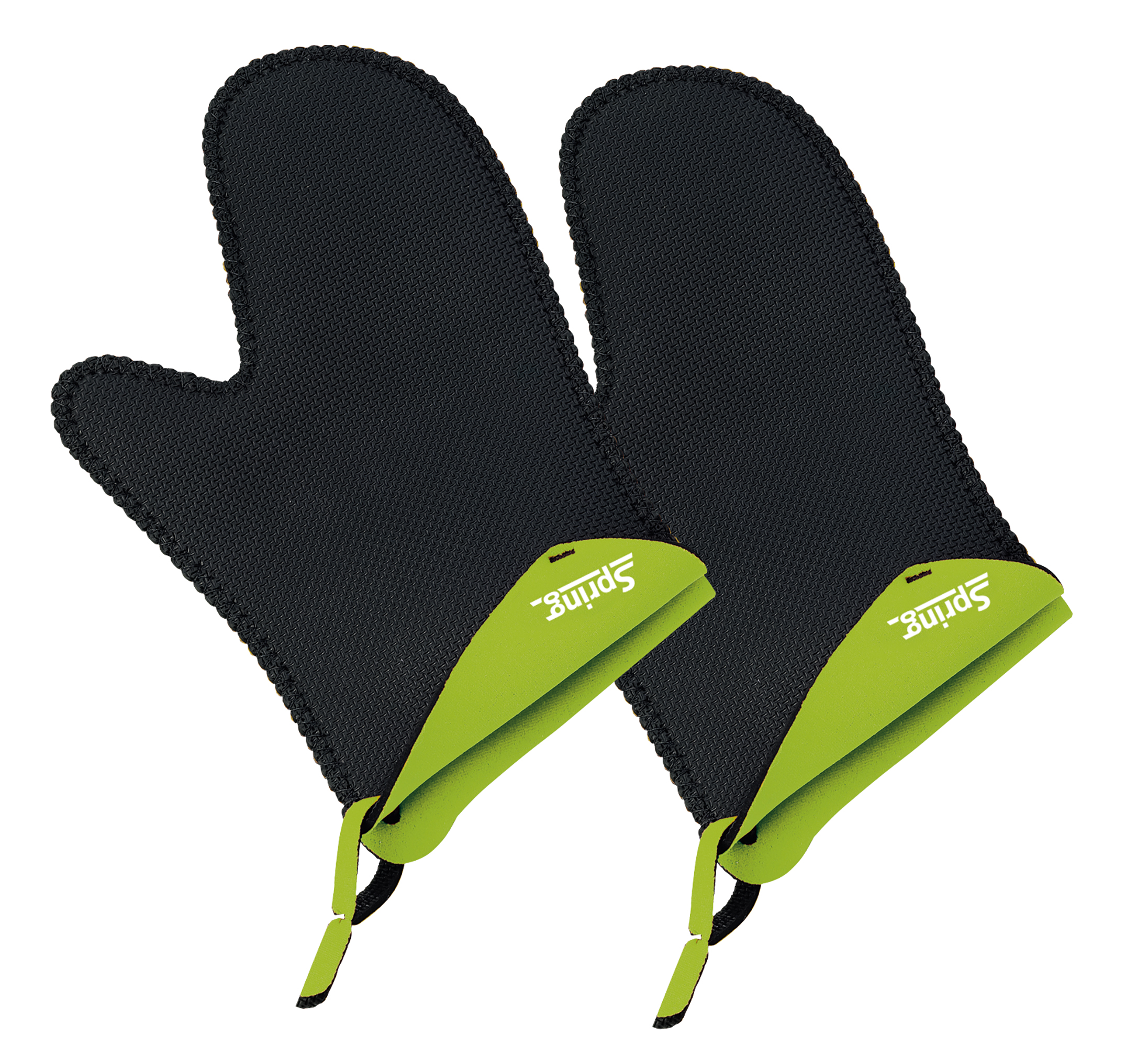 Der Auflauf duftet, die Käsekruste ist goldgelb – höchste Zeit, die Form aus dem Backofen zu nehmen. Die Küchenhandschuhe SPRING GRIPS schützen Ihre Hände vor heißen Auflauf- und Kuchenformen, Backblechen oder Ofenrosten. Das thermoresistente Hightech-Material hält Temperaturen bis 250 °C stand und ist fleckabweisend und rutschsicher. Die Handschuhe fühlen sich angenehm weich an, die strukturierte Oberfläche ist besonders griffig.