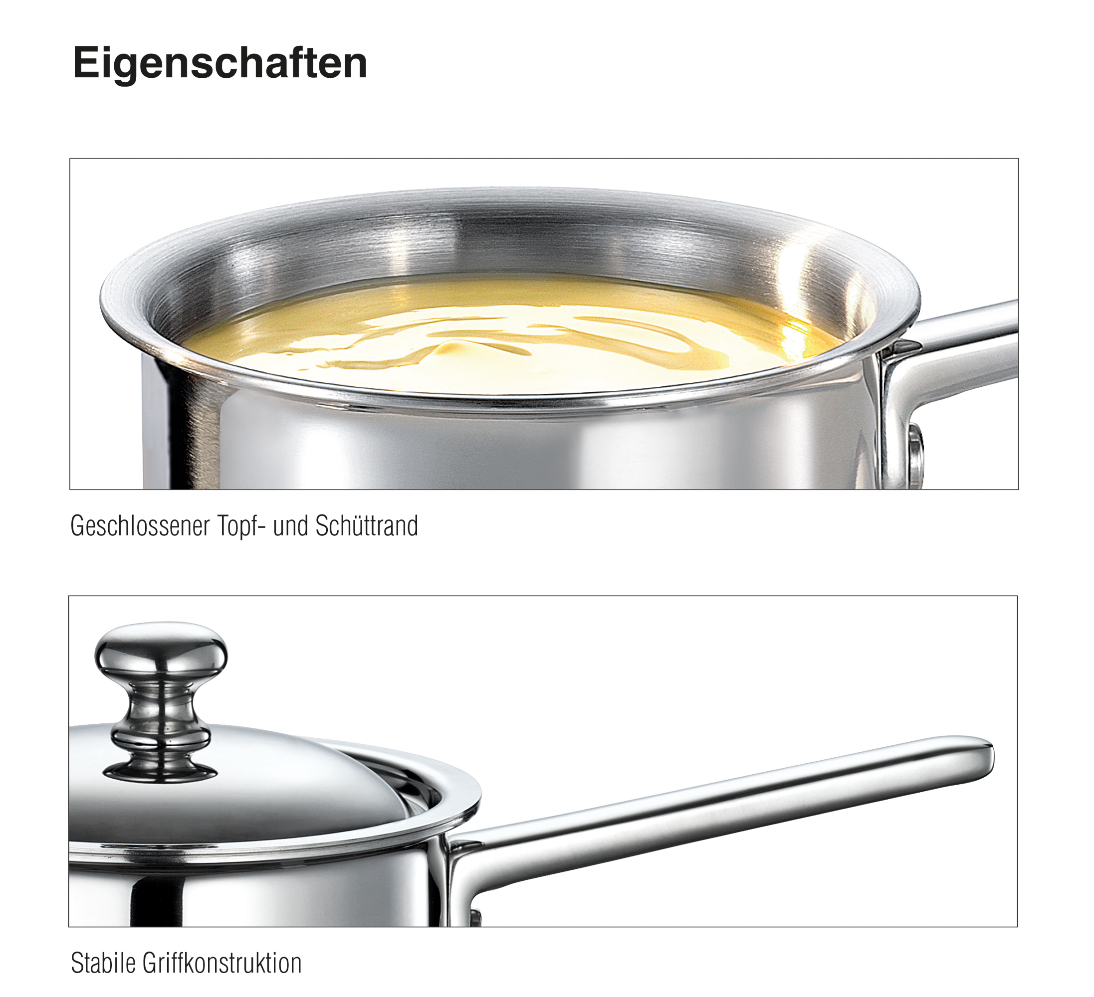 induktionstauglichem Edelstahl 18/0, innen Edelstahlschicht 18/10 und