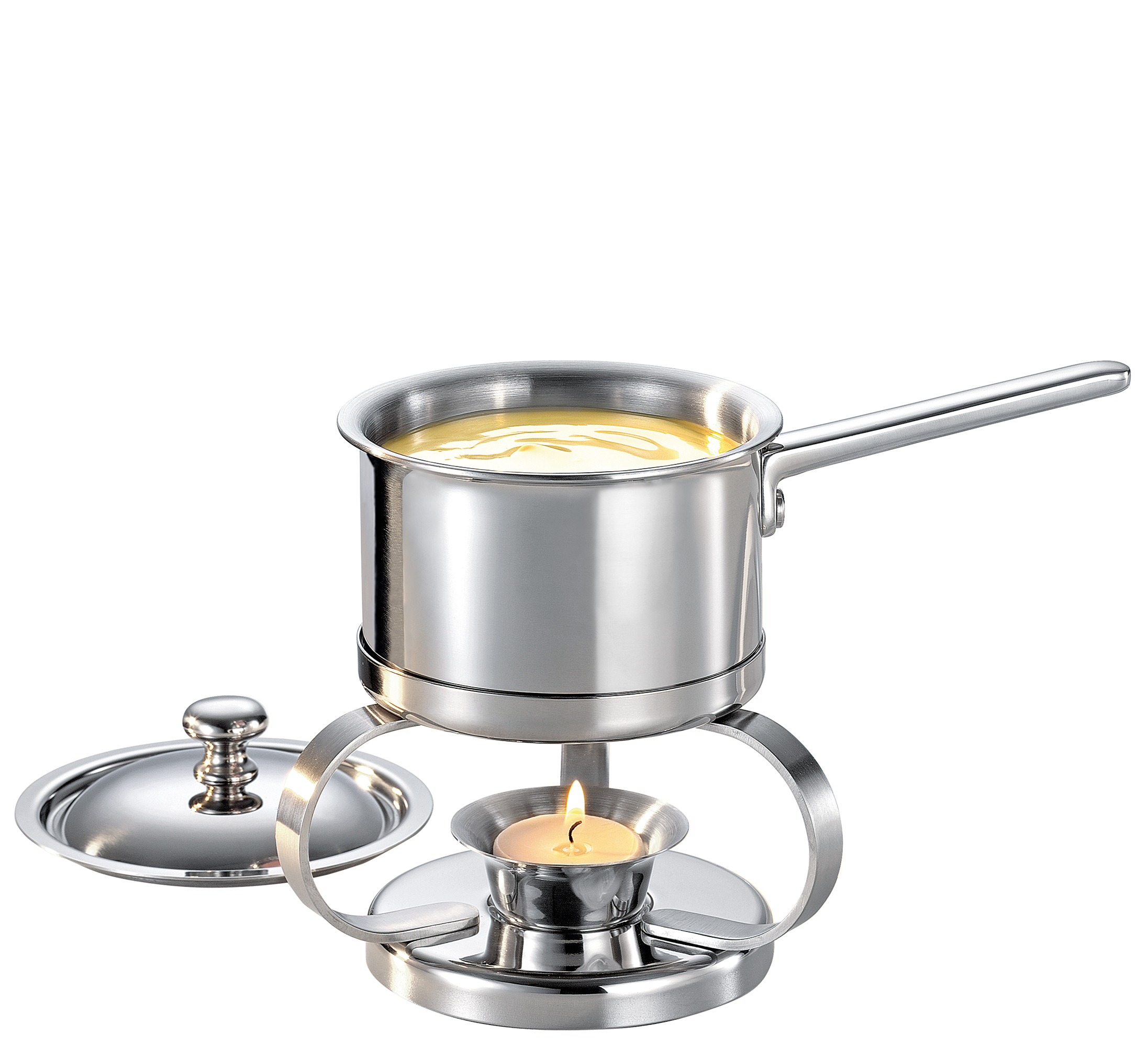 Bei duftender Vanillesauce schlagen nicht nur Kinderherzen höher! Mit der Saucenwärmer-Garnitur von SPRING genießen Sie warme Saucen direkt am Tisch und machen jede Mahlzeit zu einem besonderen Erlebnis. Sei es die klassische Sauce Hollandaise zum frischen Spargel, eine würzige Senfsauce zum Fisch oder süße Verführungen wie rote Grütze und selbstgemachte Karamellsauce. Mit diesem hochwertigen Set bleibt jede Sauce zuverlässig warm und geschmackvoll. Das bewährte 5-Lagen-Material mit der Kombination aus Edelstahl und einem dreifachen Aluminiumkern sorgt für eine gleichmäßige Wärmeverteilung. So bleibt Ihre Sauce perfekt temperiert und genussbereit. Der elegante Topf aus hochglanzpoliertem Edelstahl setzt einen stilvollen Akzent und überzeugt sowohl funktional als auch optisch. Die Serie Cristal eignet sich für alle Herdarten, einschließlich Induktion.