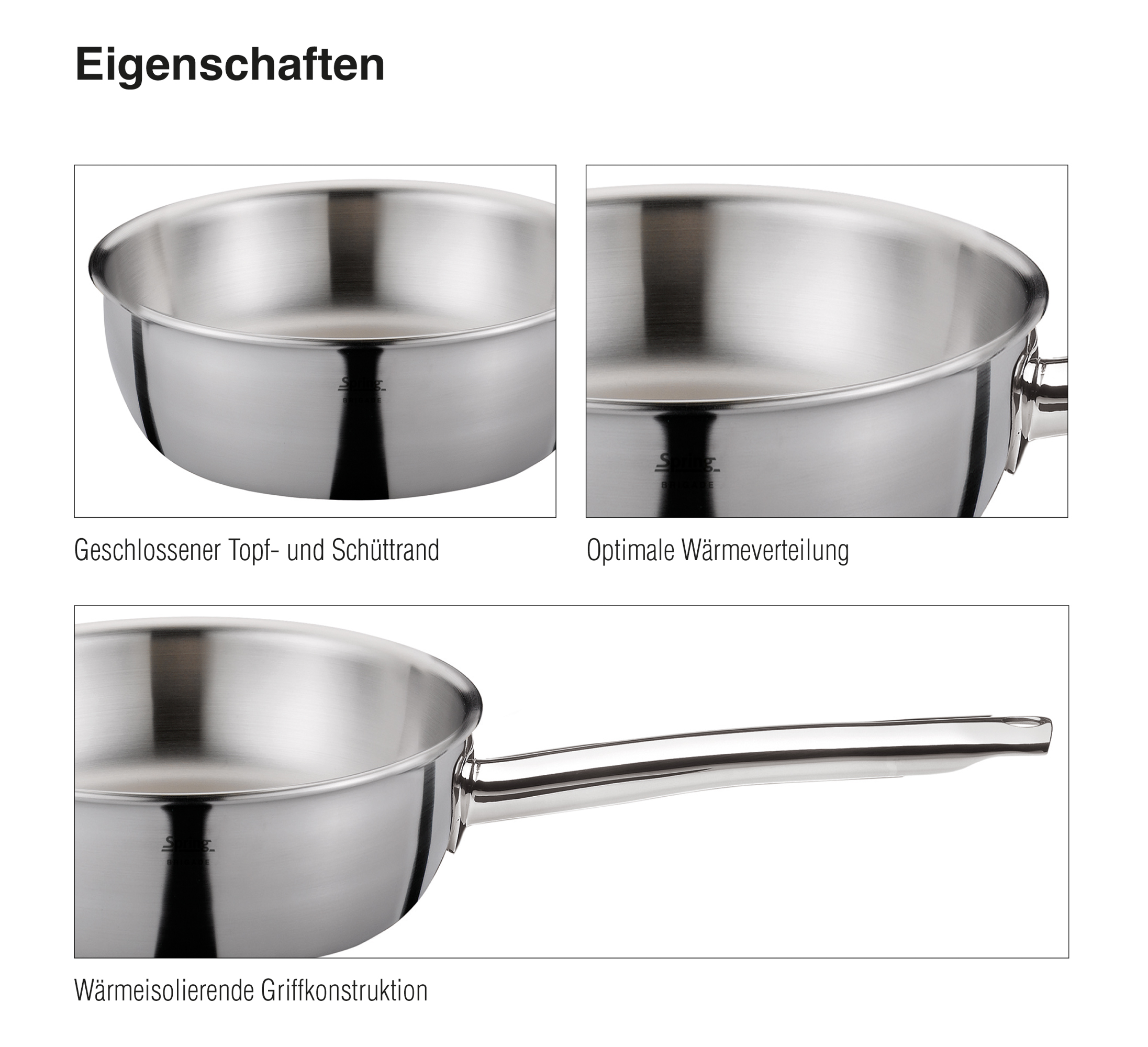 Das Multitalent für Profis und Hobbyköche: die Sauteuse der Kochgeschirrlinie BRIGADE PREMIUM von SPRING. Ihr 5-Lagen-Mehrschichtmaterial leitet die Hitze schnell und gleichmäßig vom Boden bis zum Rand. Ideal zum scharfen Anbraten, zeit- und energiesparenden Zubereiten von Fisch, Fleisch, Gemüse und Saucen. Der wasserfest verschweißte Stiel aus Edelstahl liegt gut in der Hand und ist bequem, wenn Sie Ihr Gargut in Butter schwenken. Mit ihrem hohen Rand ist die Sauteuse perfekt zum Zubereiten, Anschlagen und Reduzieren von Saucen. Dank der konischen Form kommen Sie mit Ihrem Schneebesen oder Kochlöffel bis in den letzten Winkel, nichts brennt an. Der abgerundete Schüttrand ermöglicht ein kleckerfreies Ausgießen. Weiteres Plus: Die Sauteuse aus hochwertigem Edelstahl ist spülmaschinen- und backofenfest.