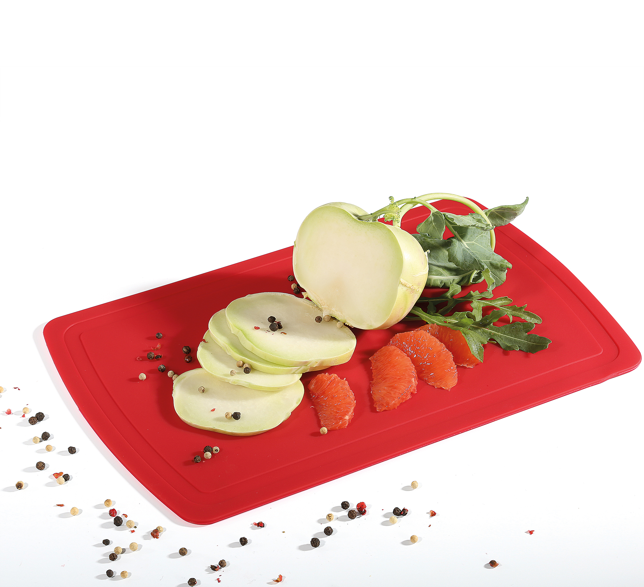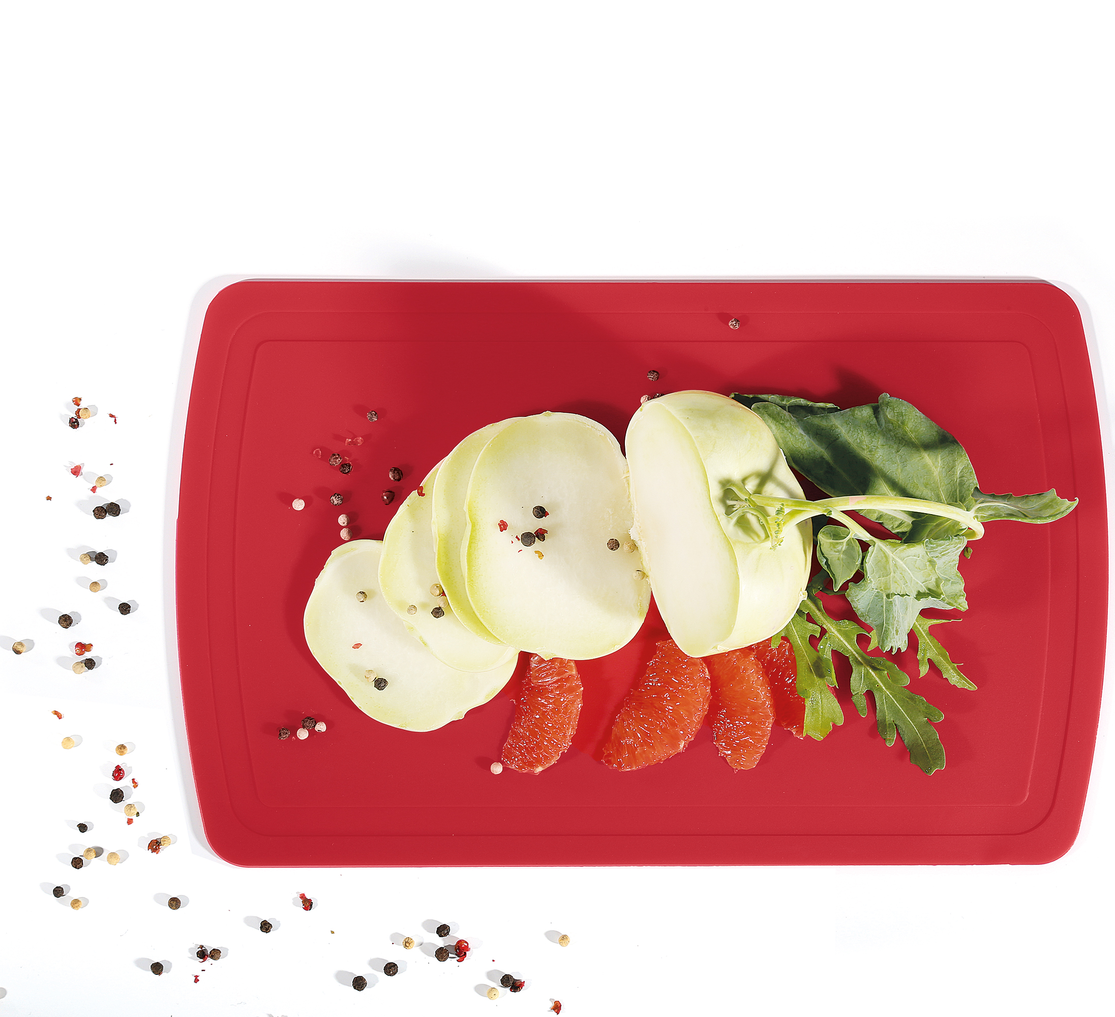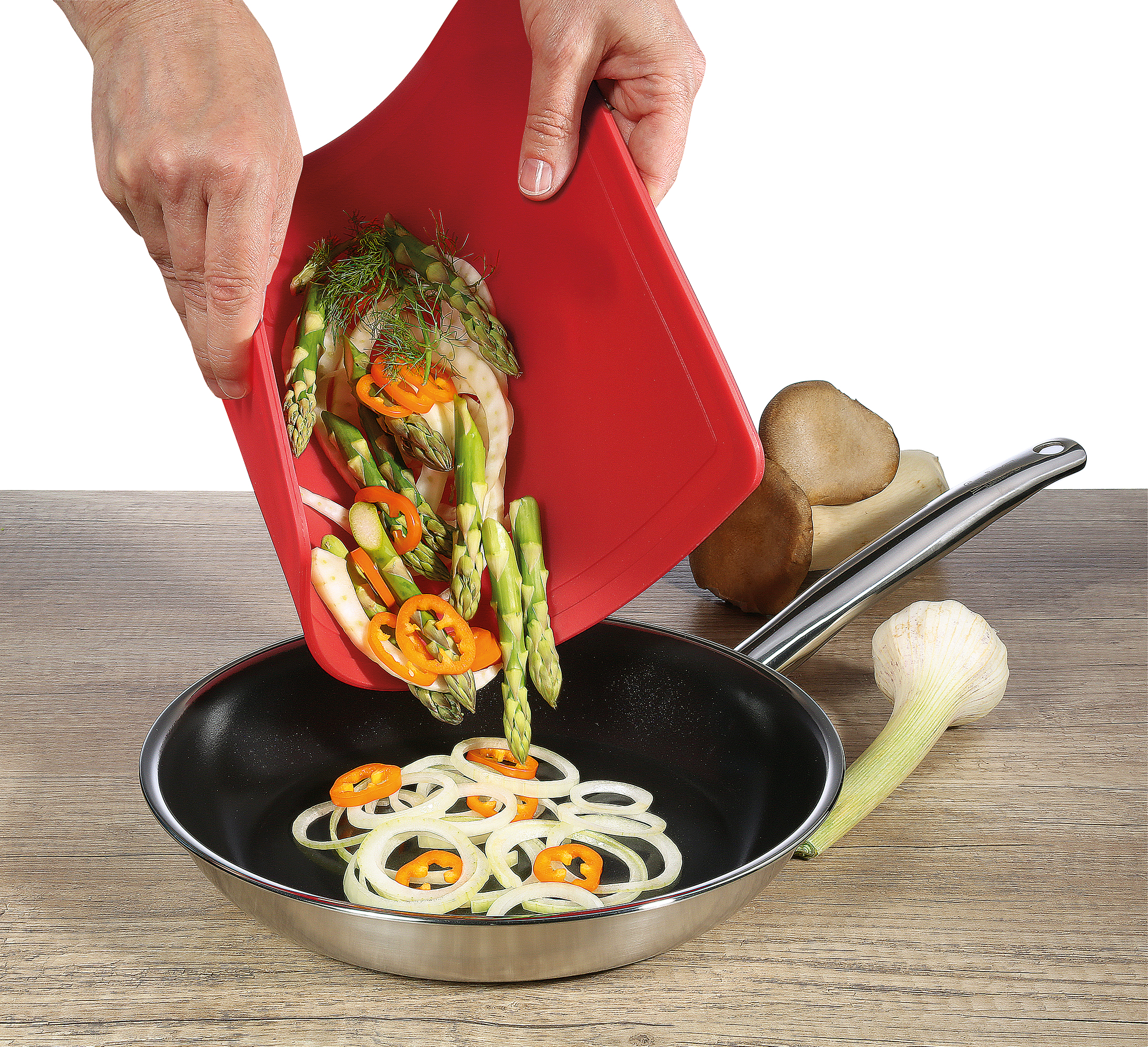 Ihr Pluspunkt ist das Material. Die Schneidunterlage PREMIUM LINE von ZASSENHAUS ist aus einem Premiumkunststoff (TPU) gefertigt. Er ist schnittfest und messerschonend – ideal, wenn Sie die Zutaten für den Salat oder Wok schneiden. Die Unterlage ist zudem flexibel, Sie können die Ränder biegen und das Gemüse zielgerichtet in Pfanne oder Schüssel befördern. Danach geht sie schnell wieder in ihre ursprüngliche Form zurück. Der moderne Küchenhelfer darf in die Spülmaschine und lässt sich innerhalb von 30 Sekunden in kochendem Wasser sterilisieren. Die langlebige Schneidunterlage verträgt Temperaturen von -20 °C bis 150 °C.