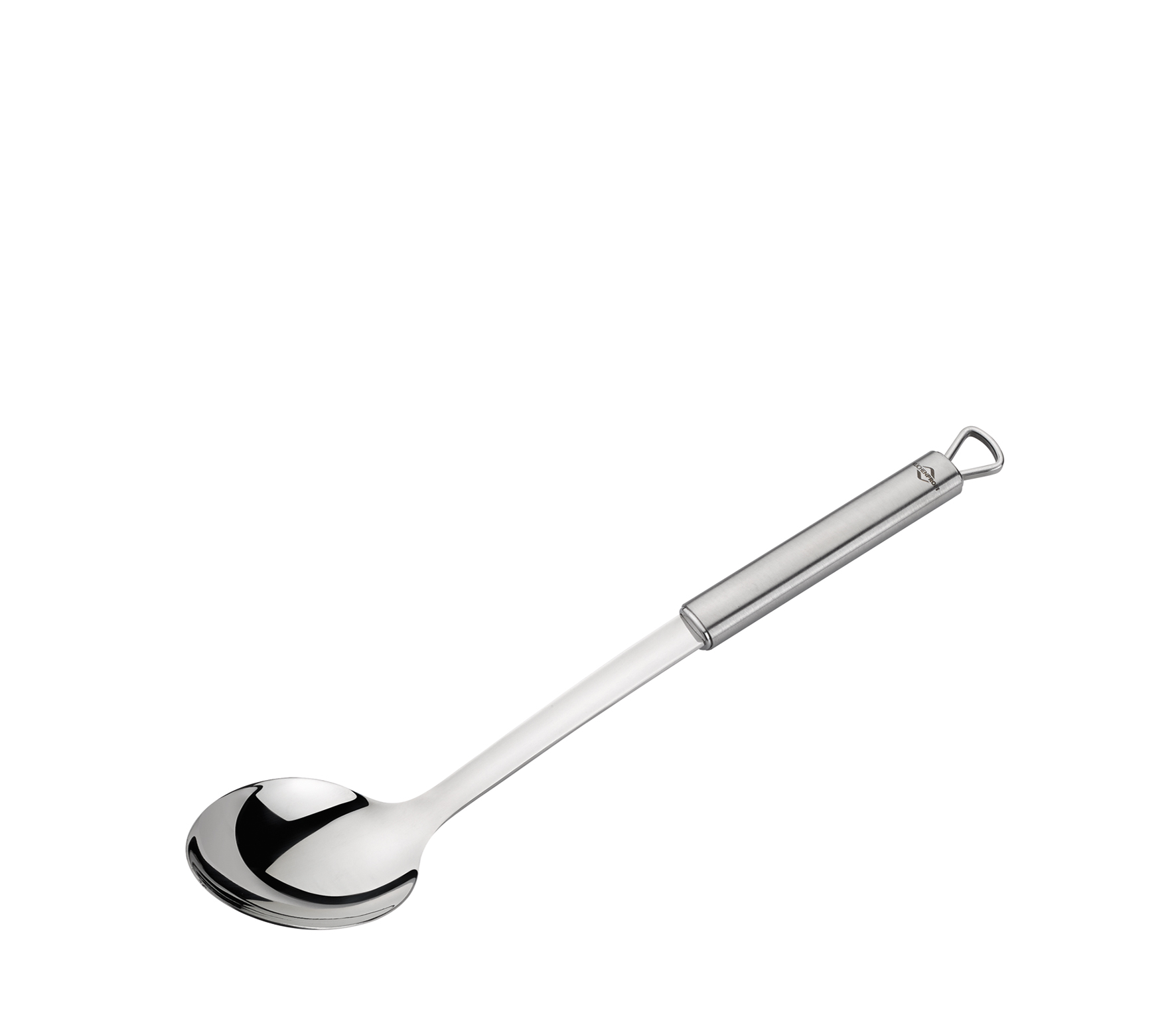 Trifft den Geschmack anspruchsvoller Köche. Die Serie PARMA von KÜCHENPROFI verbindet Funktion und Design perfekt. Die Basics für den täglichen Einsatz an Herd und Backofen sind aus robustem Edelstahl gefertigt und geeignet für die Spülmaschine. Ihre Griffe liegen gut in der Hand, das schlanke Design macht sie zum Hingucker an der Küchenleiste. Dort haben Sie von der Vorspeise bis zum Dessert für jede Gelegenheit den passenden Helfer am Start. Der elegante Servierlöffel kann sich auf jeder schön gedeckten Tafel und dem Buffet sehen lassen. So gelangen Gemüse-Beilagen, Kroketten, der Couscous-Salat oder die Mousse au Chocolat sauber auf die Teller Ihrer Gäste.