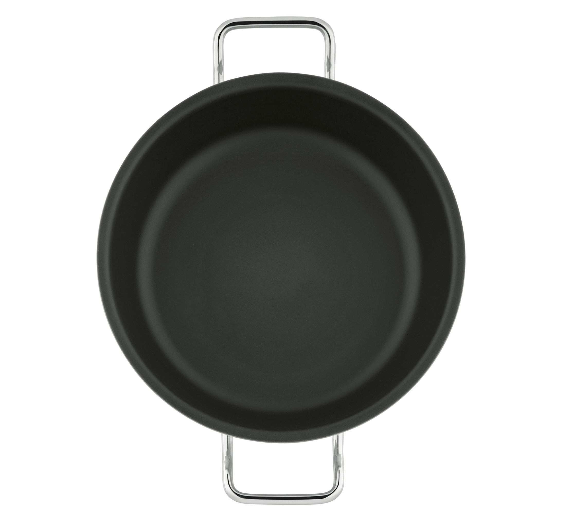 Material: 5-Lagen-Mehrschichtmaterial mit dreifachem Aluminiumkern und Außenschicht aus induktionstauglichem Edelstahl. Mit innovativer Oberfläche. Geeignet für sämtliche Herdarten inklusive Induktion.
