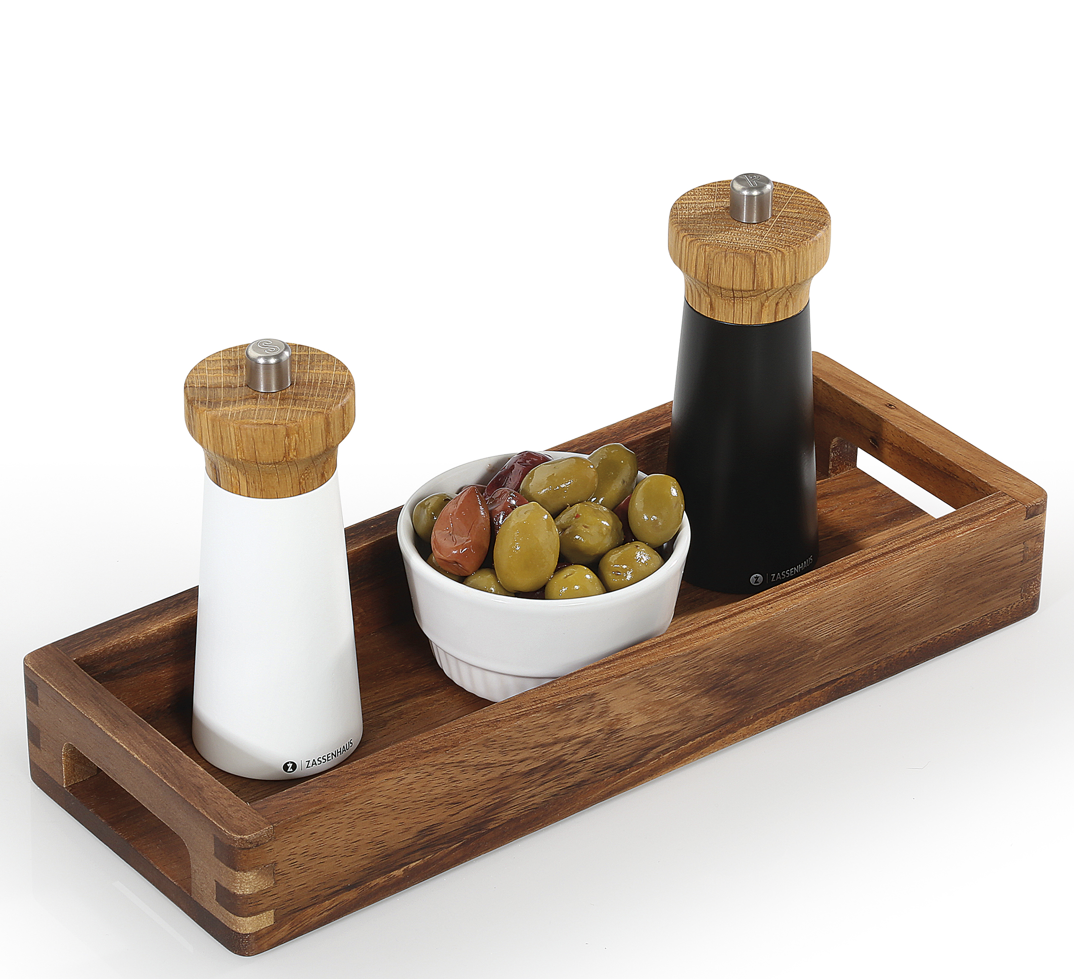 Perfekt berechnet. Auf das Serviertablett von ZASSENHAUS passen die Salz- und Pfeffermühle zum Nachwürzen oder die Crostini als Aperitivo-Begleitung. Bei der Grillparty hält der Allrounder die Saucen bereit. Das schmale Tablett nimmt auf dem Tisch kaum Platz weg, das massive Akazienholz weist Sie als Gastgeber mit Geschmack und Stil aus. Damit das Naturmaterial lange schön bleibt, einfach das Serviertablett mit einem feuchten Tuch abwischen oder kurz unter fließendem Wasser reinigen und aufrecht stehend trocknen lassen.