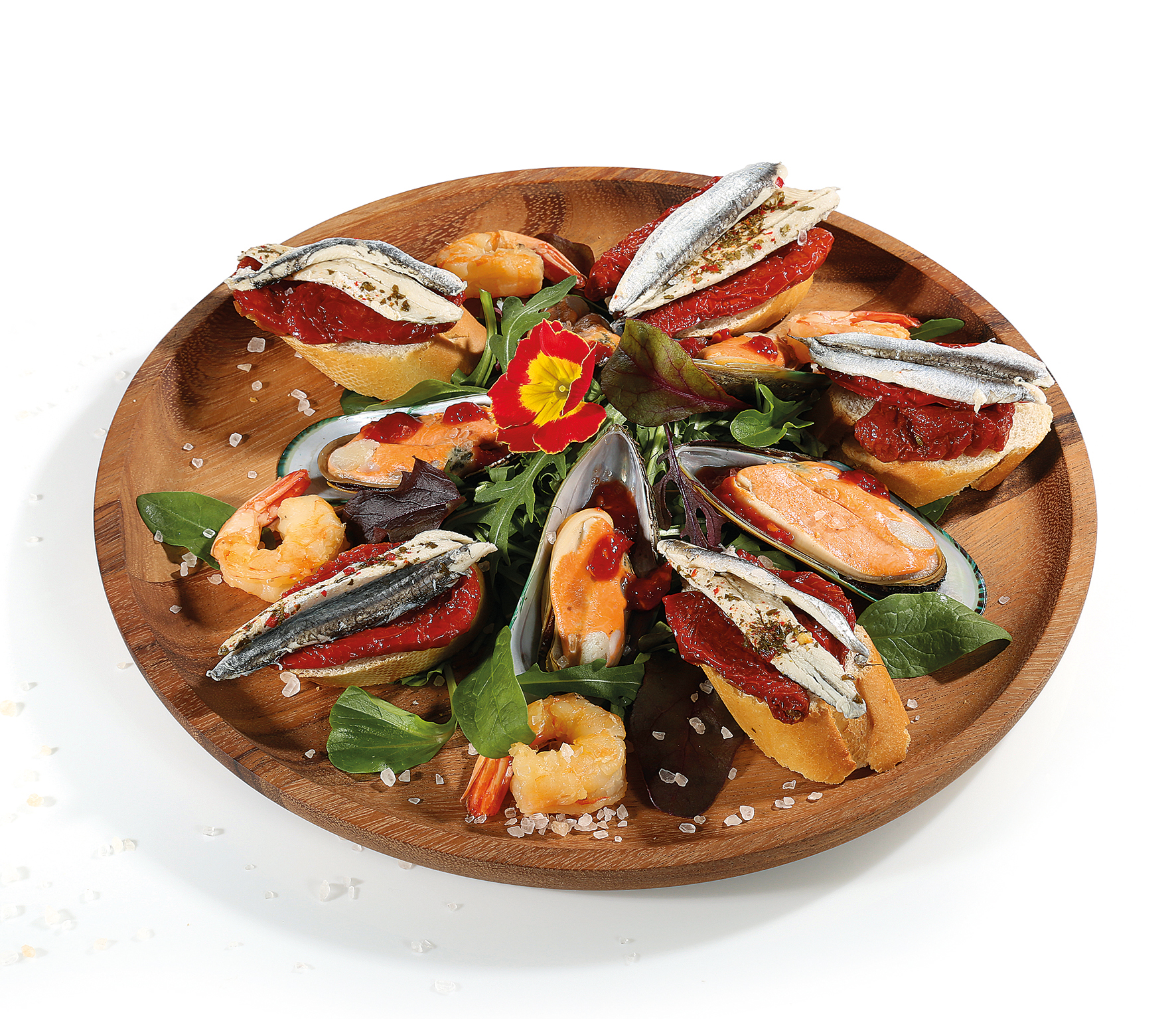 Teilen macht besonders viel Spaß, wenn es ums Essen geht! Probieren und Entdecken kann man besonders gut mit dem Snackteller aus Akzazie von ZASSENHAUS. Beim Trend „Sharing Plates“ kommen alle Gerichte gleichzeitig auf den Tisch und jeder bedient sich, wo er mag. Italien-Fans stehen auf Bruschetta mit Pesto, Tomaten und Mozzarella, gegrillte Feigenhälften mit Parmaschinken und Mascarpone-Schaum. Naschkatzen greifen gerne bei den Schoko-Kirsch-Muffins zu. Wer es herzhaft mag, schneidet sich ein Stück Wildschweinsalami ab. Das Akazienholz aus nachhaltigem Anbau ist hart im Nehmen und langlebig. Deswegen macht sich der Teller nach der Probier-Party beim Abendbrot oder als Treffpunkt für Ihre Gewürze nützlich.