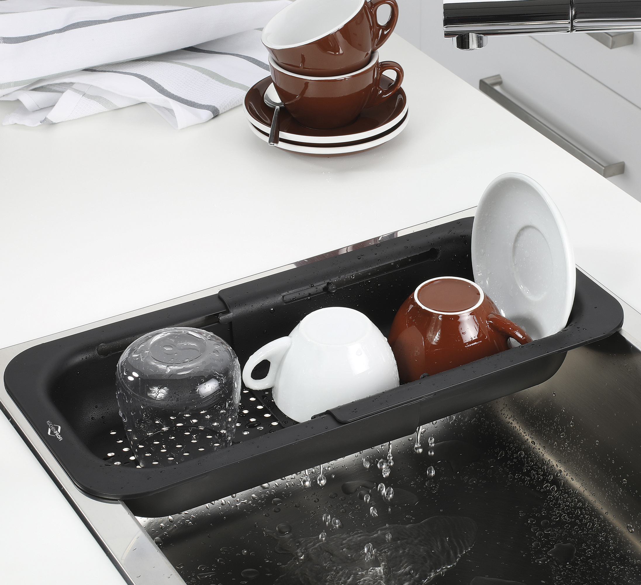 Schnelle Dusche gefällig? In dem KÜCHENPROFI Spülbeckensieb erfrischen sich Erdbeeren und Cocktailtomaten, bevor sie vernascht werden. Zum Abgießen der Pasta, Abwaschen und schnellen Trocknen von Besteck, Tassen, Gläsern und kleinen Tellern ist das Multitalent ebenfalls zur Stelle. Der Siebkorb ist in einer Länge von 34 bis 47,5 cm flexibel einstellbar und passt auf fast alle Spülbecken. Er ist aus hochwertigem Kunststoff gefertigt und hitzebeständig bis 100 °C. Die großzügig verteilten Löcher lassen das Wasser rasch ablaufen.