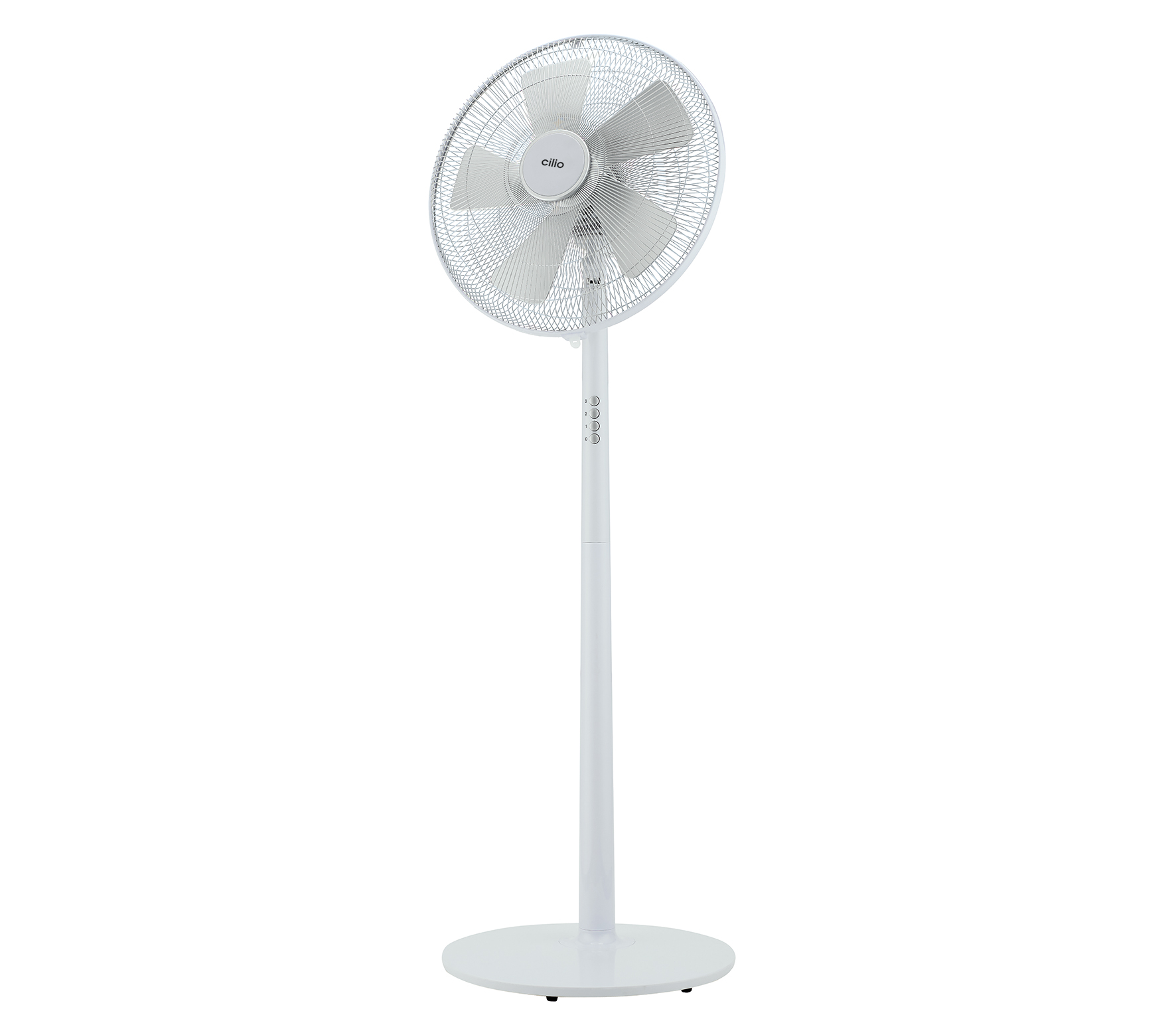 Noch zu heiß oder schon zu kühl? Das Temperaturempfinden ist von Mensch zu Mensch unterschiedlich. Der Standventilator VENTO 45 von cilio bietet Ihnen individuelle Erfrischung. Sie können zwischen 3 Geschwindigkeiten wählen und den Neigungswinkel einstellen. Mit seiner 90° Schwenkfunktion verteilt VENTO 45 die kühle Luft großzügig in Ihren Wohn- oder Arbeitsräumen. Ihr frischer Begleiter steht sicher auf einer stabilen Bodenplatte und ist mit einem verchromten Schutzgitter versehen.